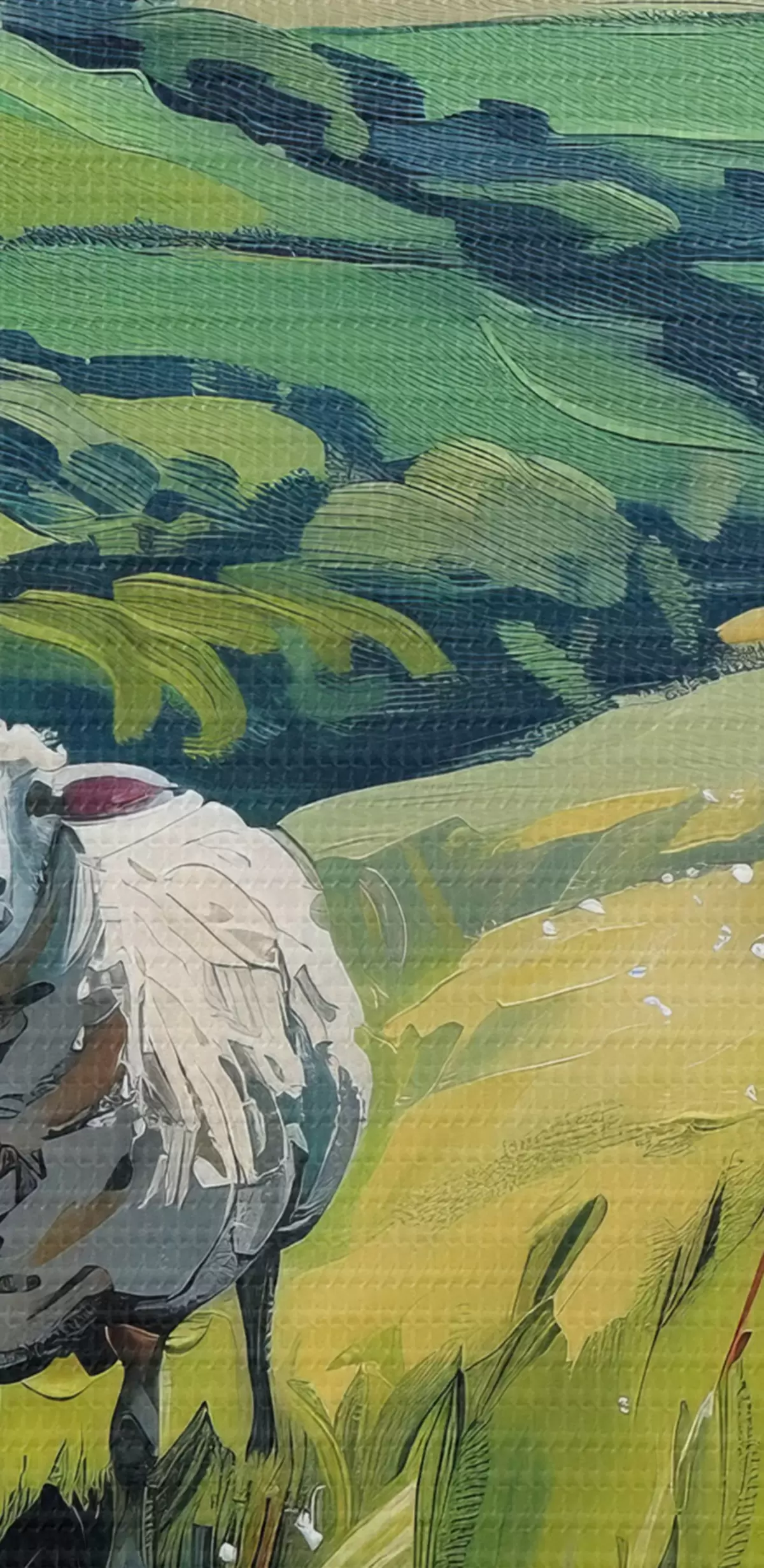 Selle lõuendi peenike niidipunus meenutab professionaalse kunstniku lõuendi pinda.