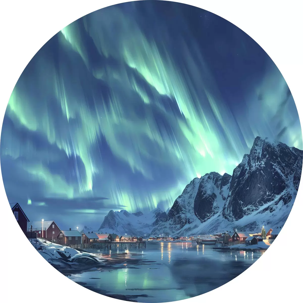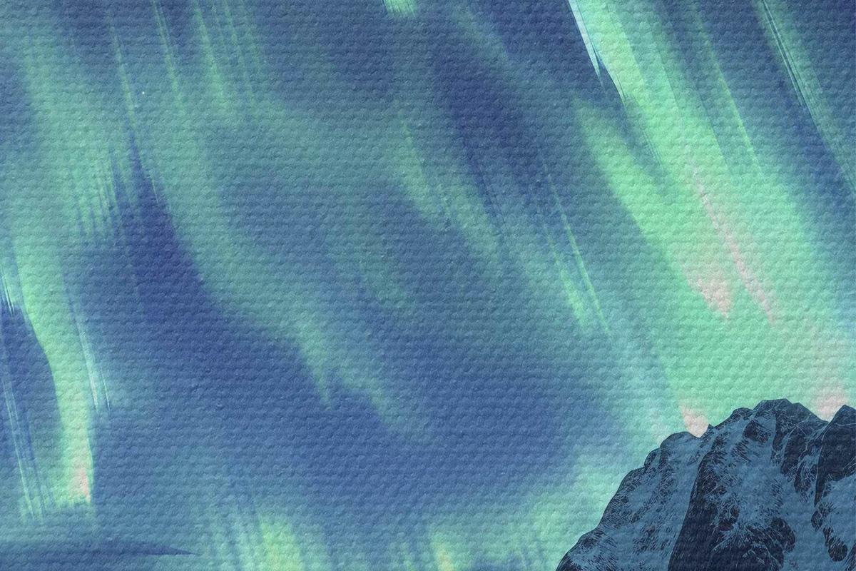 Pilt Norra talveküla, põhjatuled, öine taevas Nr r40300