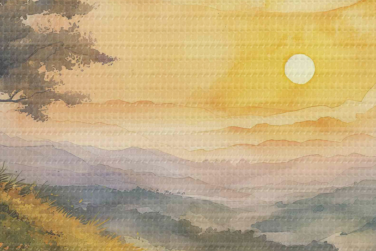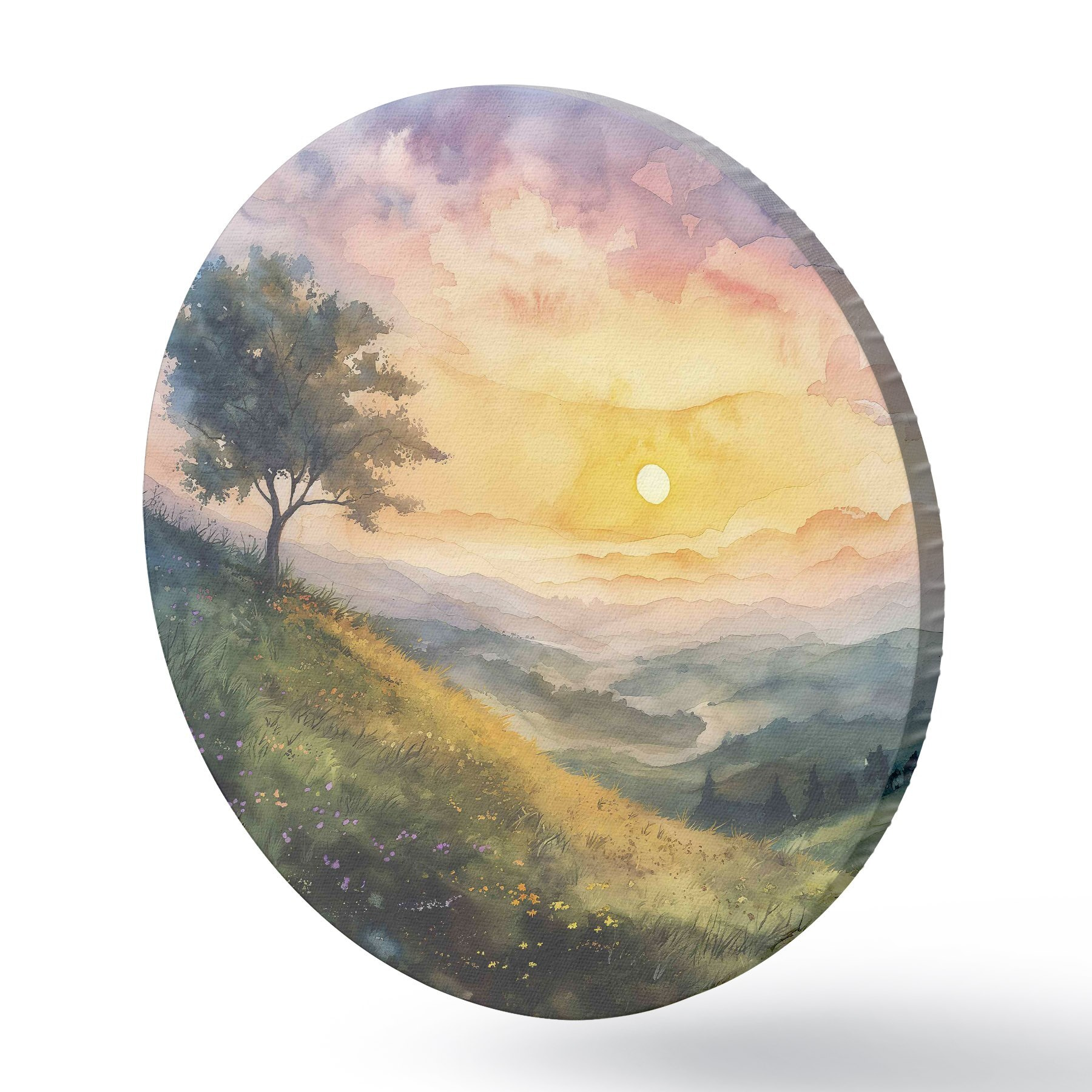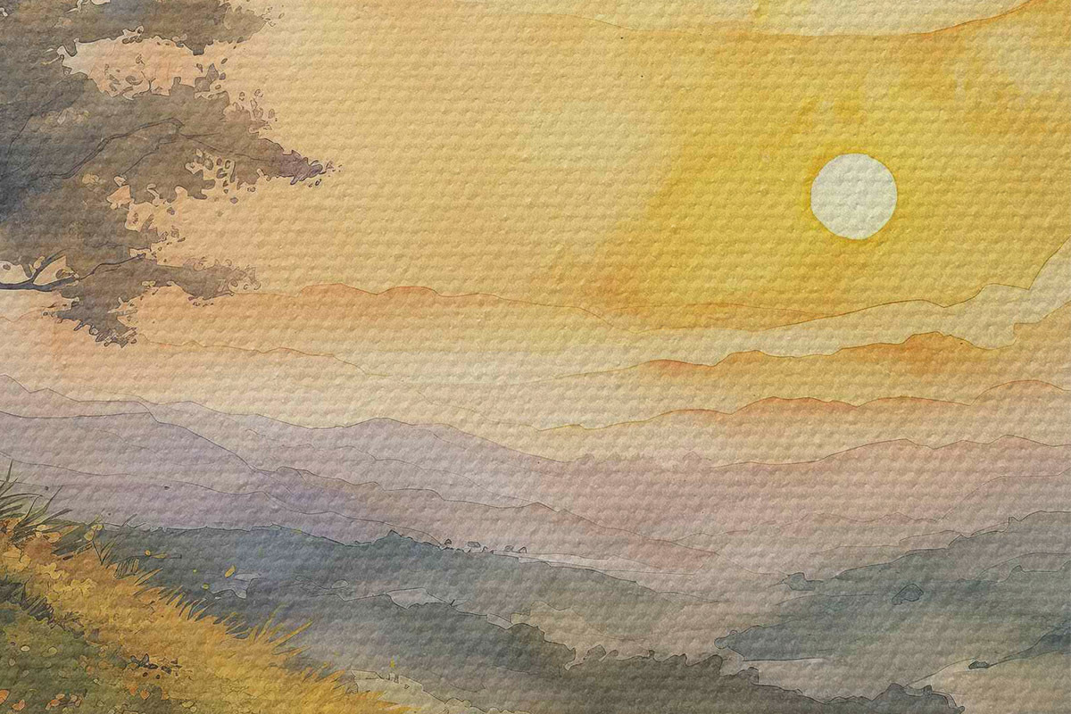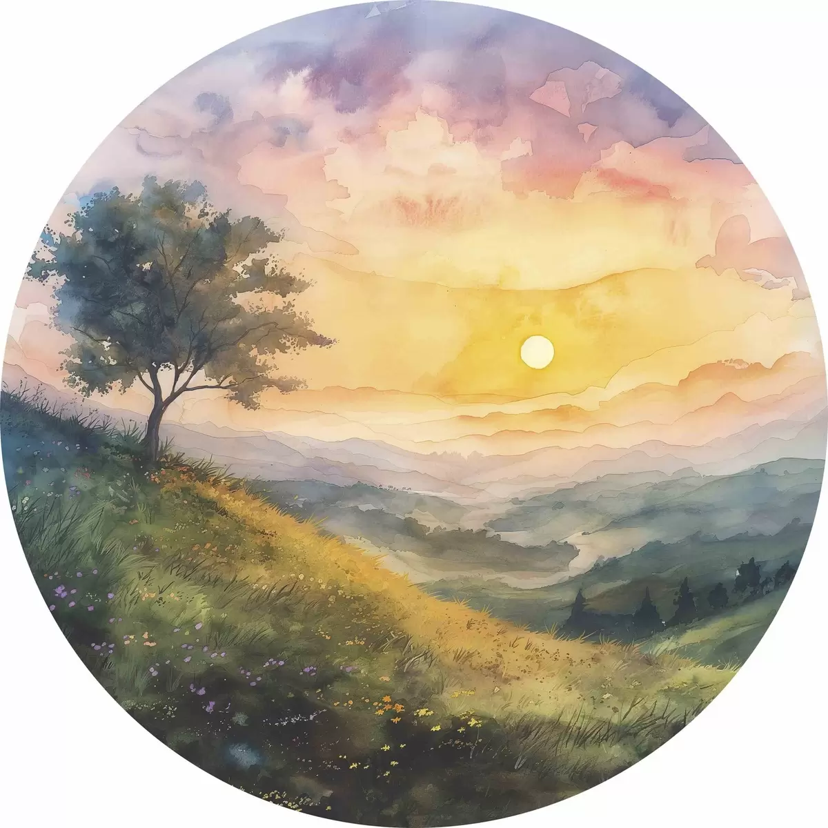 Pilt Mägede ja puudega heinamaa, lilled, akvarell Nr r40303