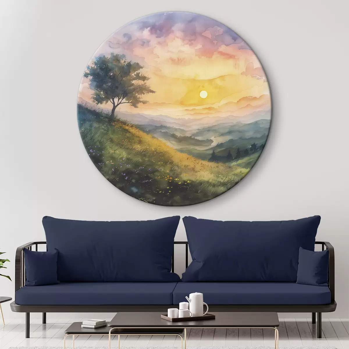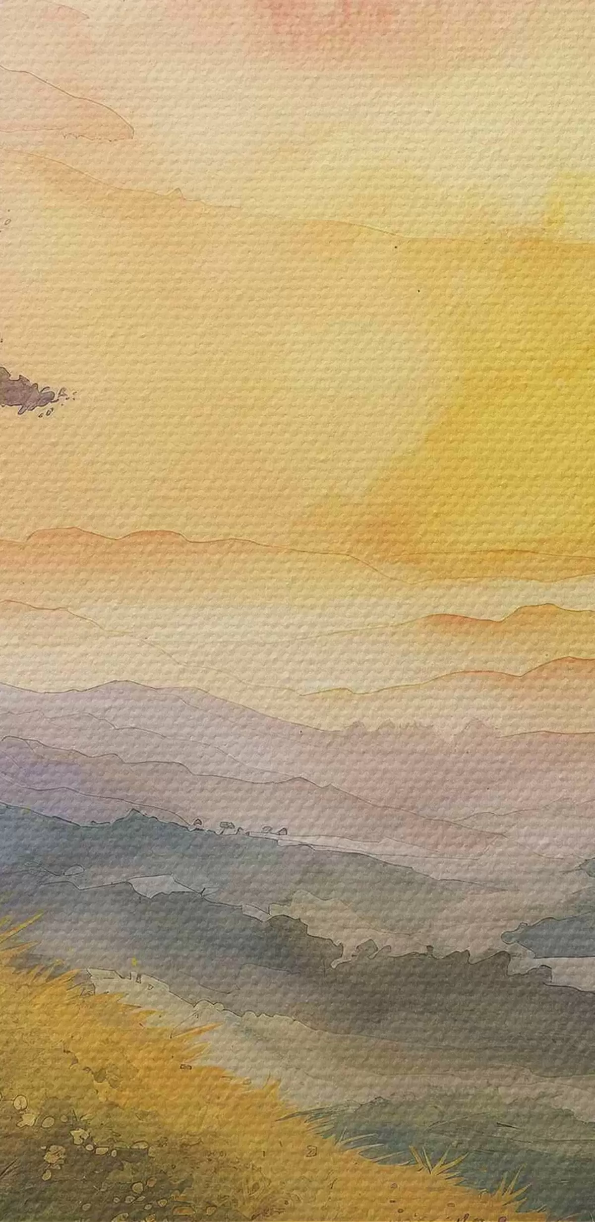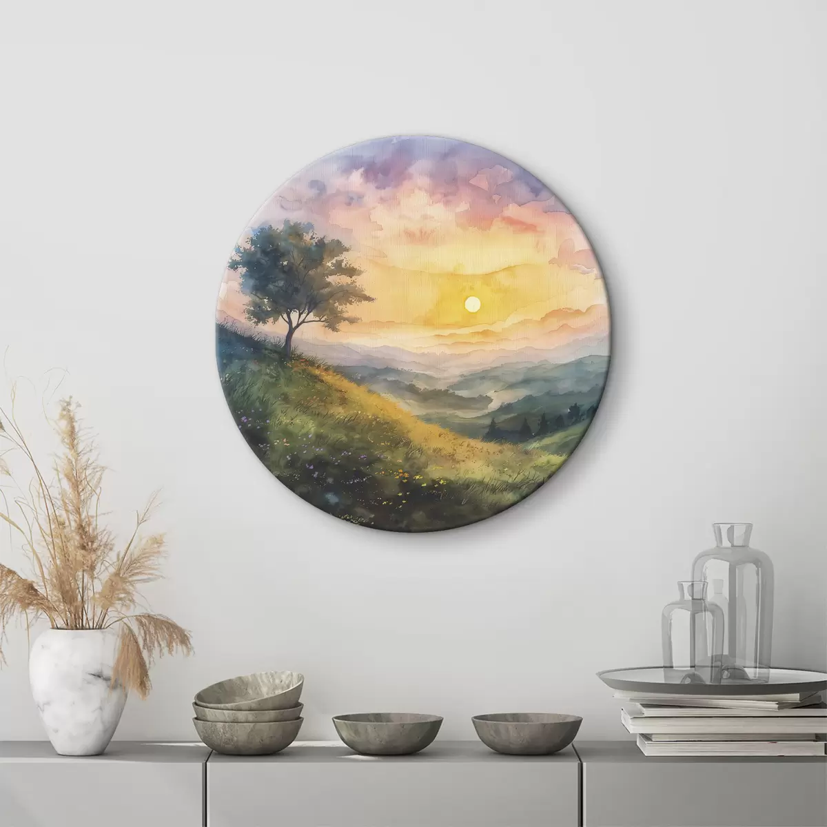 Pilt Mägede ja puudega heinamaa, lilled, akvarell Nr r40303