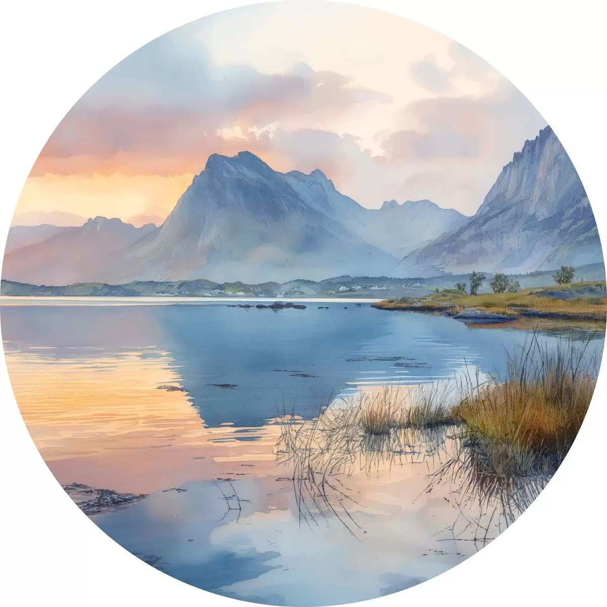 Pilt Rahulik jõgi koos mägedega, päikesetõus, pehmed värvid Nr r40307
