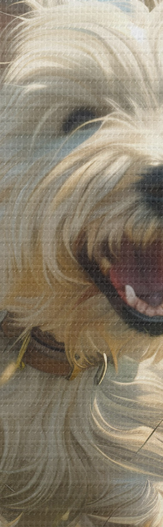 Selle lõuendi peenike niidipunus meenutab professionaalse kunstniku lõuendi pinda.