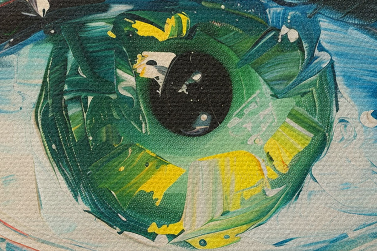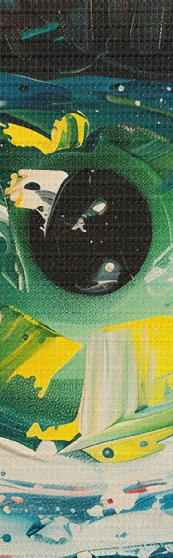 Selle lõuendi peenike niidipunus meenutab professionaalse kunstniku lõuendi pinda.