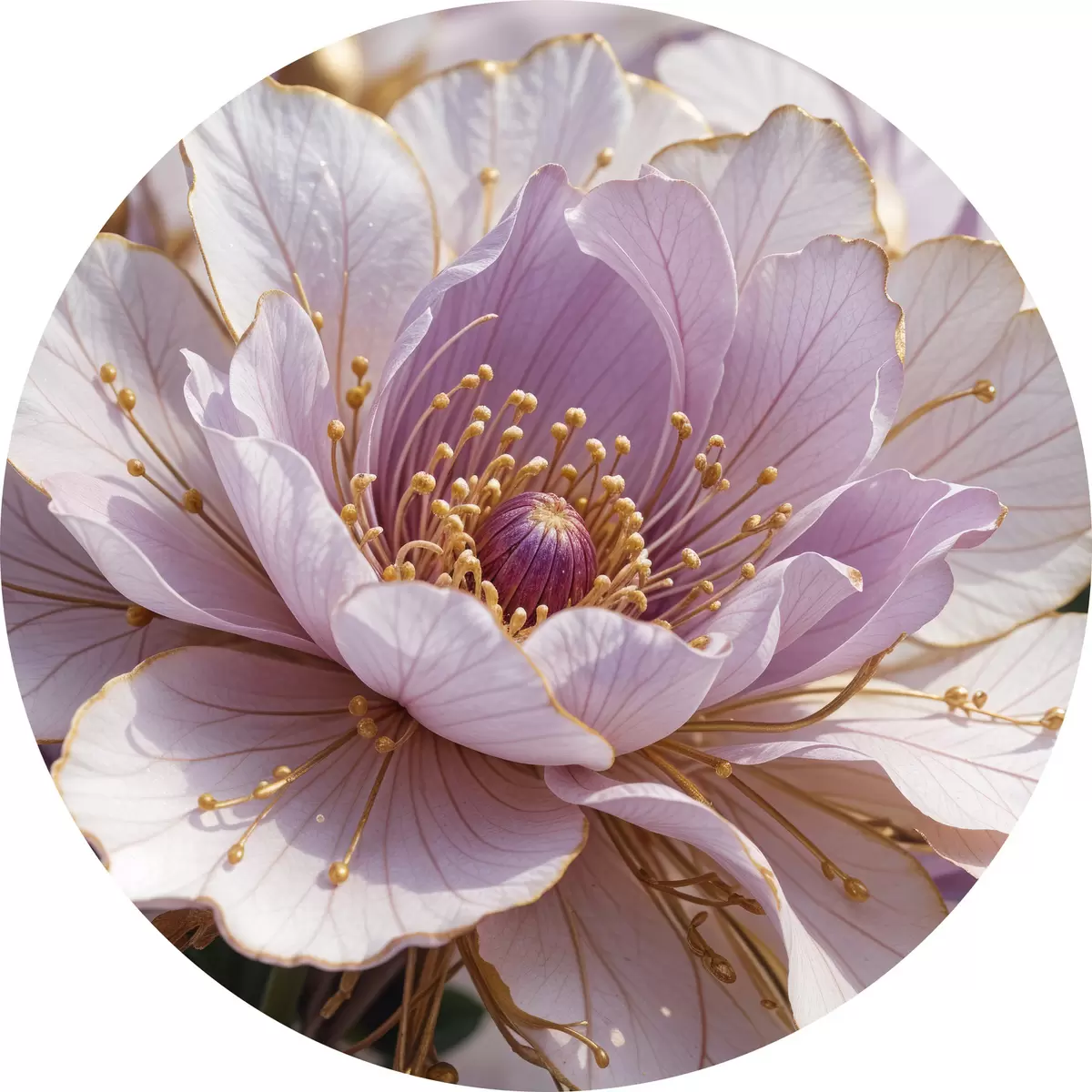 Pilt Lähivõte suurest kahvaturoosast pojengiõiest, millel on õrnad kroonlehed ja erekollane keskosa Nr r40384
