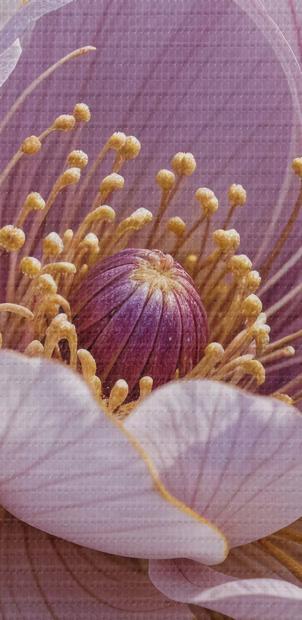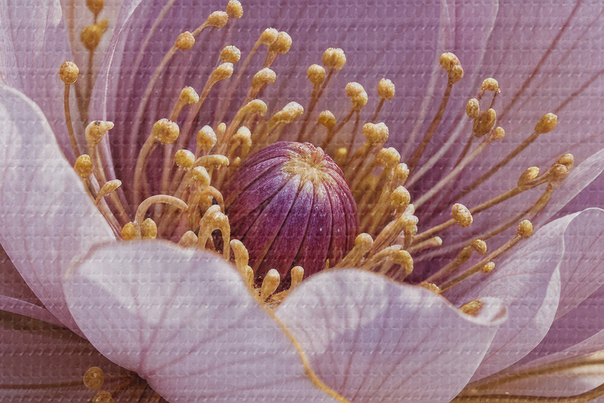 Selle lõuendi peenike niidipunus meenutab professionaalse kunstniku lõuendi pinda.