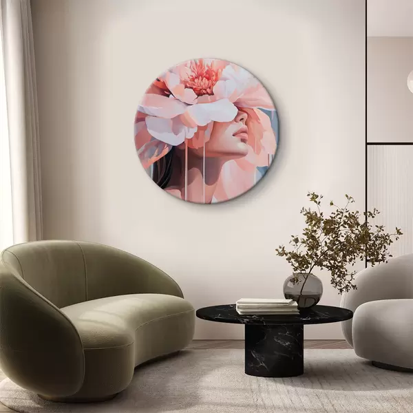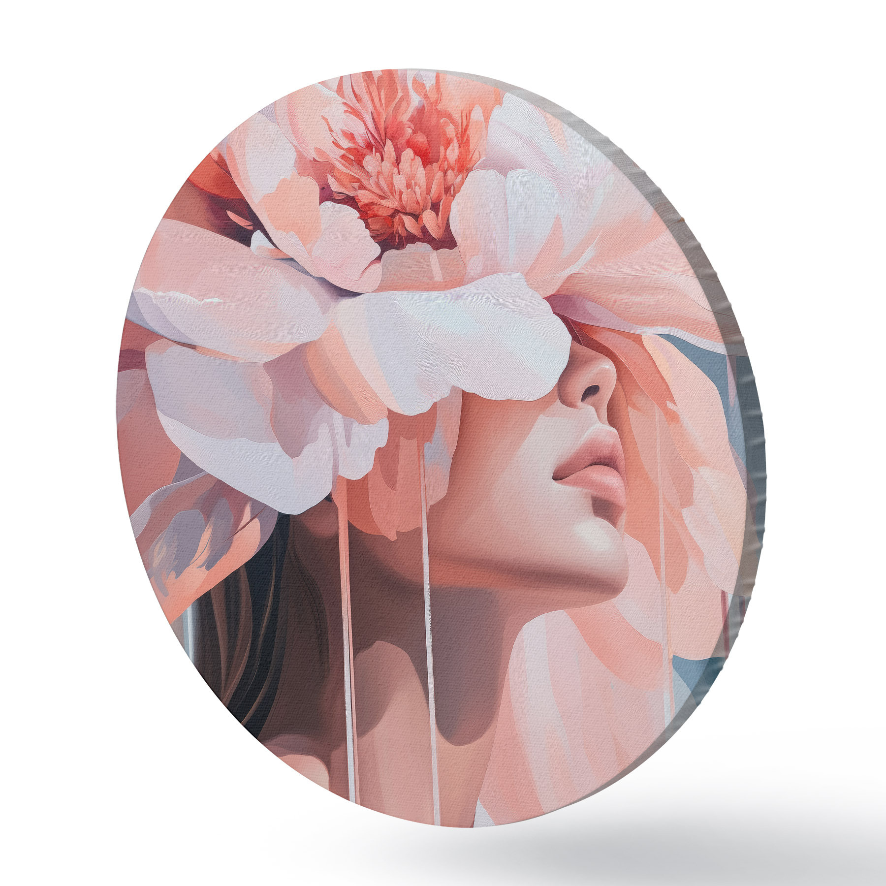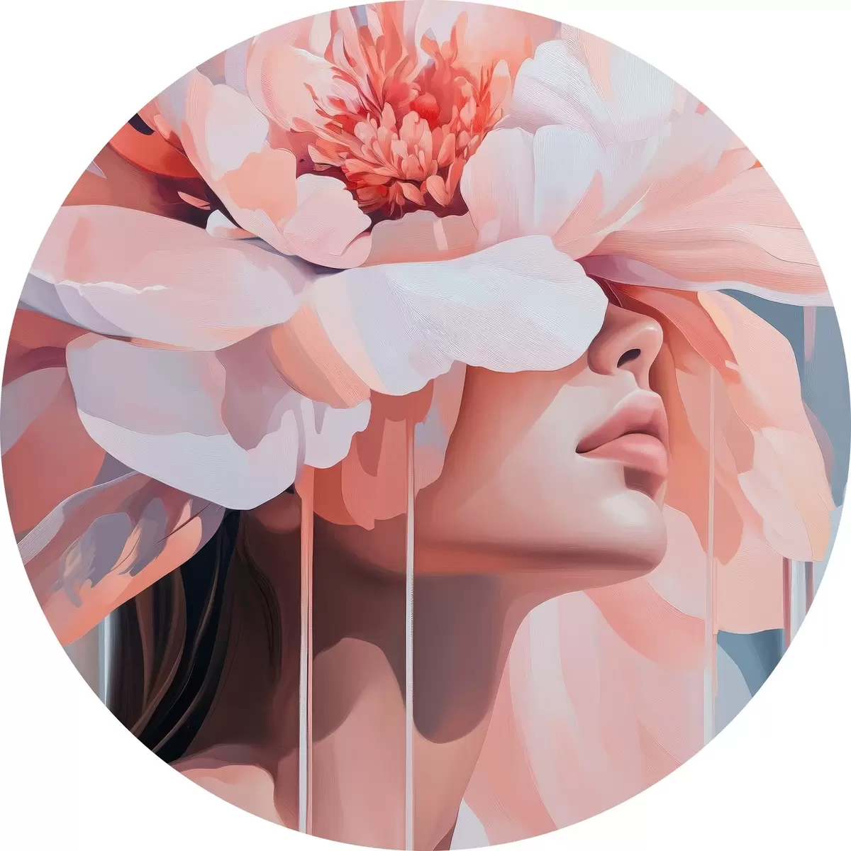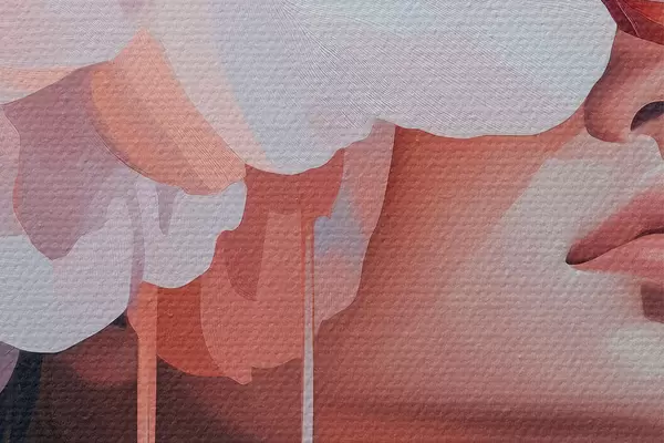 Pilt Naise portree suure roosa lillega peas Nr r40430