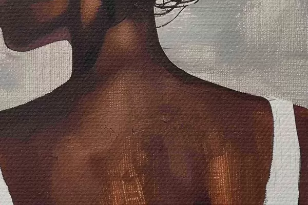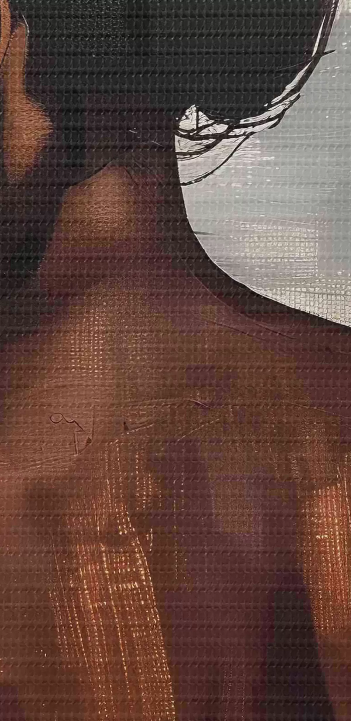 Selle lõuendi peenike niidipunus meenutab professionaalse kunstniku lõuendi pinda.