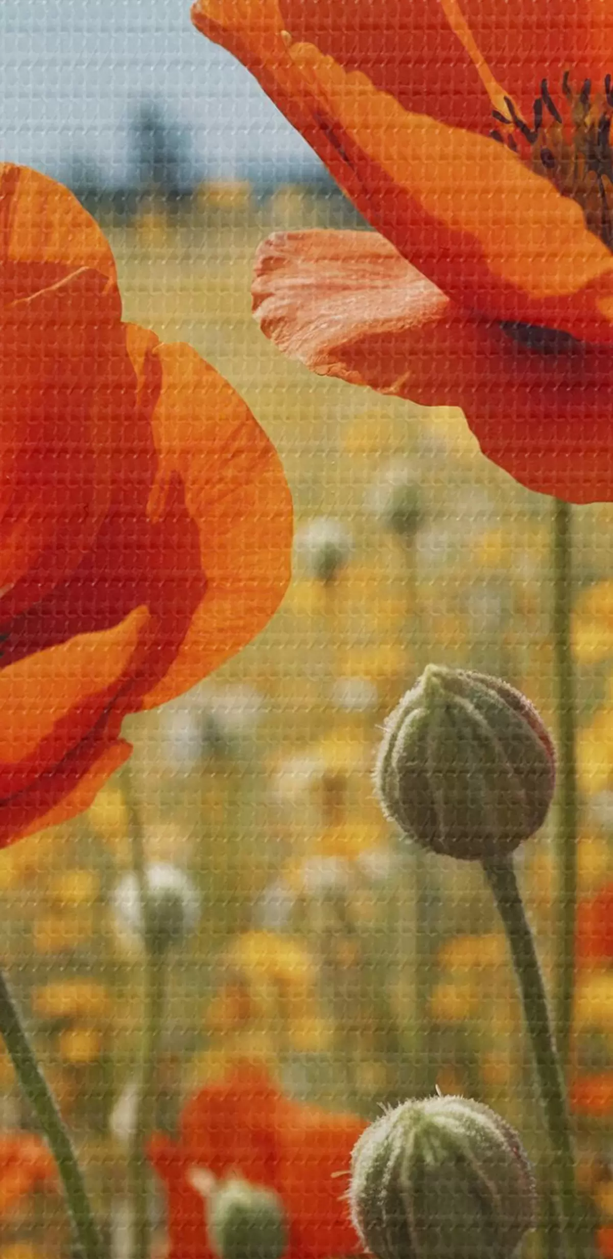 Selle lõuendi peenike niidipunus meenutab professionaalse kunstniku lõuendi pinda.
