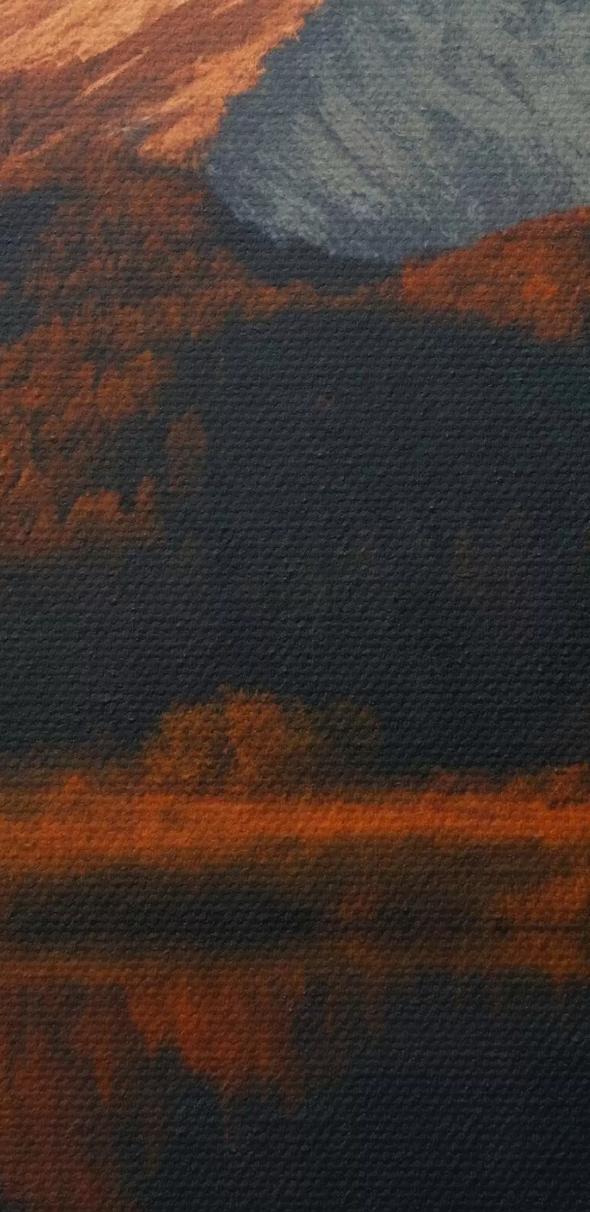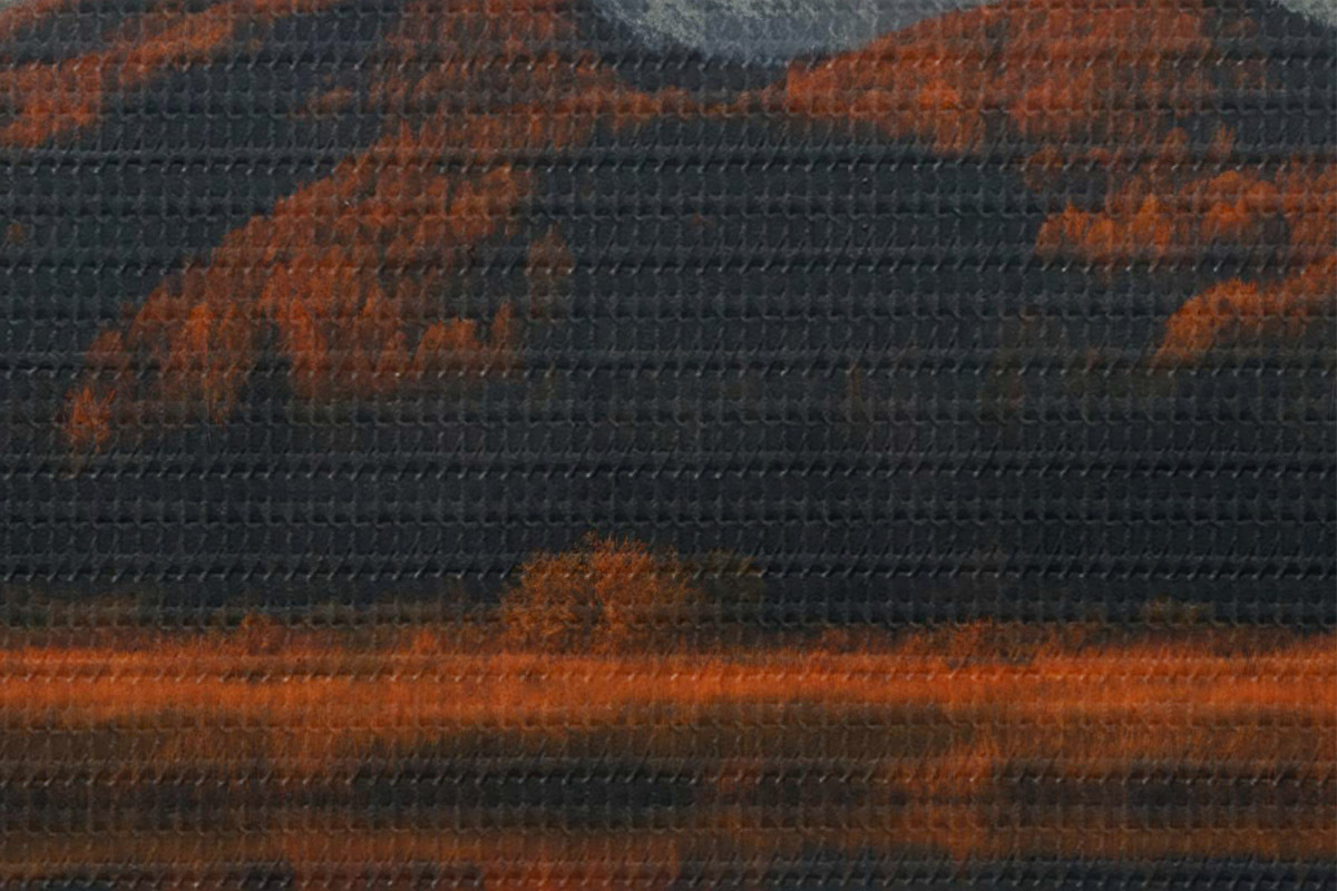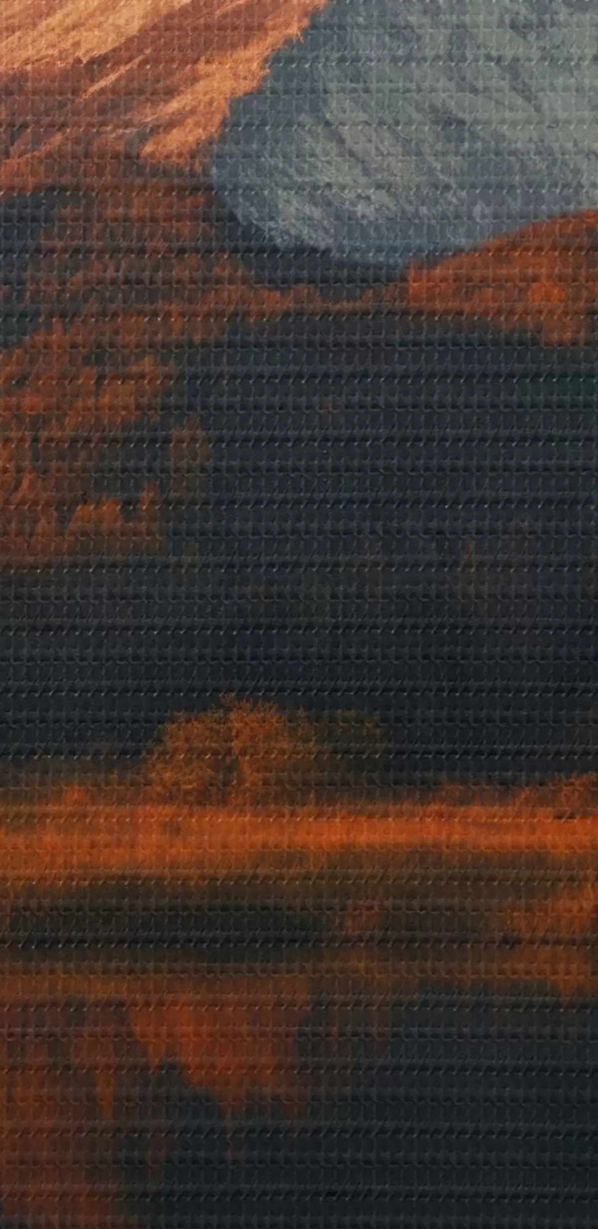 Selle lõuendi peenike niidipunus meenutab professionaalse kunstniku lõuendi pinda.