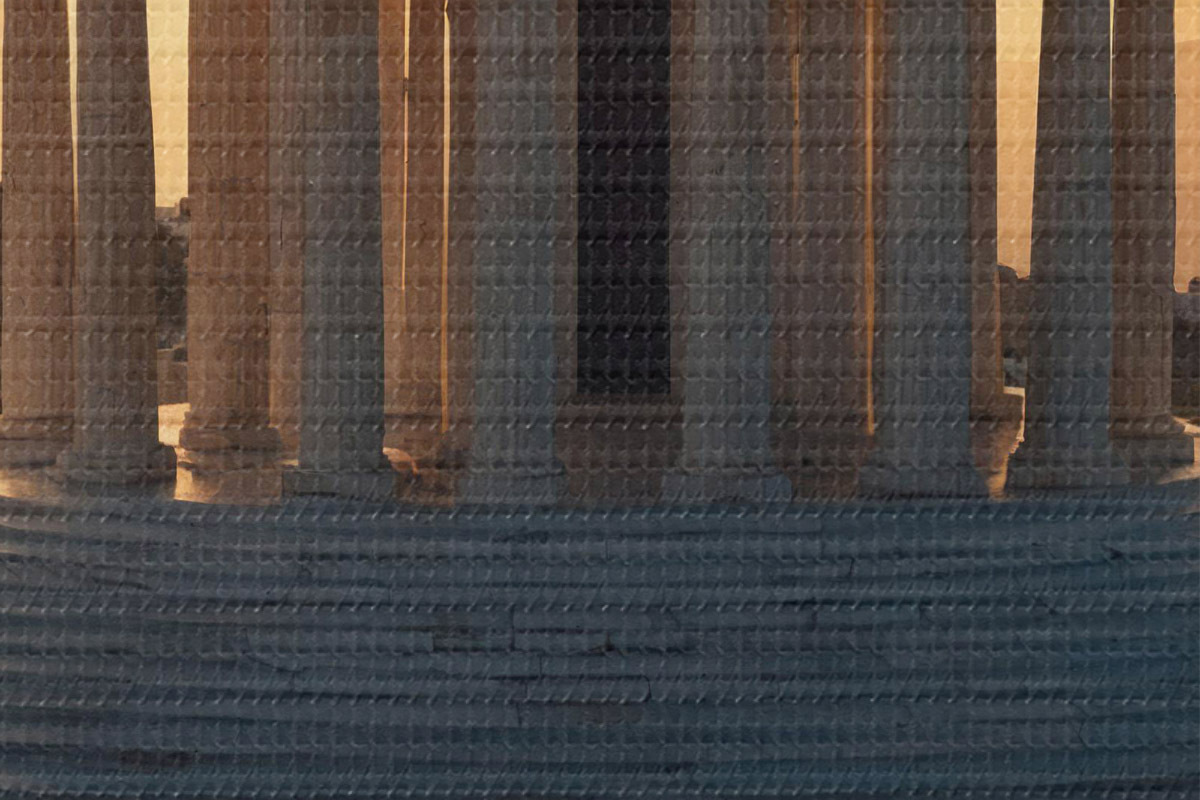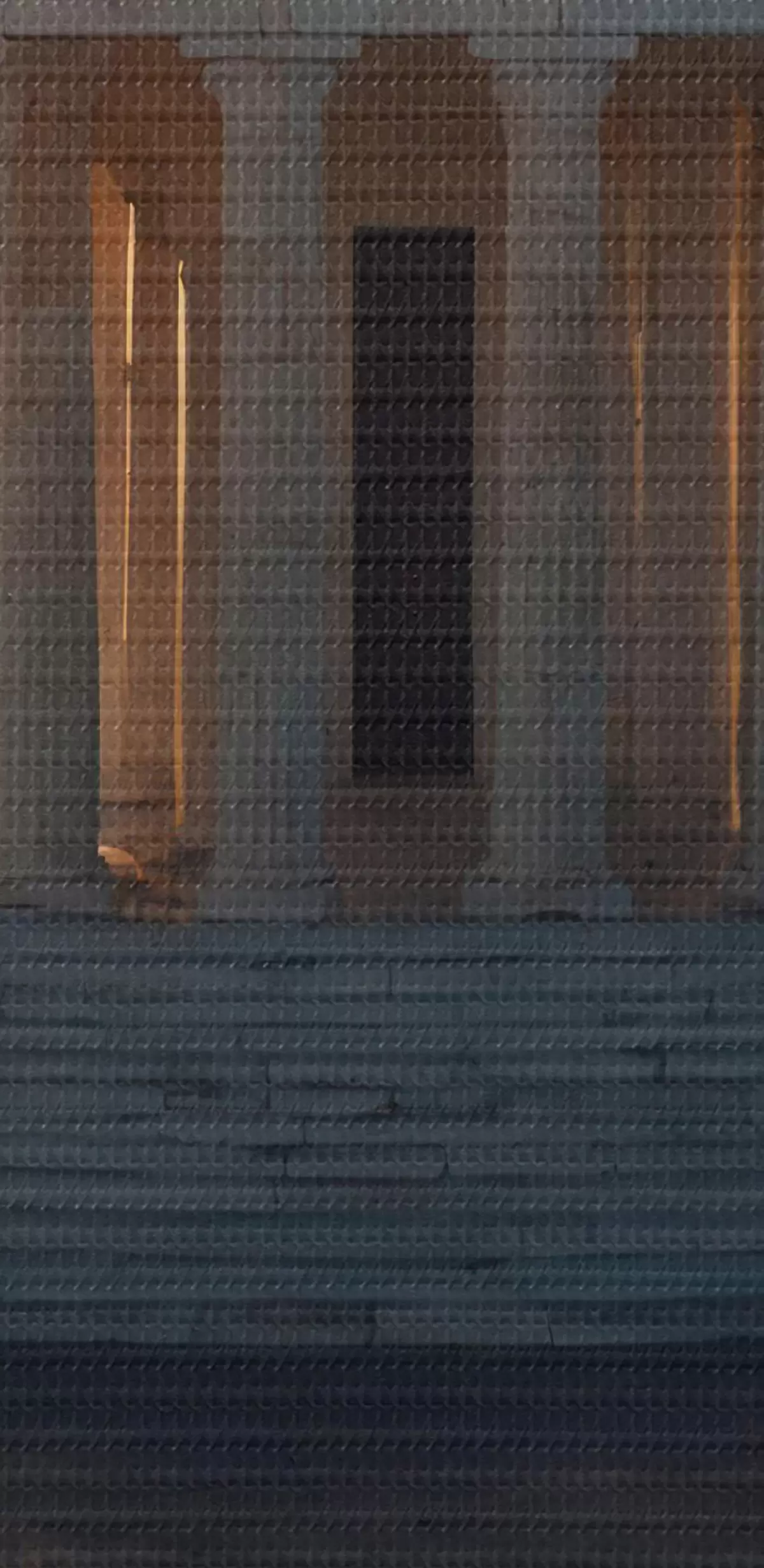 Selle lõuendi peenike niidipunus meenutab professionaalse kunstniku lõuendi pinda.