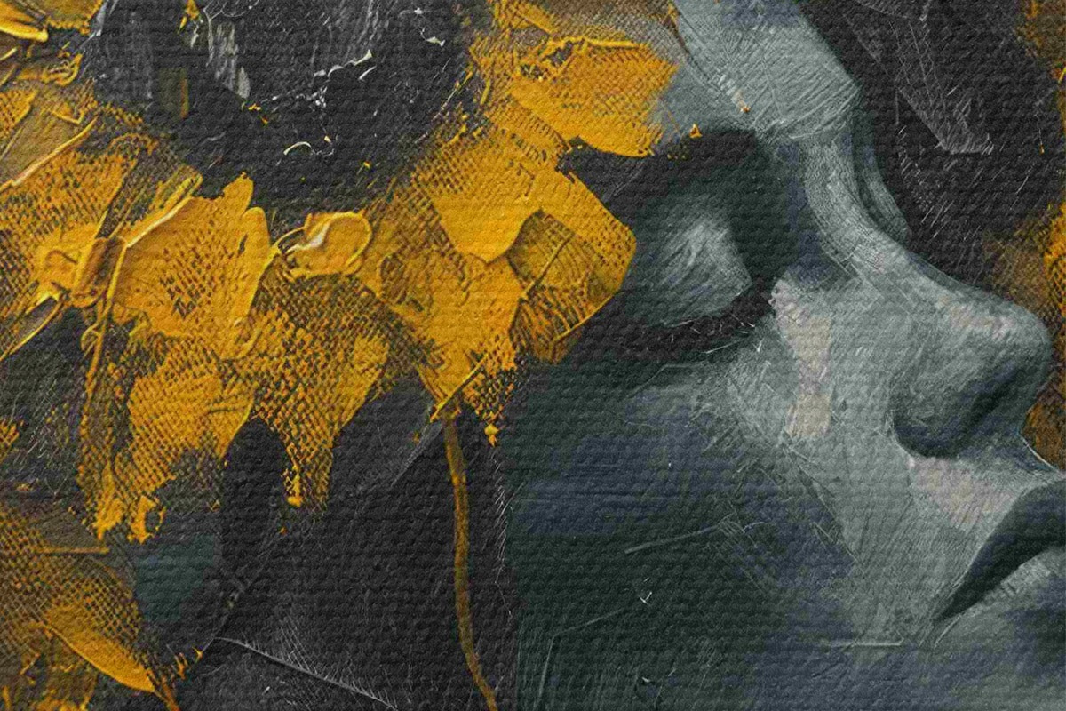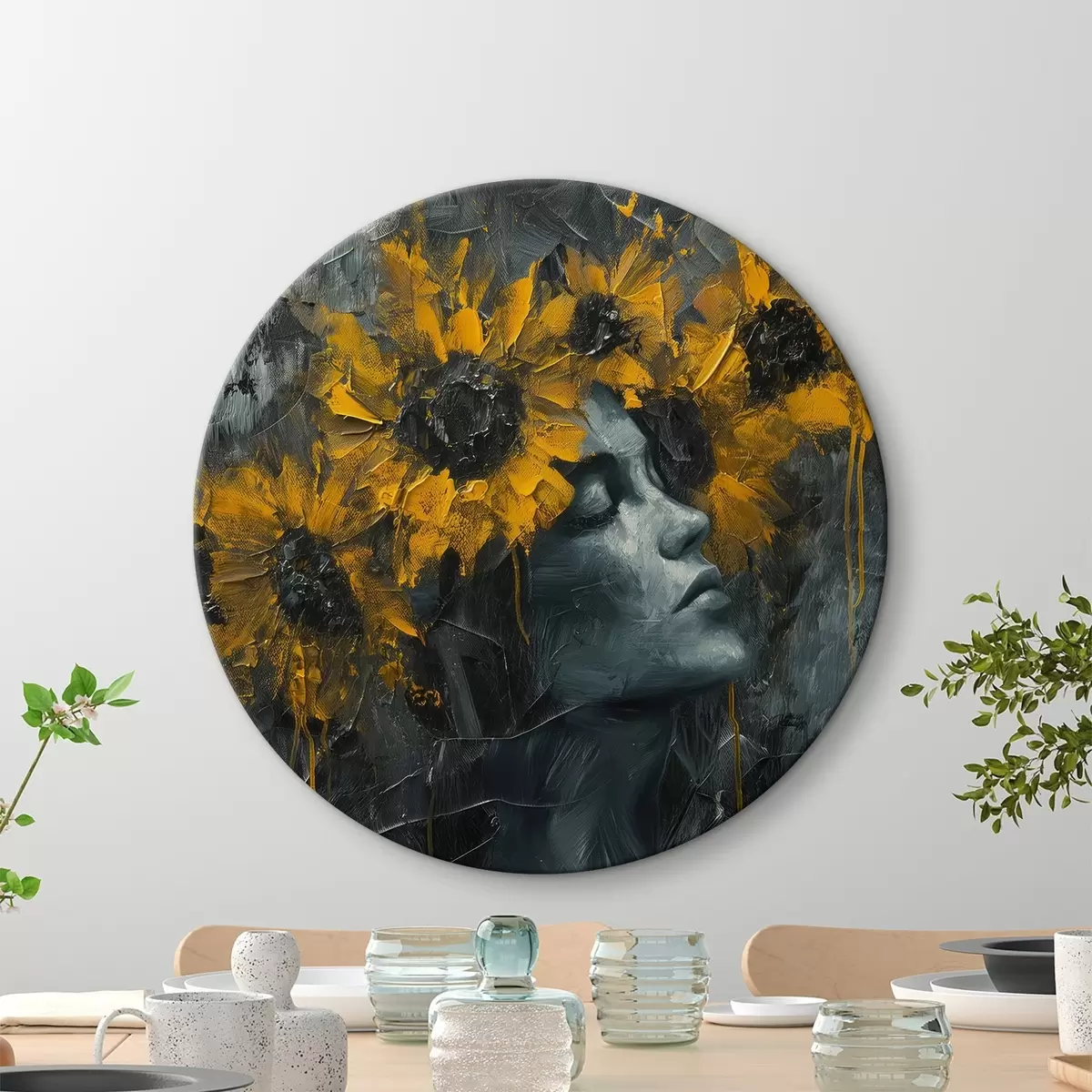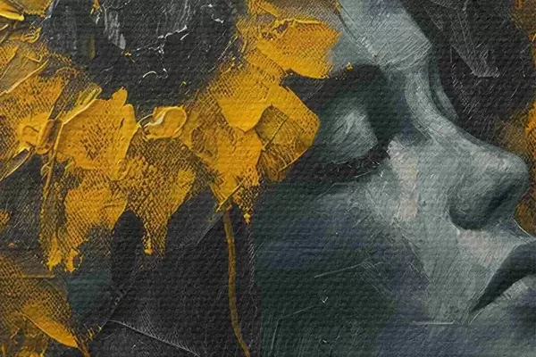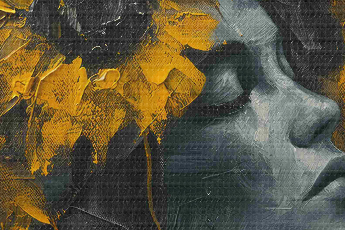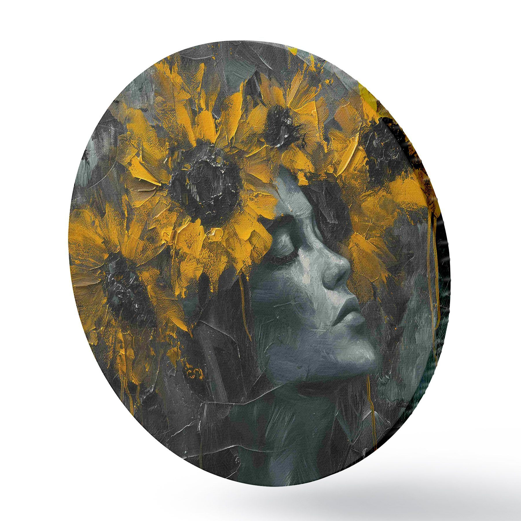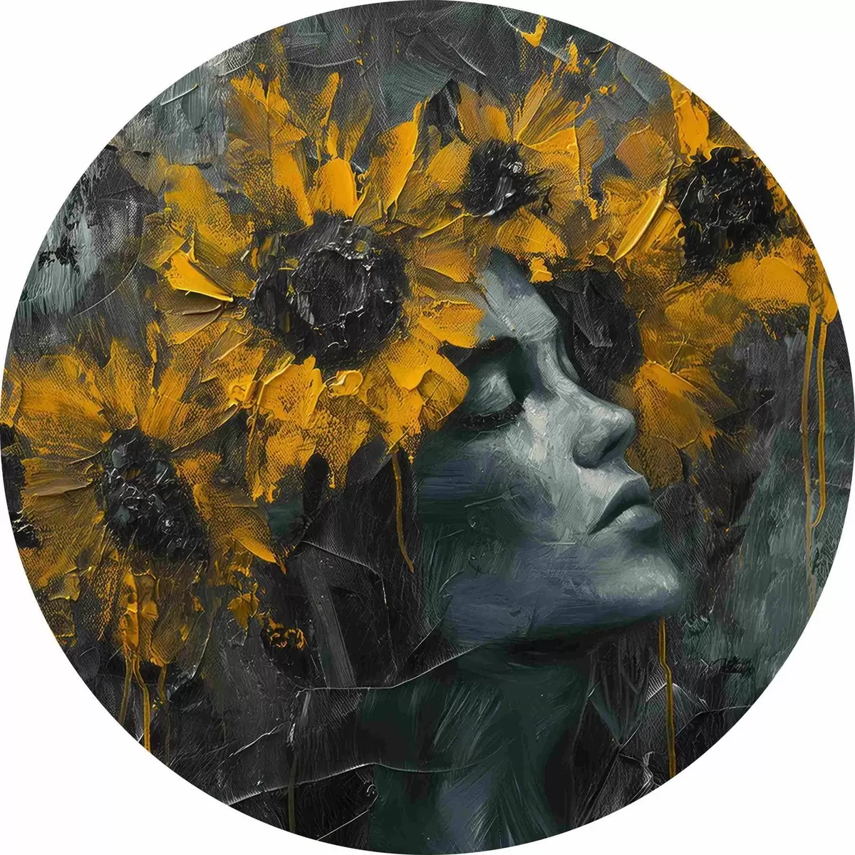 Pilt Naise nägu halli varjundites koos päevalilledega Nr r40500