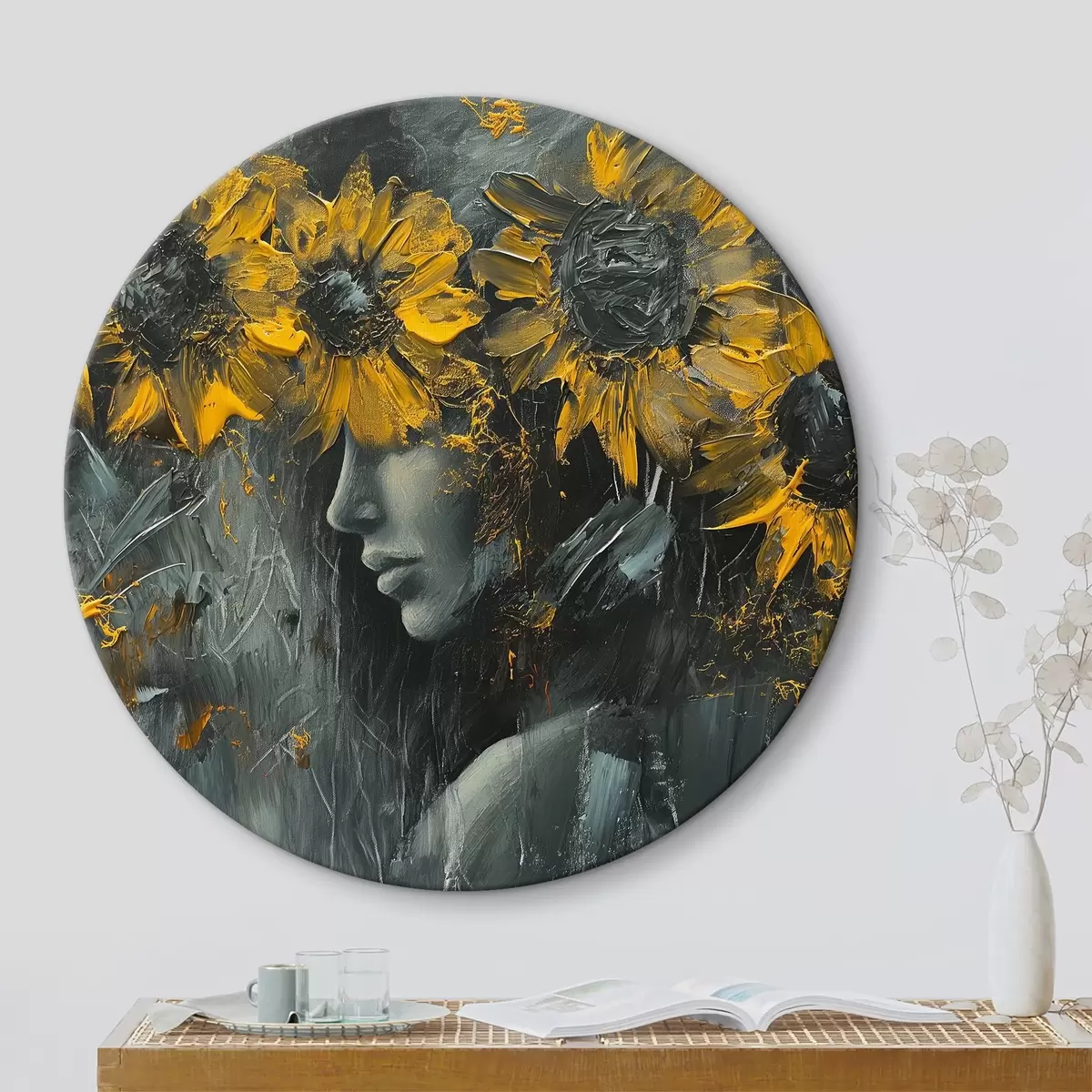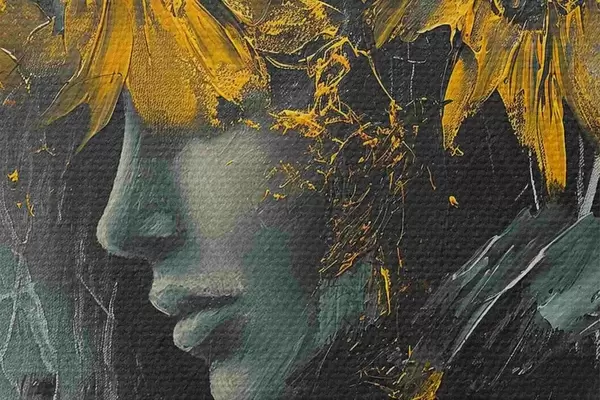 Pilt Abstraktsed päevalilled, mis katavad tüdruku nägu Nr r40501