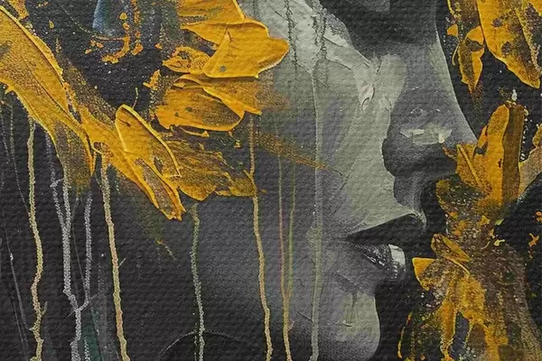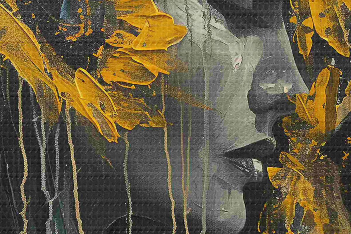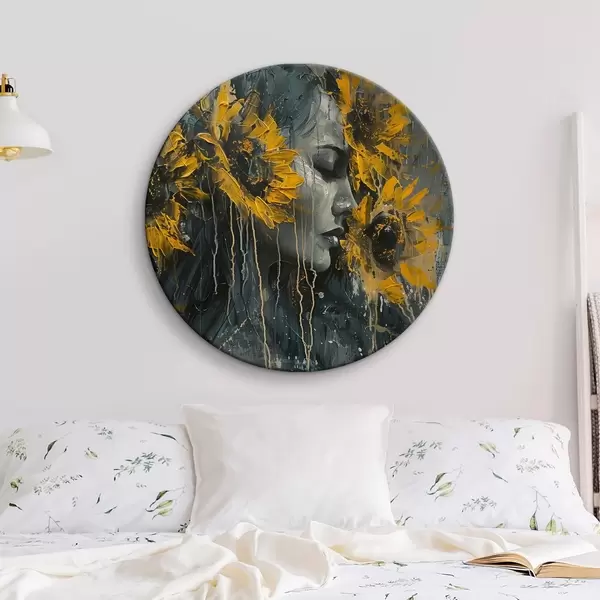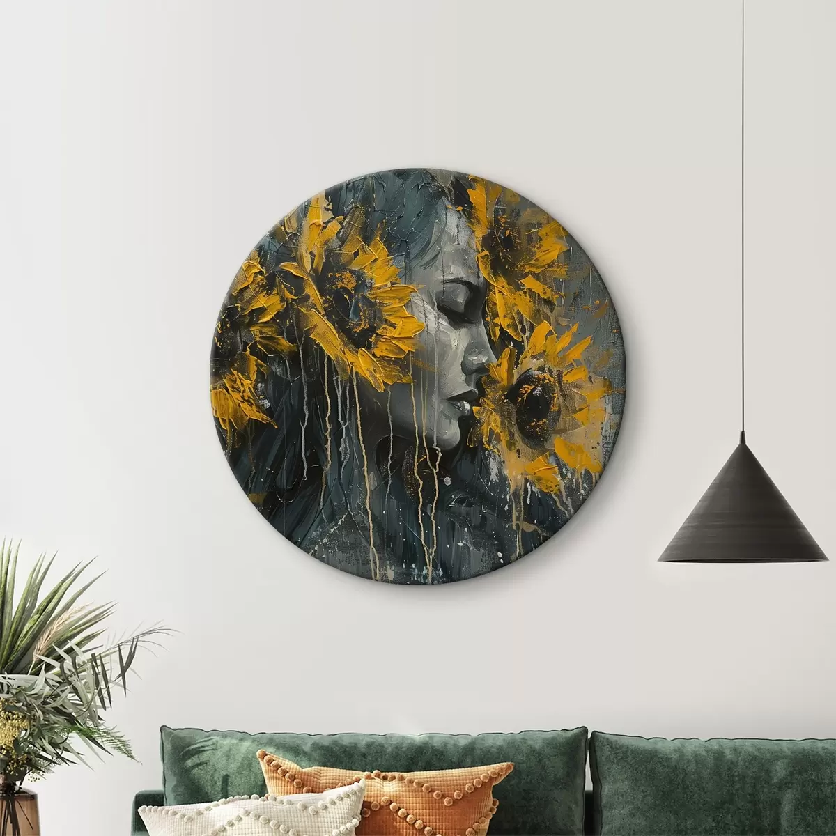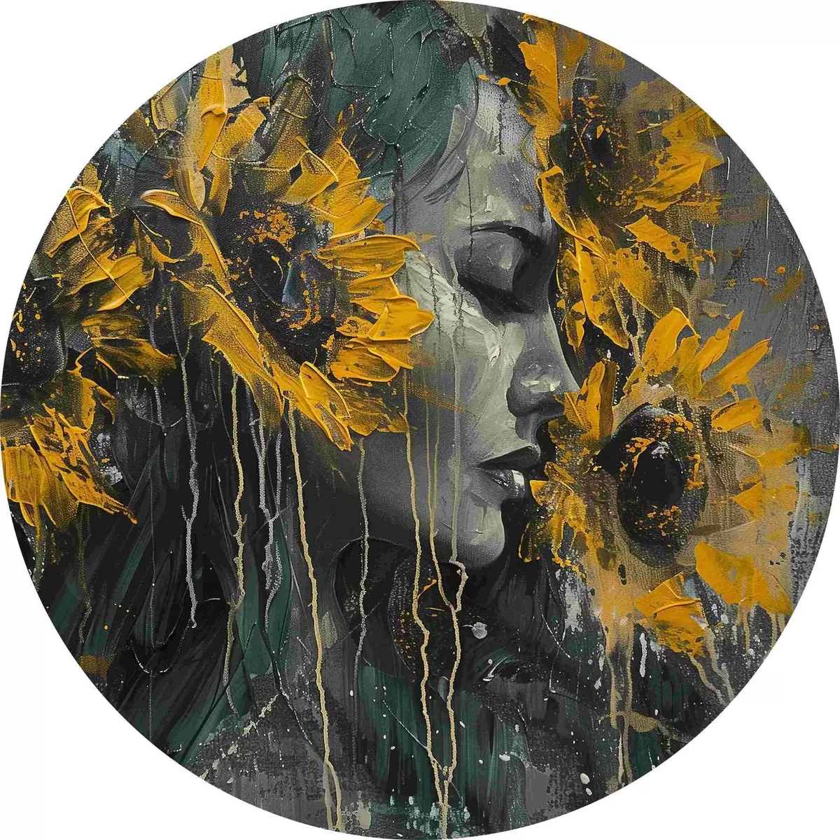 Pilt Tüdruku nägu koos hägusa päikeselilledega Nr r40502
