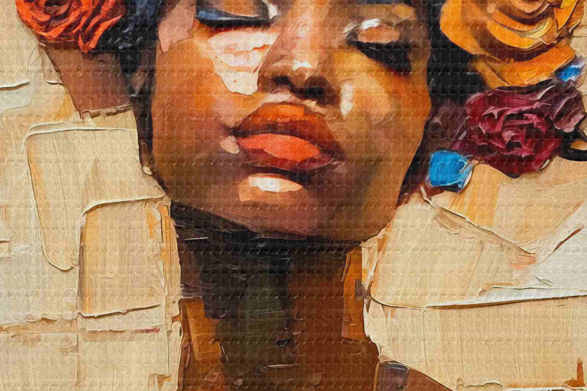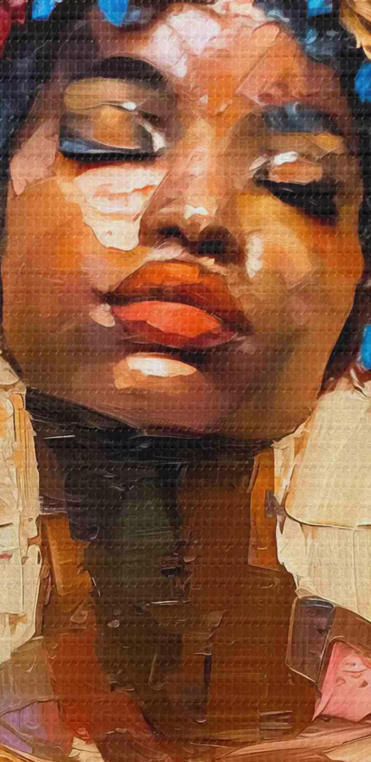 Selle lõuendi peenike niidipunus meenutab professionaalse kunstniku lõuendi pinda.