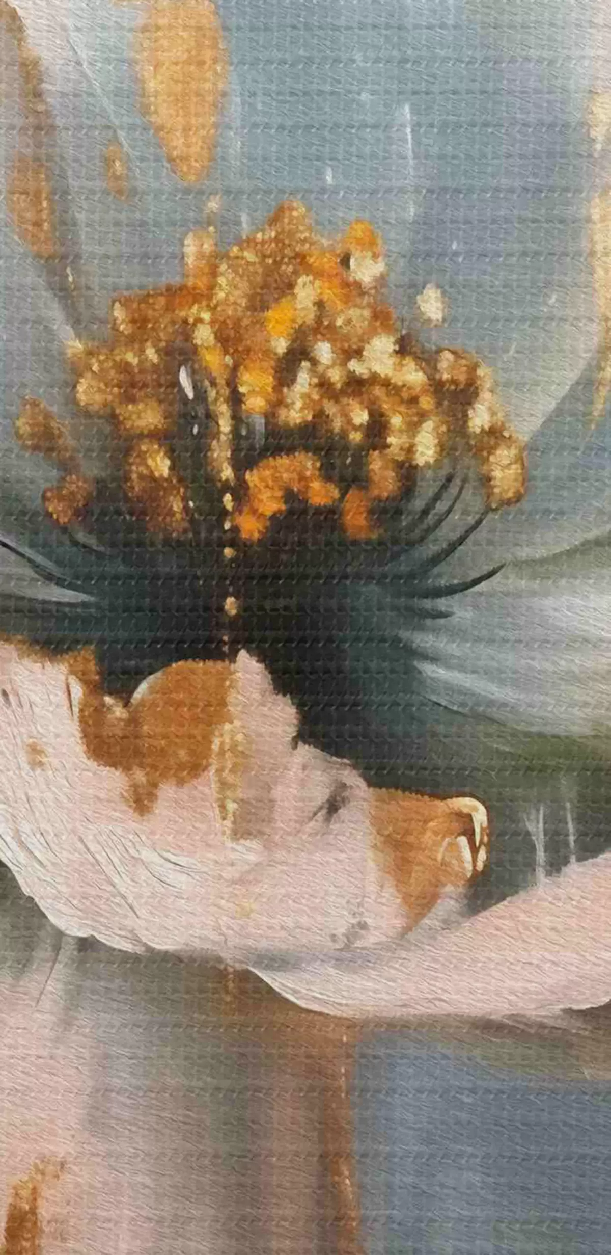 Selle lõuendi peenike niidipunus meenutab professionaalse kunstniku lõuendi pinda.