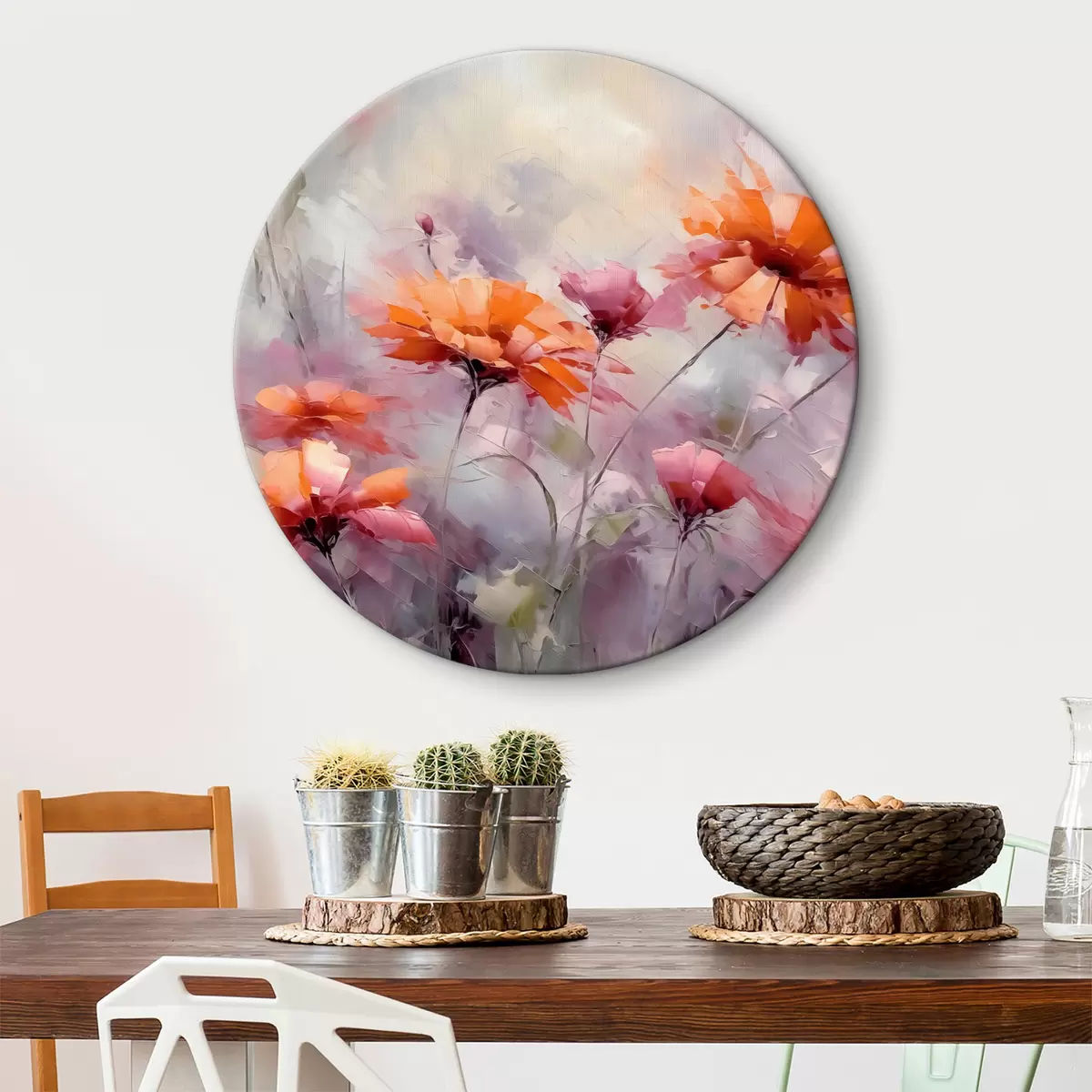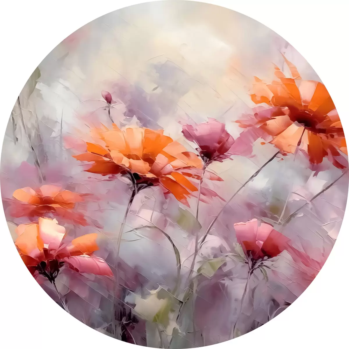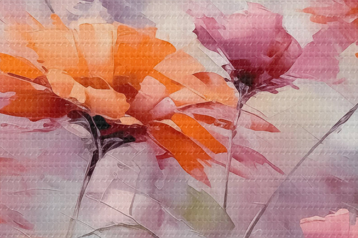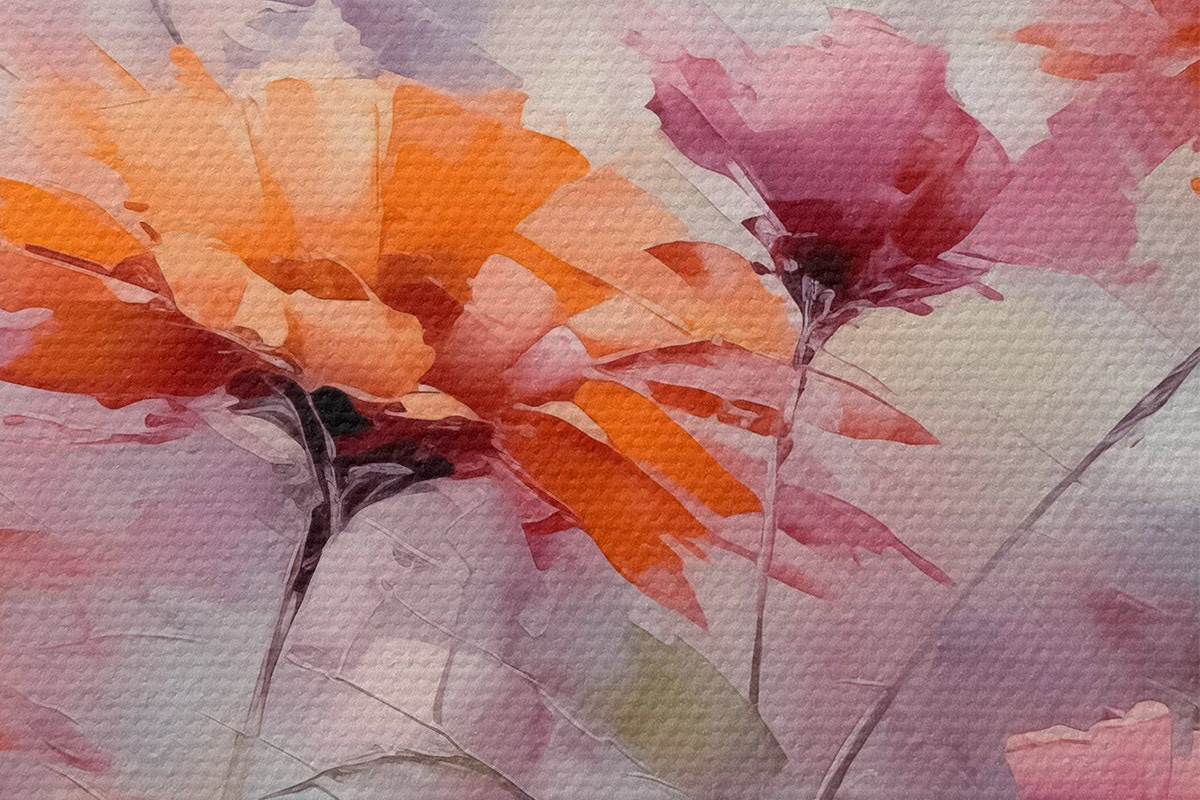 Pilt Abstraktsed lilled, pintslitõmmete imitatsioon, punane, hall, lilla, oranž Nr r40528