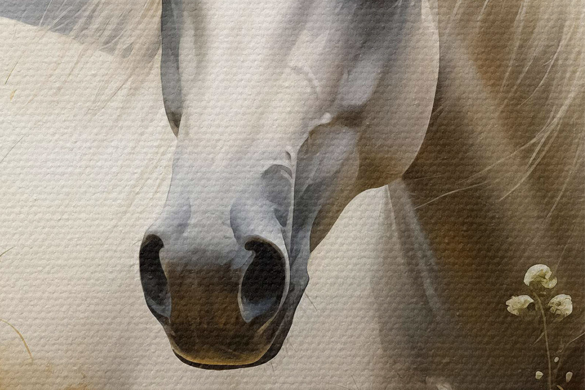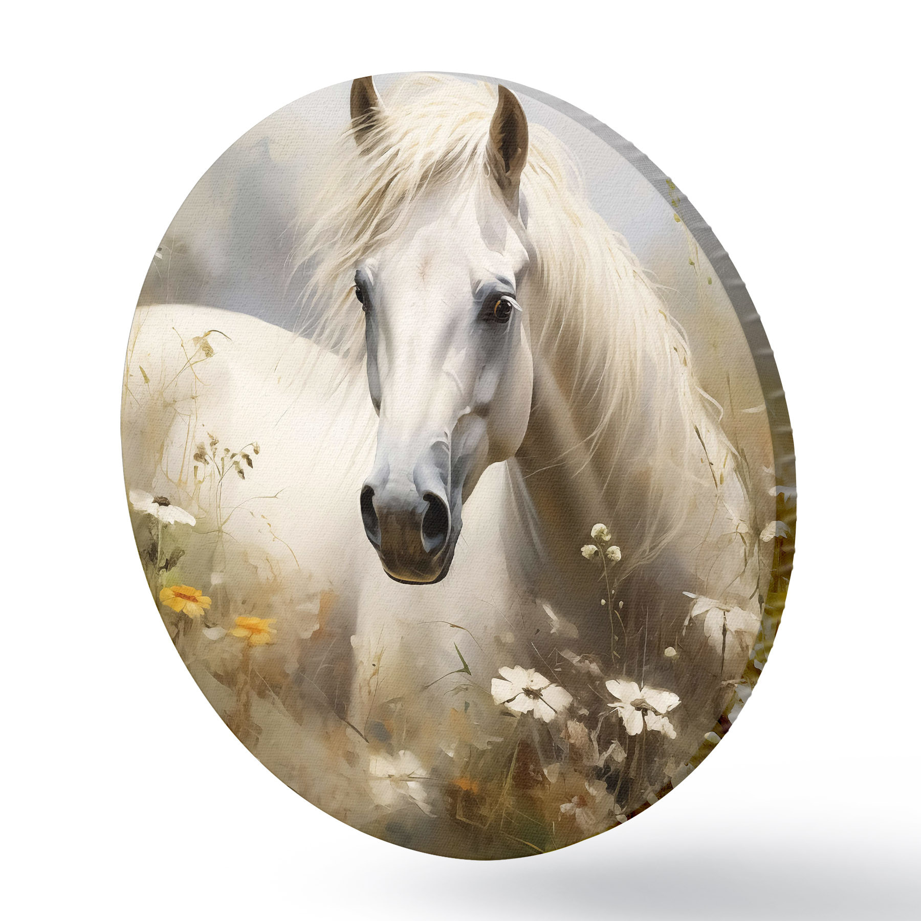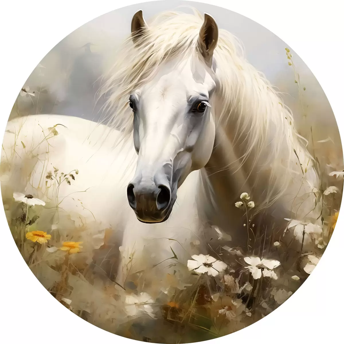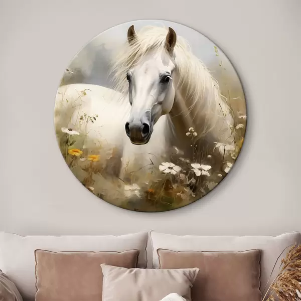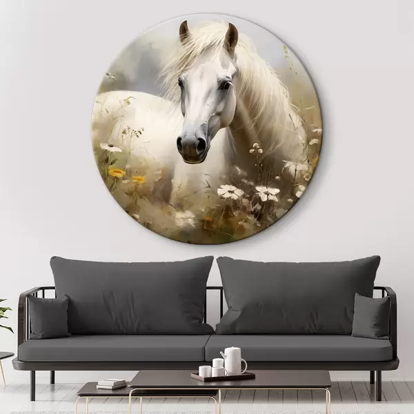 Pilt Valge hobune rohus karikakrate vahel Nr r40533