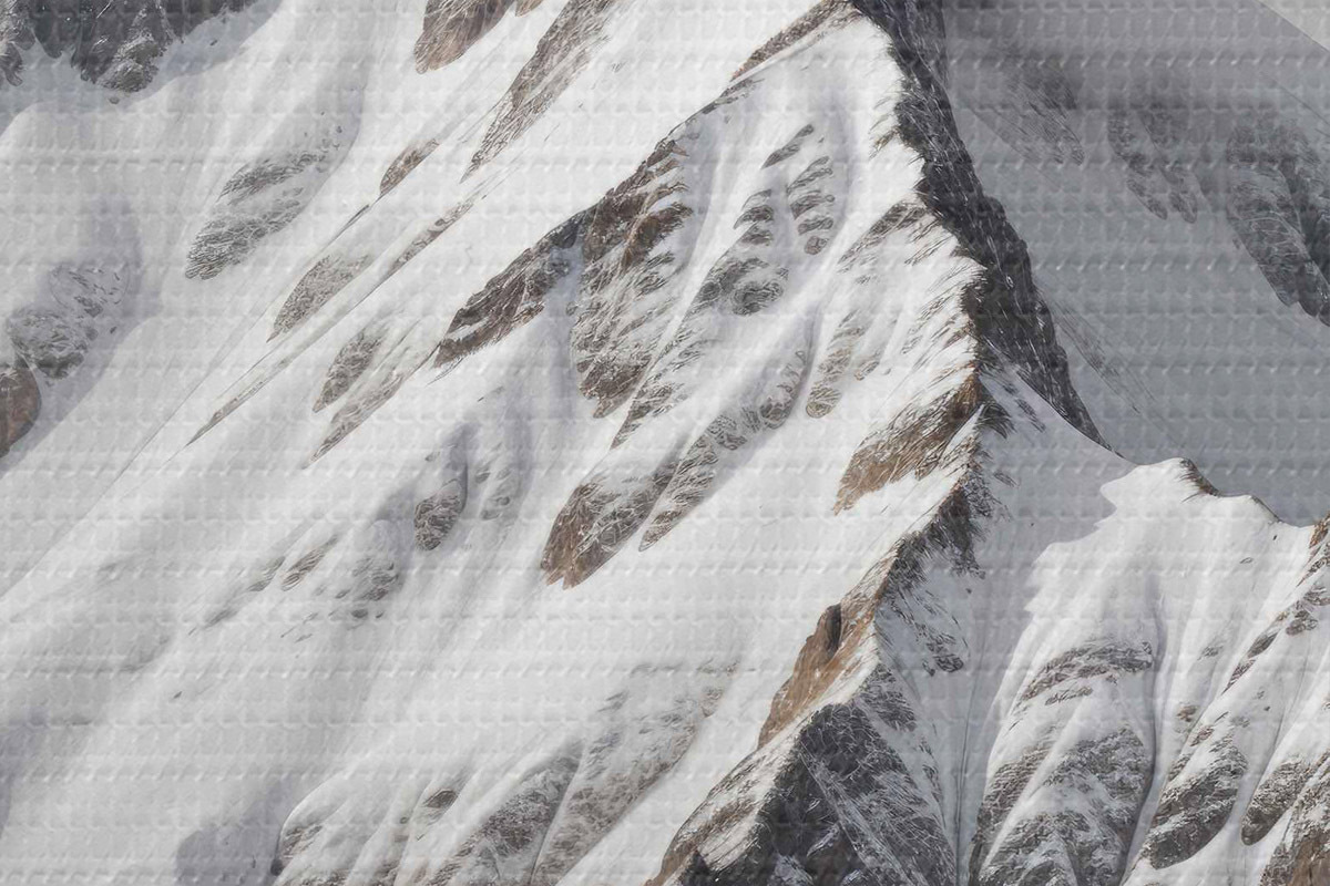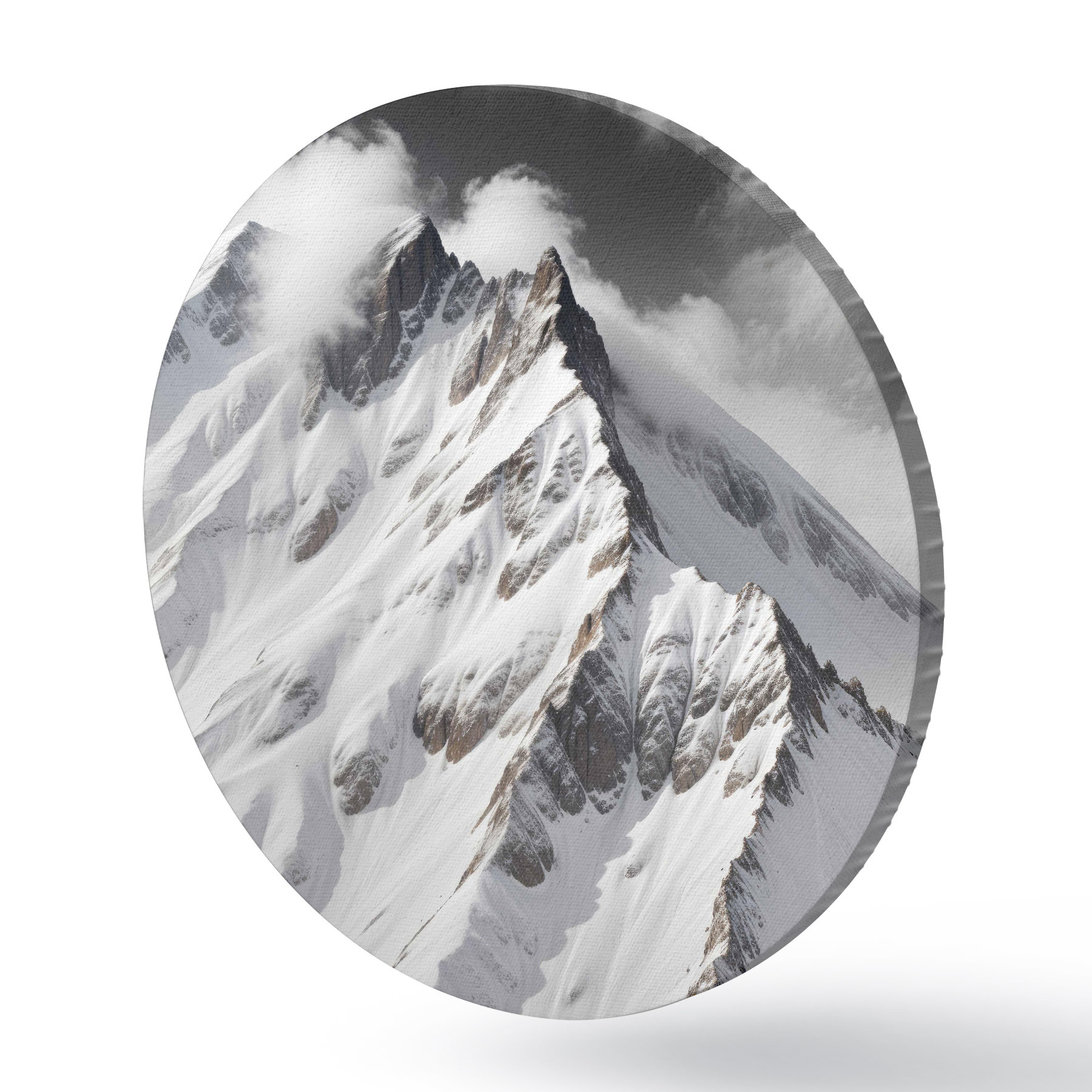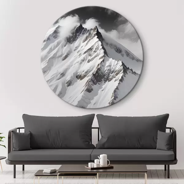 Pilt Lumega kaetud must-valged mäetipud pilvisel, dramaatilisel maastikul Nr r40553