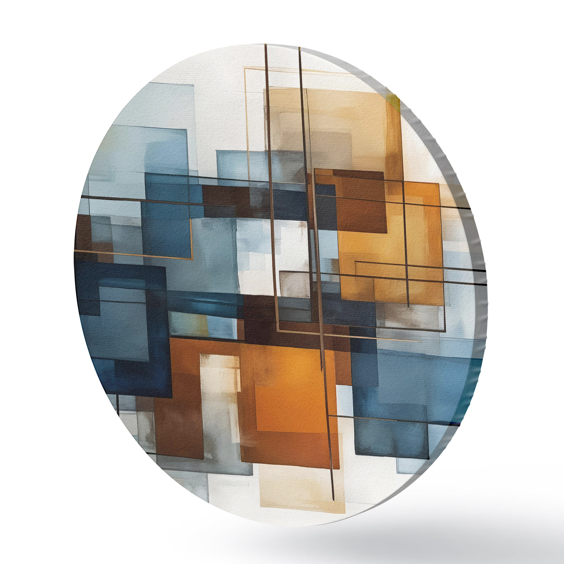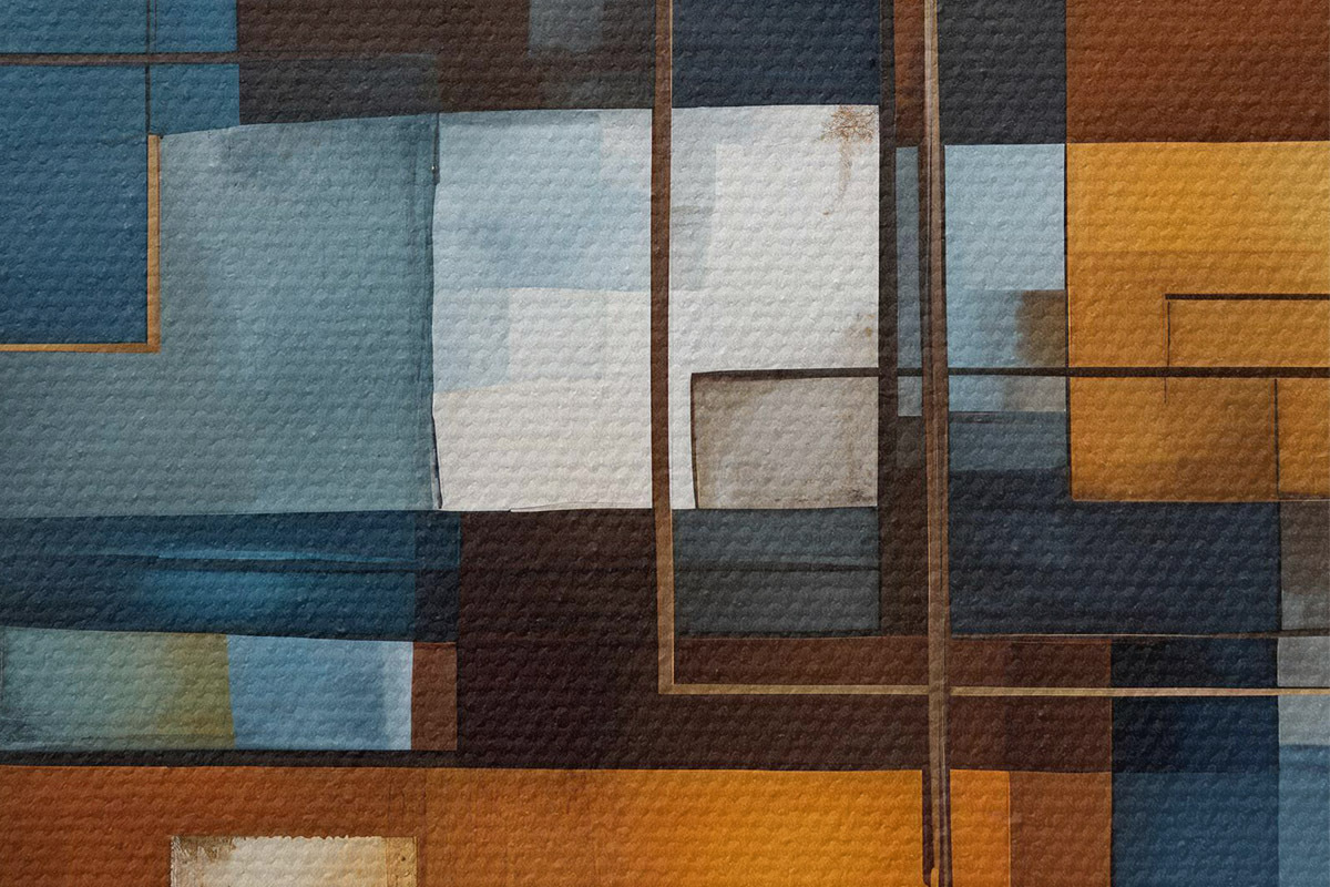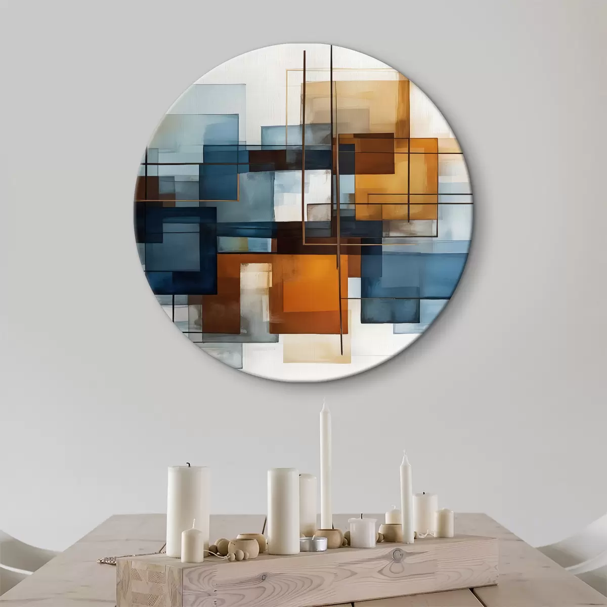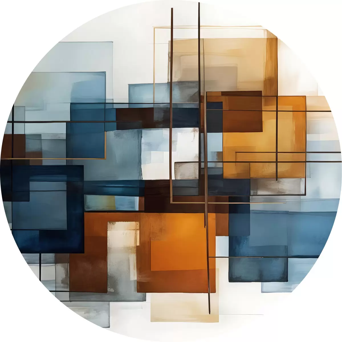 Pilt Abstraktsed geomeetrilised kujundid sinistes, oranžides ja pruunides toonides loovad kaasaegse, minimalistliku kompositsiooni. Nr r40563