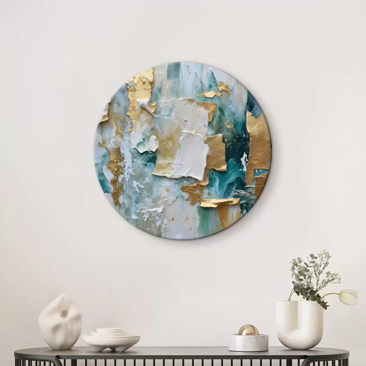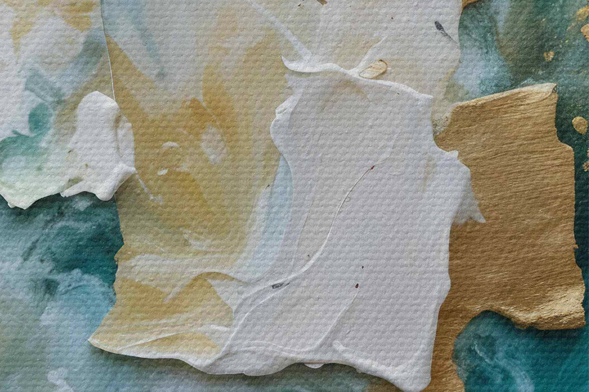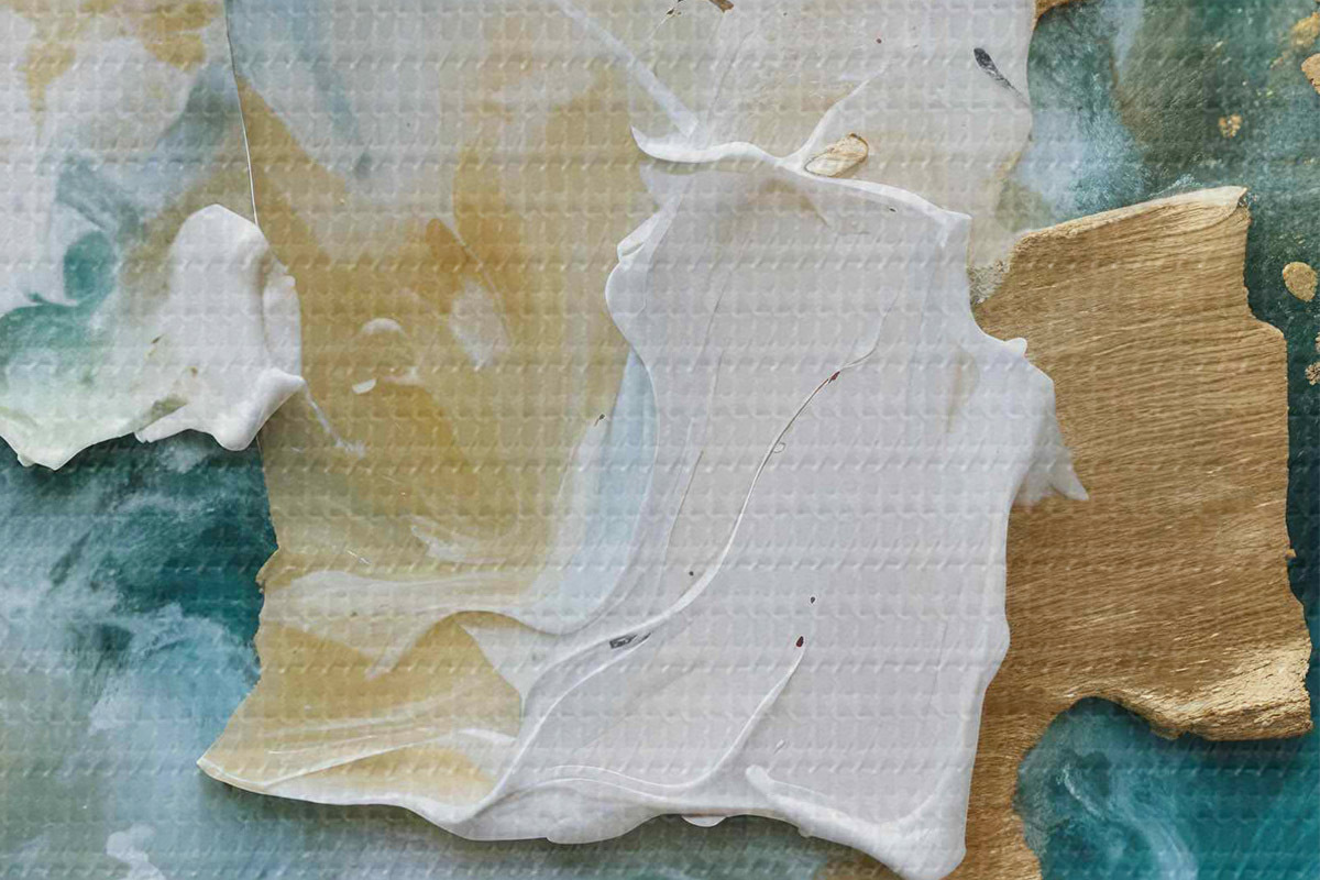 Pilt Valge, sinise ja kollase värvikihiga kooruv värv loob abstraktse, tekstuurse trükise Nr r40577