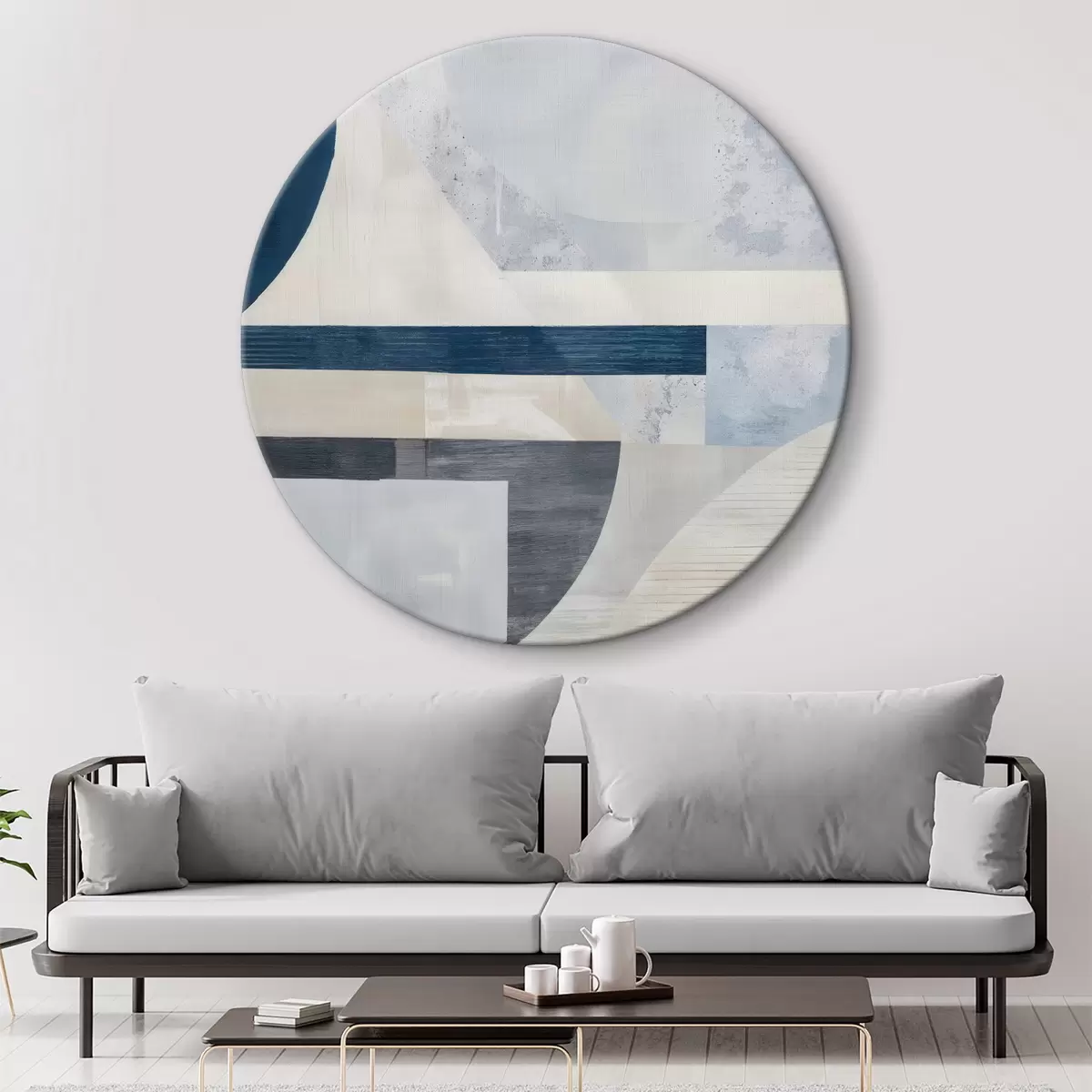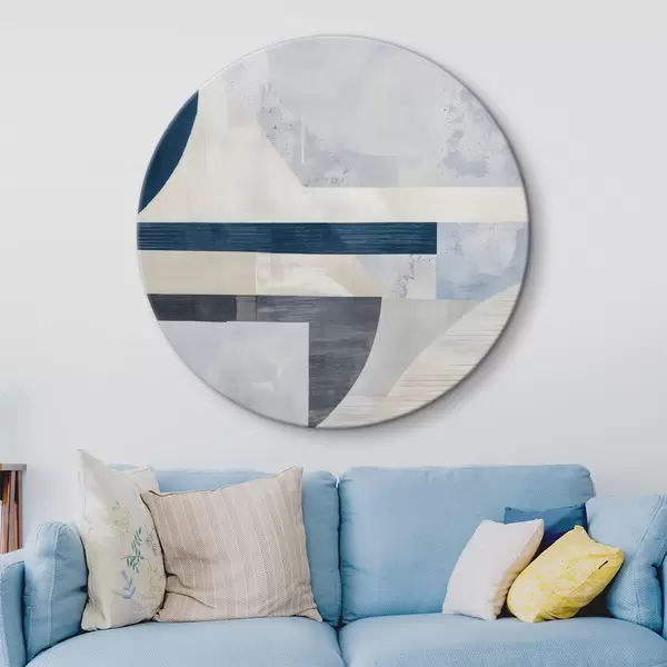 Pilt Minimalistlik abstraktsioon geomeetriliste kujundite ja tekstuuridega sinistes, hallides ja valgetes toonides Nr r40596