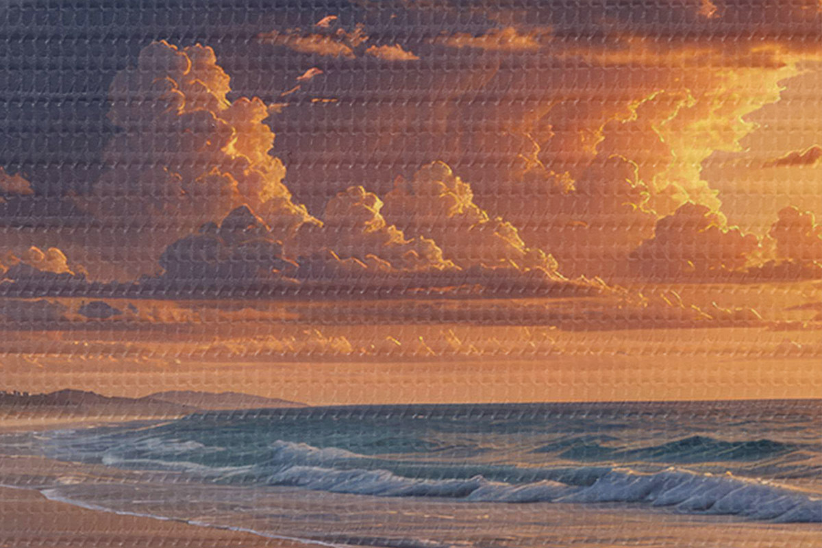 Selle lõuendi peenike niidipunus meenutab professionaalse kunstniku lõuendi pinda.