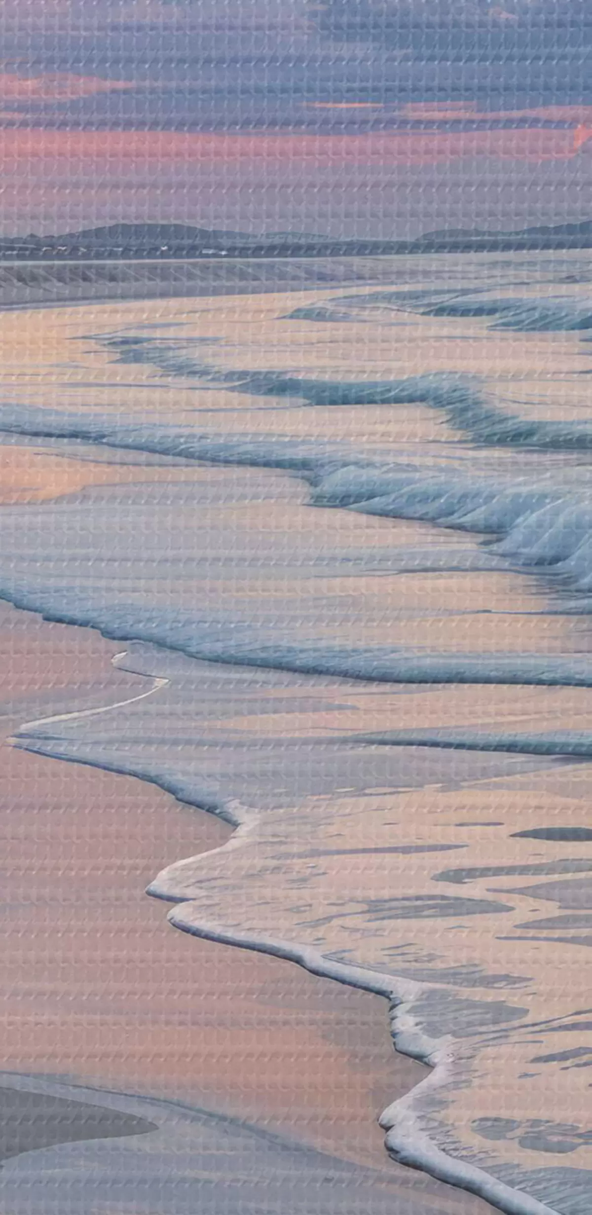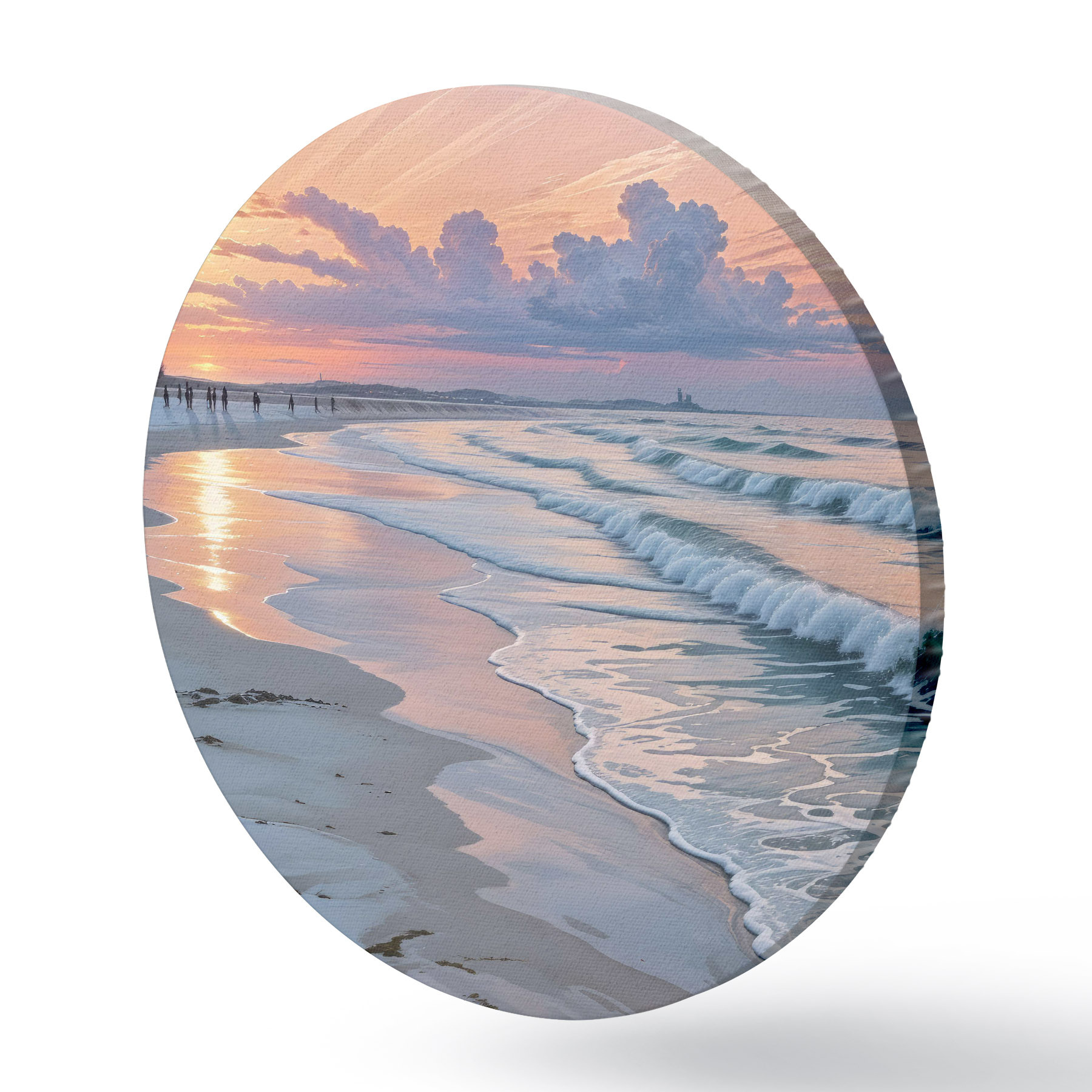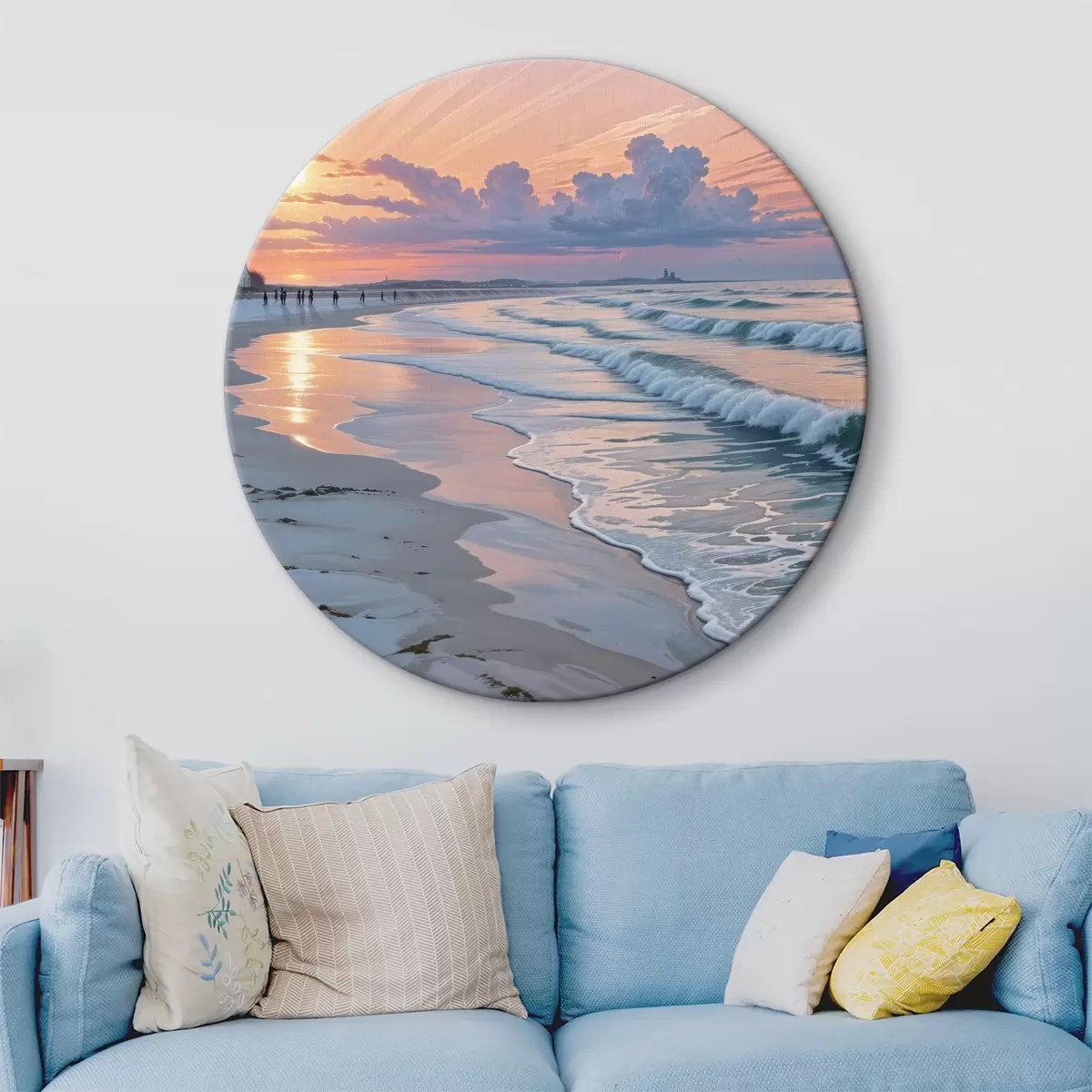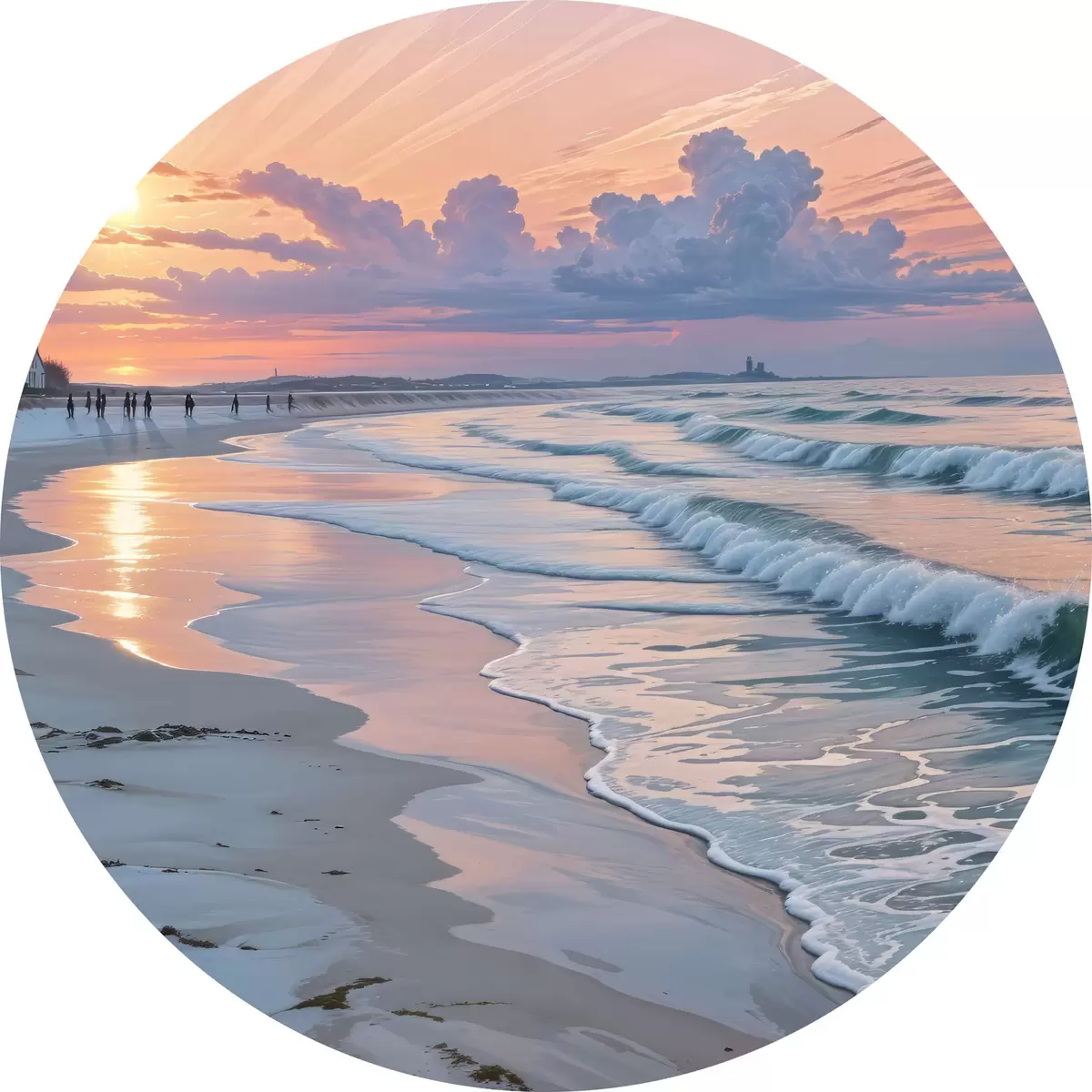 Pilt Rahulik stseen rannas päikeseloojangul, õrnad lained loksuvad liivakaldale Nr r40606