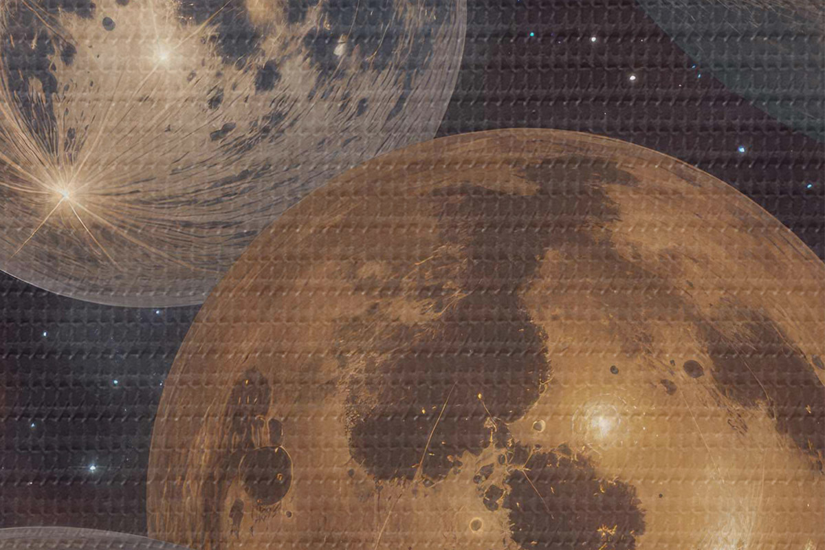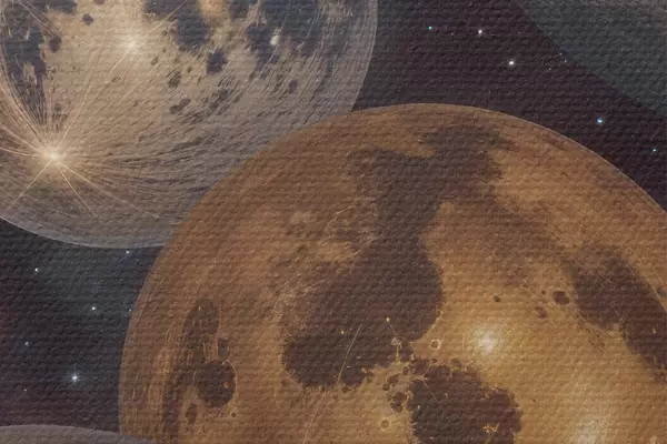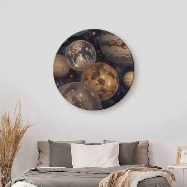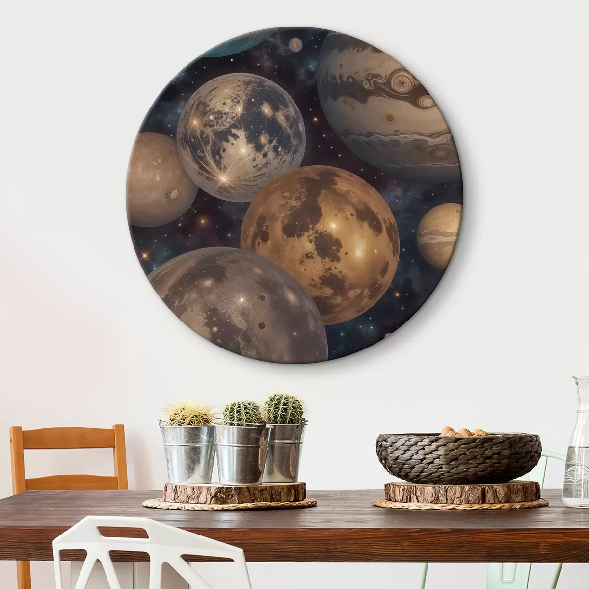 Pilt Abstraktne kosmosetrükk värviliste planeetide ja kuudega, mis hõljuvad tähistaevas Nr r40607