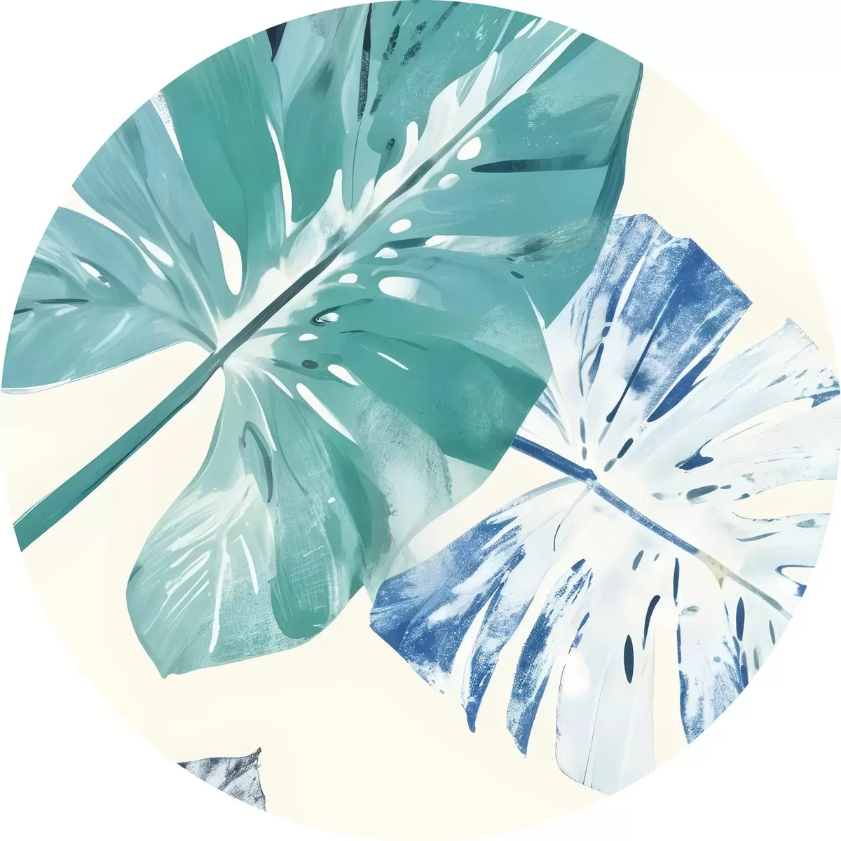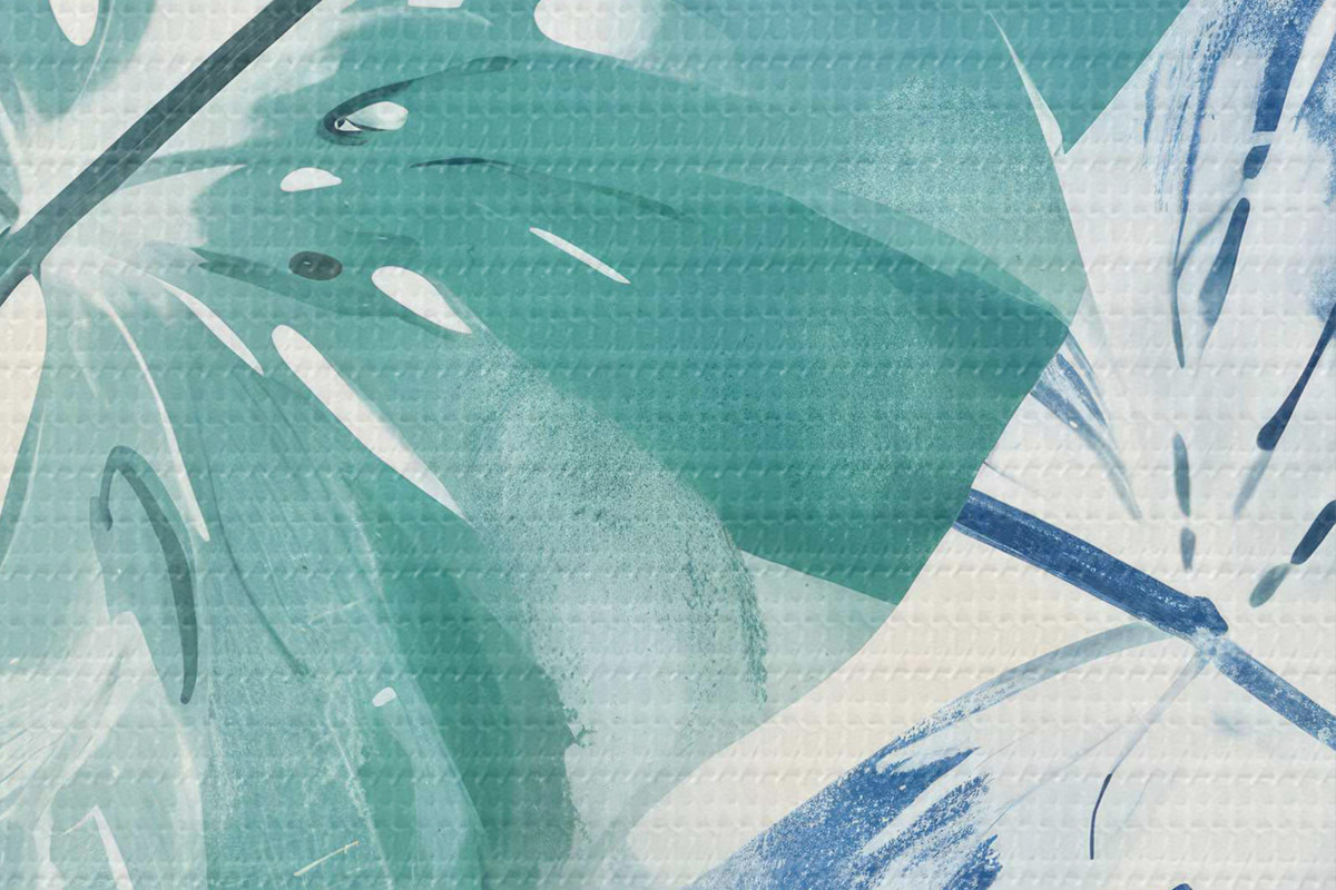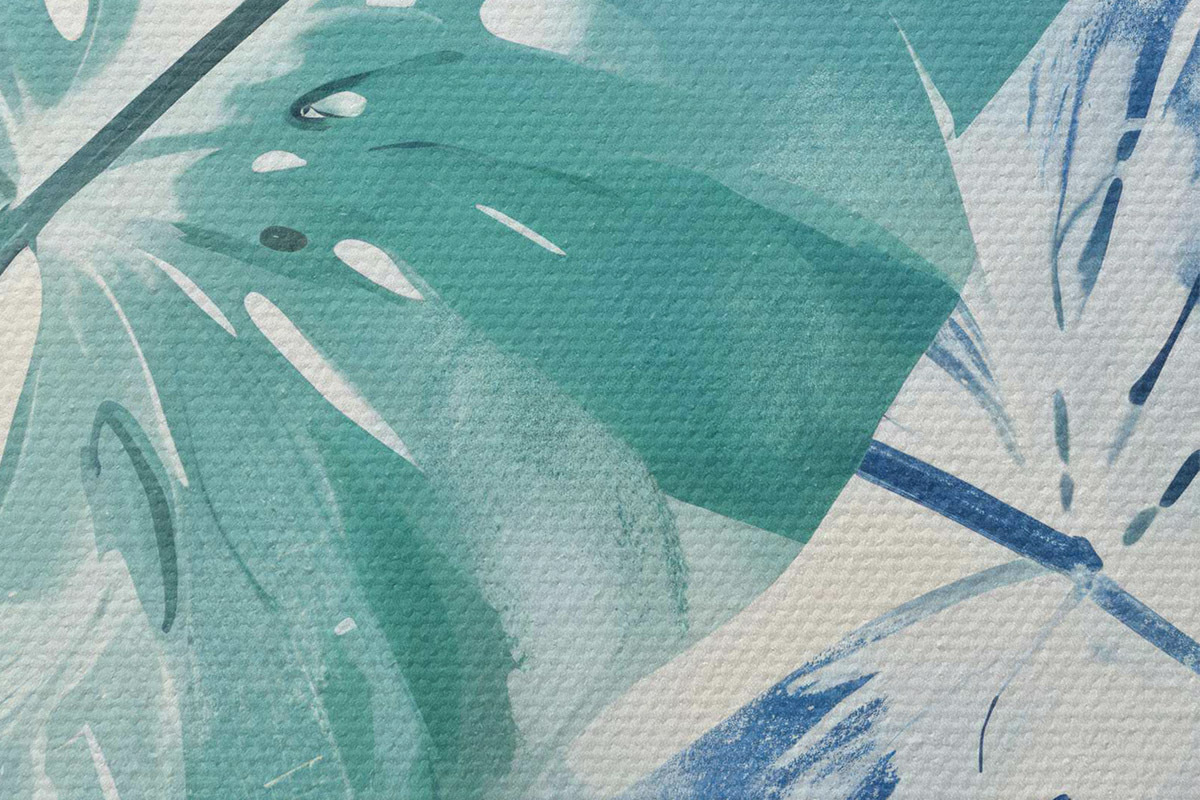 Pilt Suurte troopiliste lehtedega trükis heledal taustal sinistes ja rohelistes toonides Nr r40608
