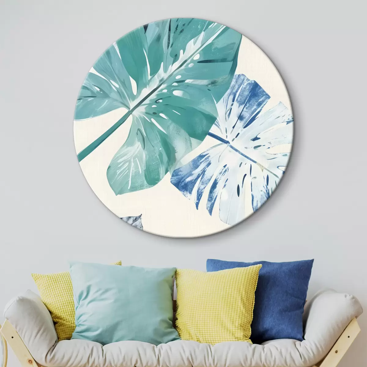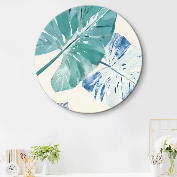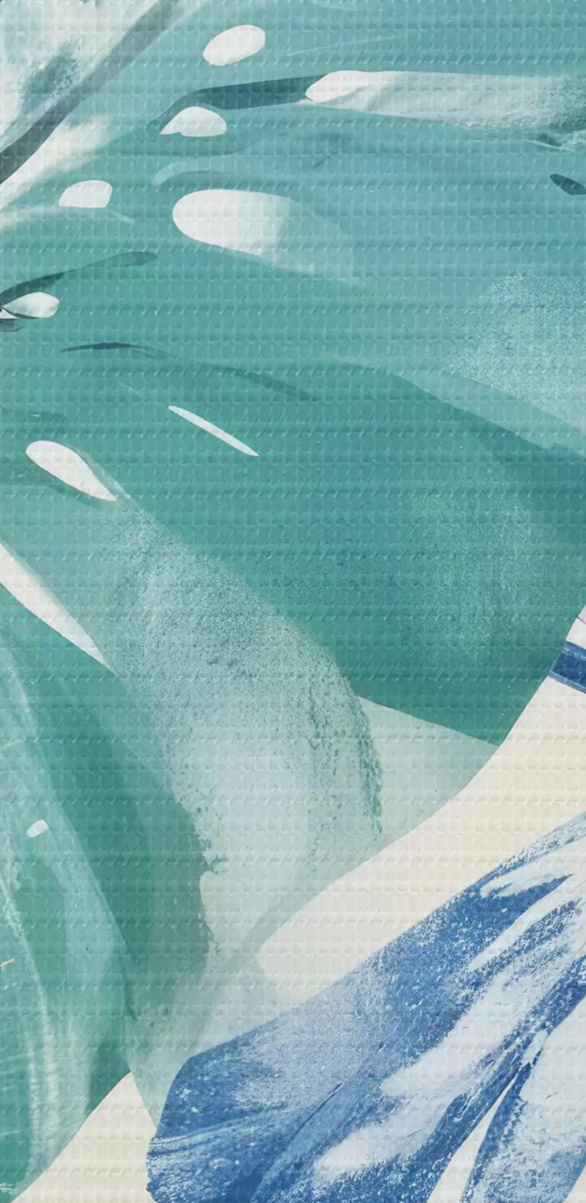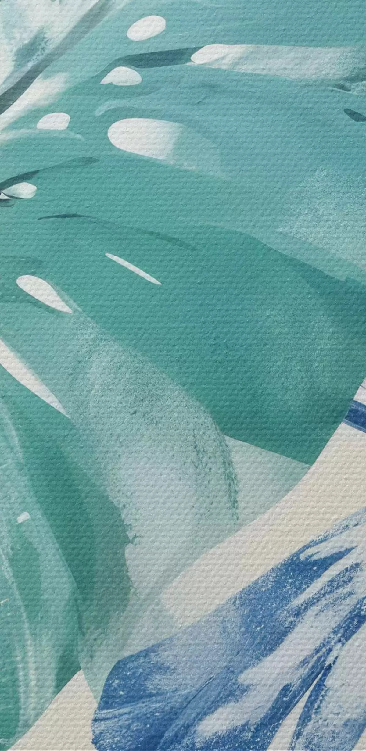 Pilt Suurte troopiliste lehtedega trükis heledal taustal sinistes ja rohelistes toonides Nr r40608