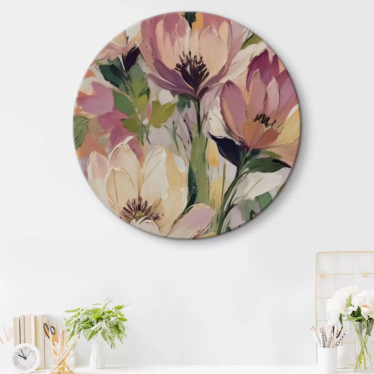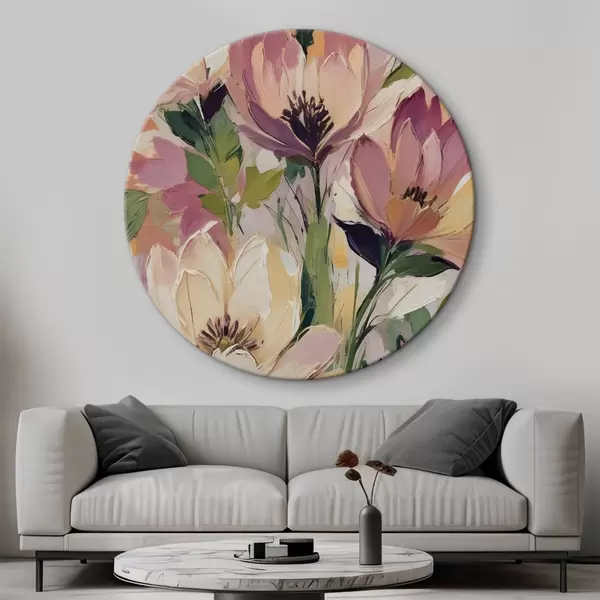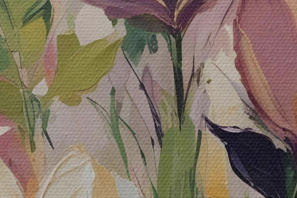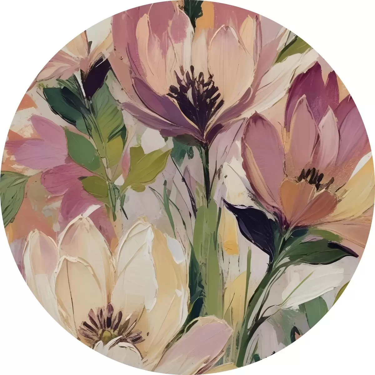 Pilt Elavat värvi lillekomplekt suurte, värviliste lilledega roosa, virsiku ja kollase toonides Nr r40609