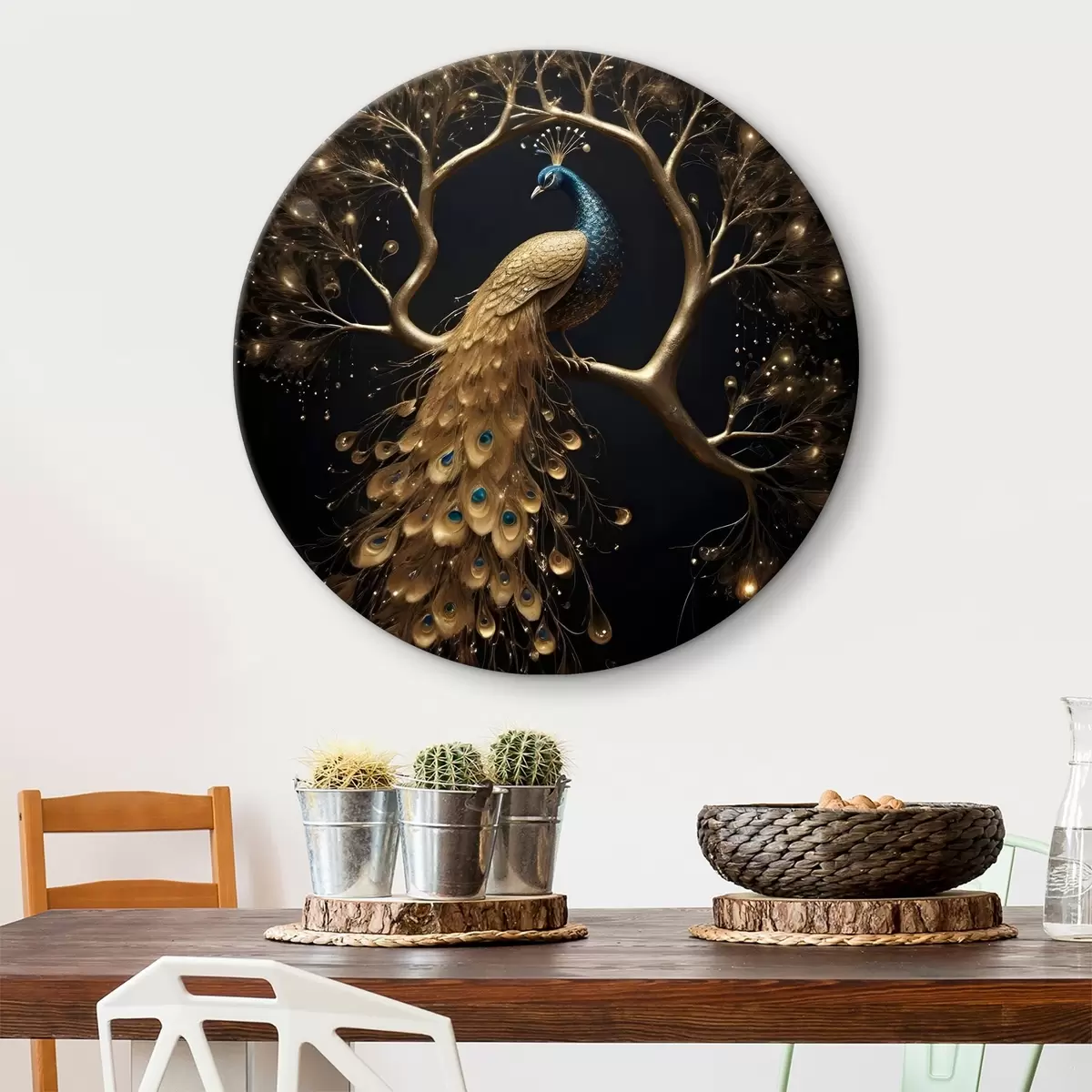 Pilt Eredate sulgedega kukk istub oksal tumedal taustal helendavate puudega Nr r40612