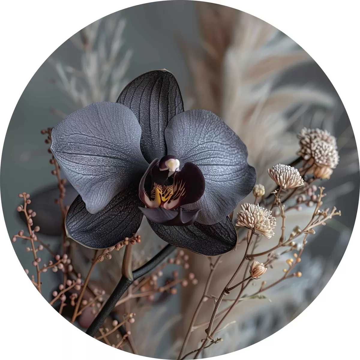 Pilt Elegantne lilleseade musta orhidee ja teiste kuivatatud lilledega Nr r40661