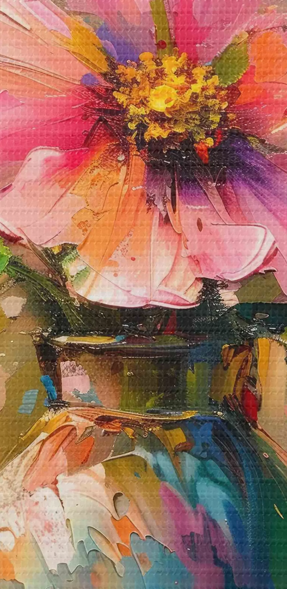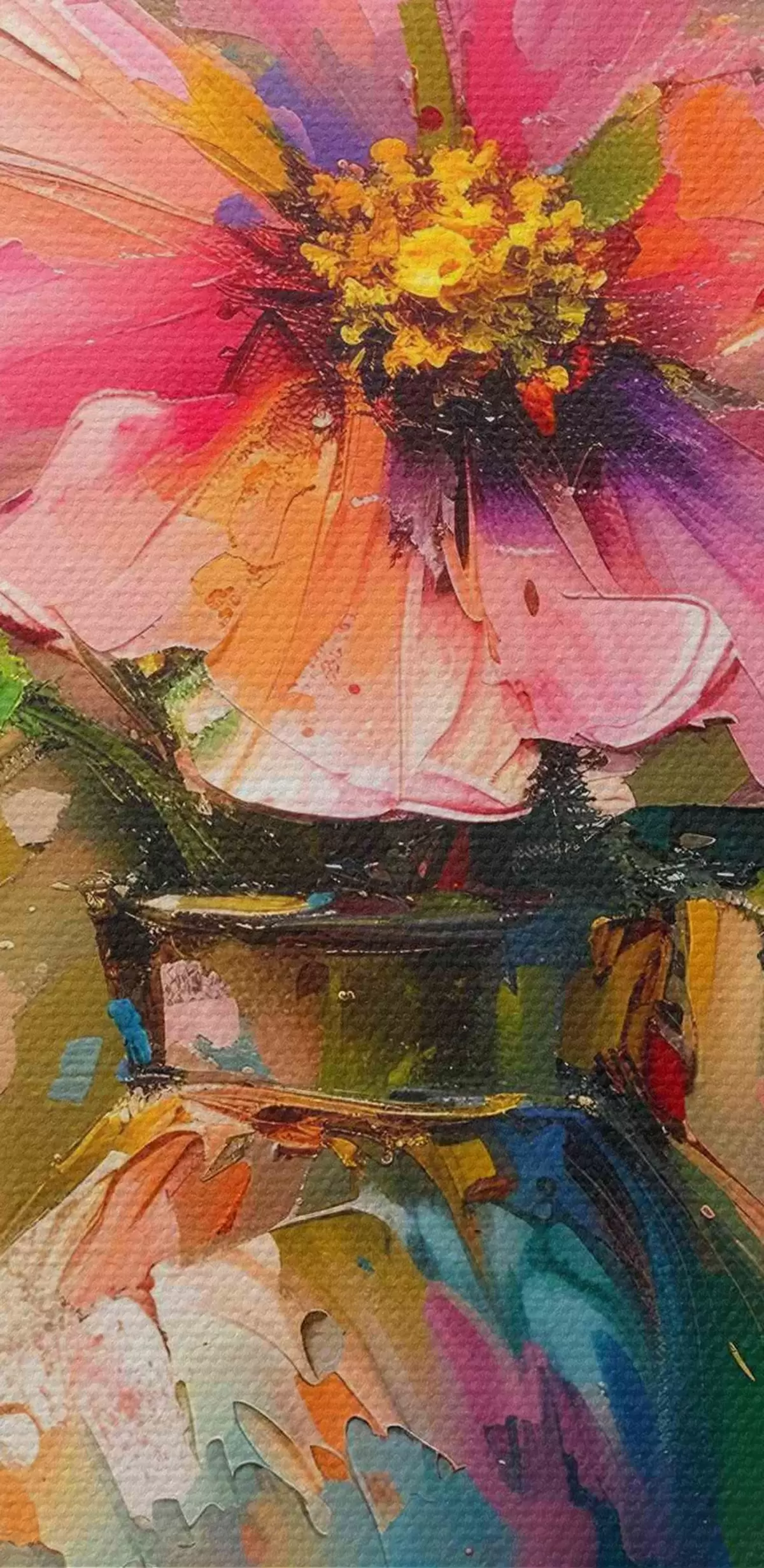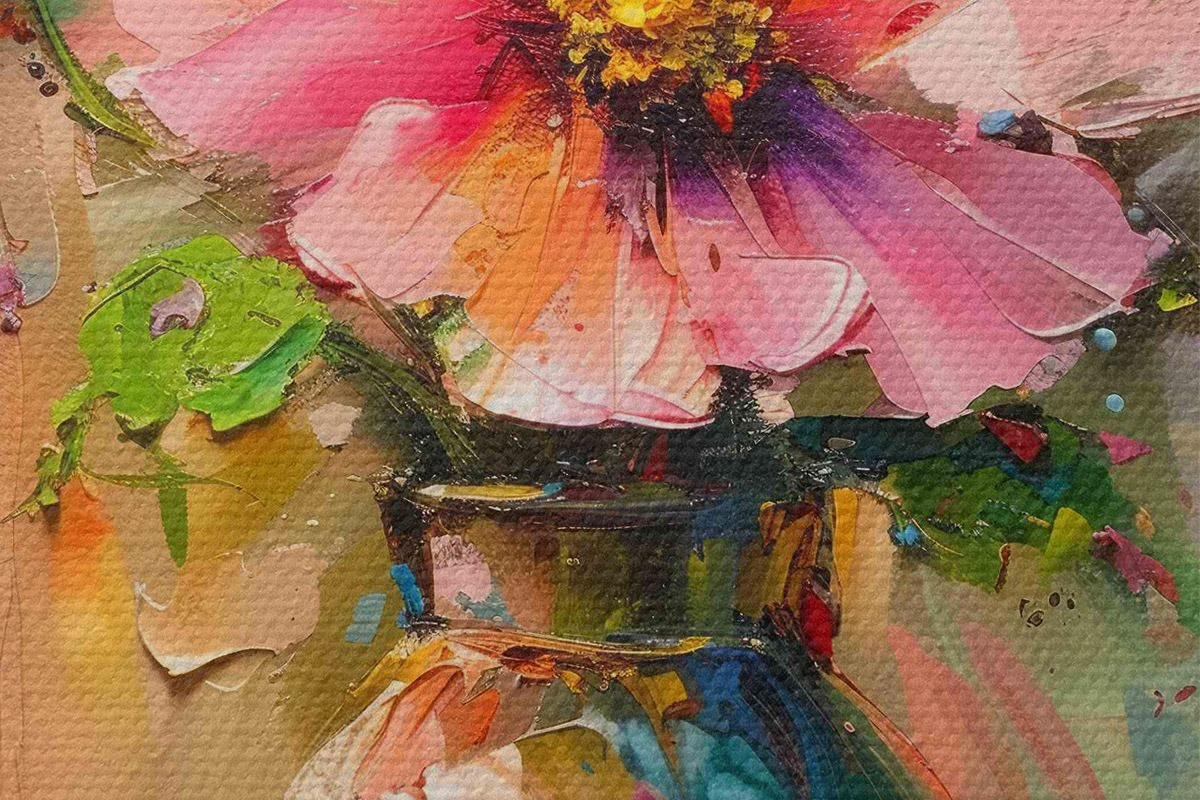 Pilt Värviline lill vaasis suurte õlivärvijoonistustega Nr r40664