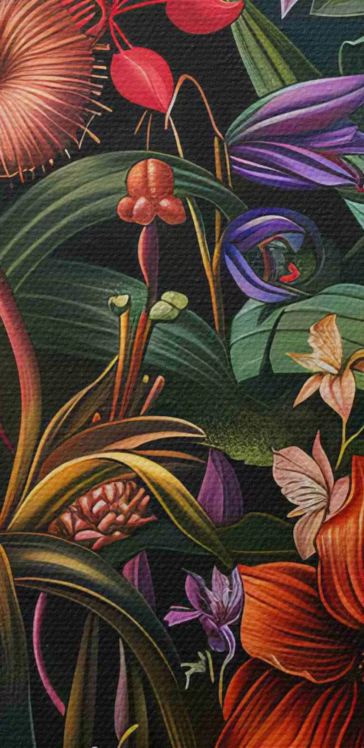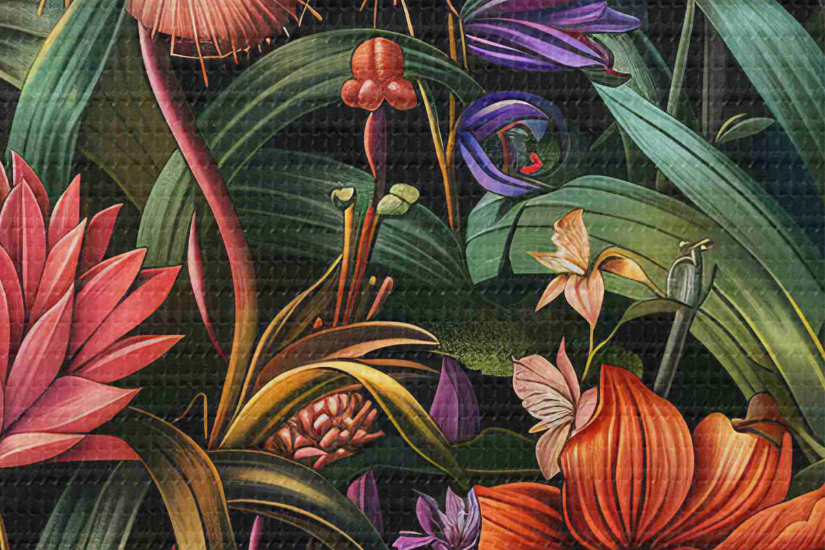 Pilt Troopiline kompositsioon erinevate roheliste ja troopiliste lilledega Nr r40667
