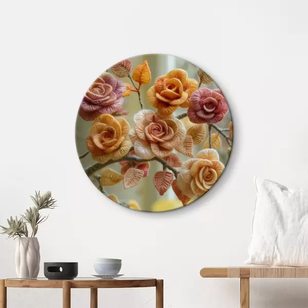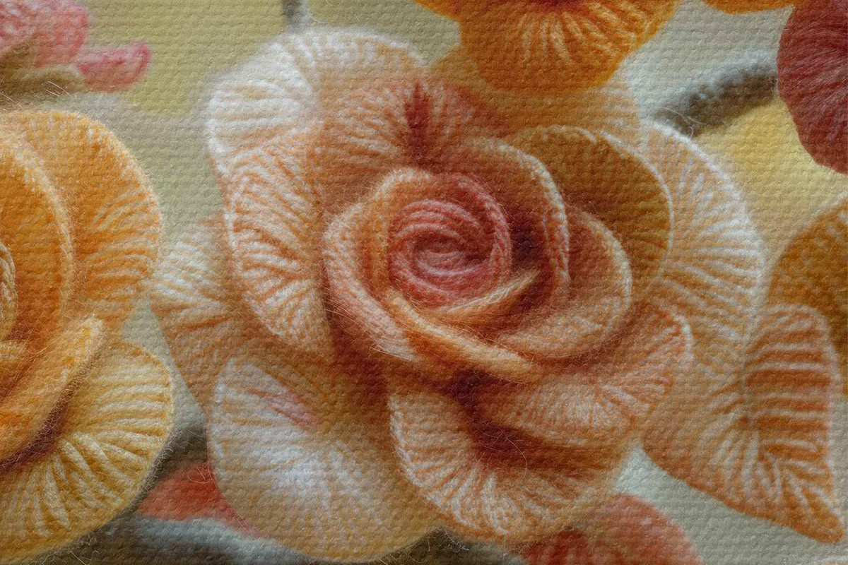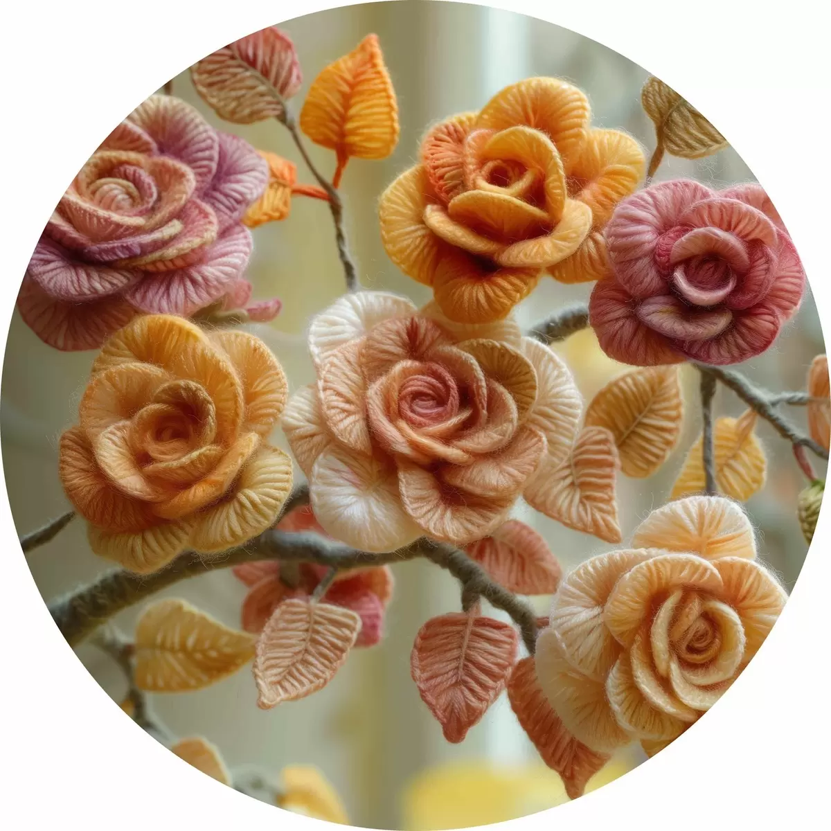 Pilt Pehmest, kohevast villast puidule kootud roosid Nr r40674