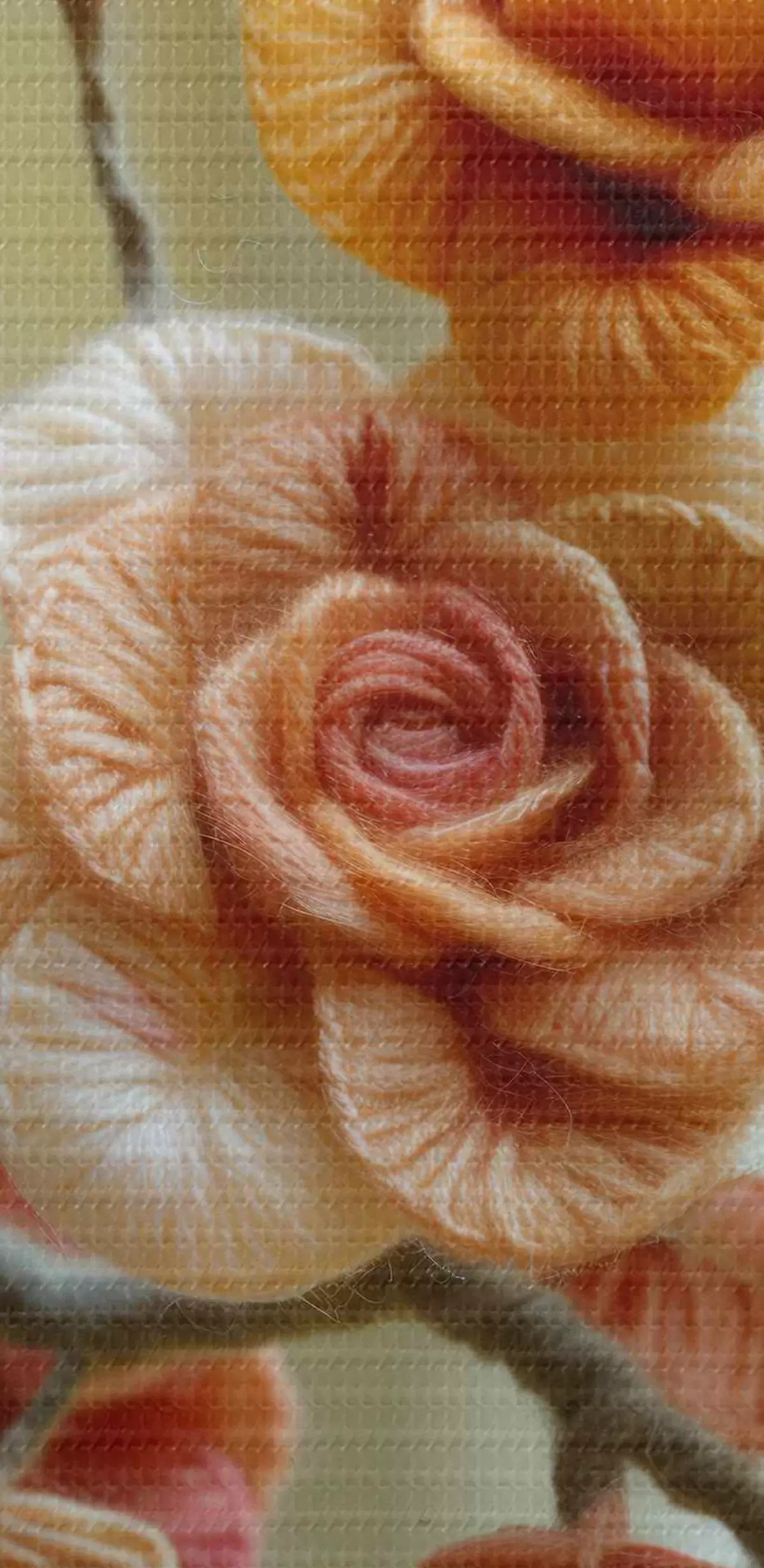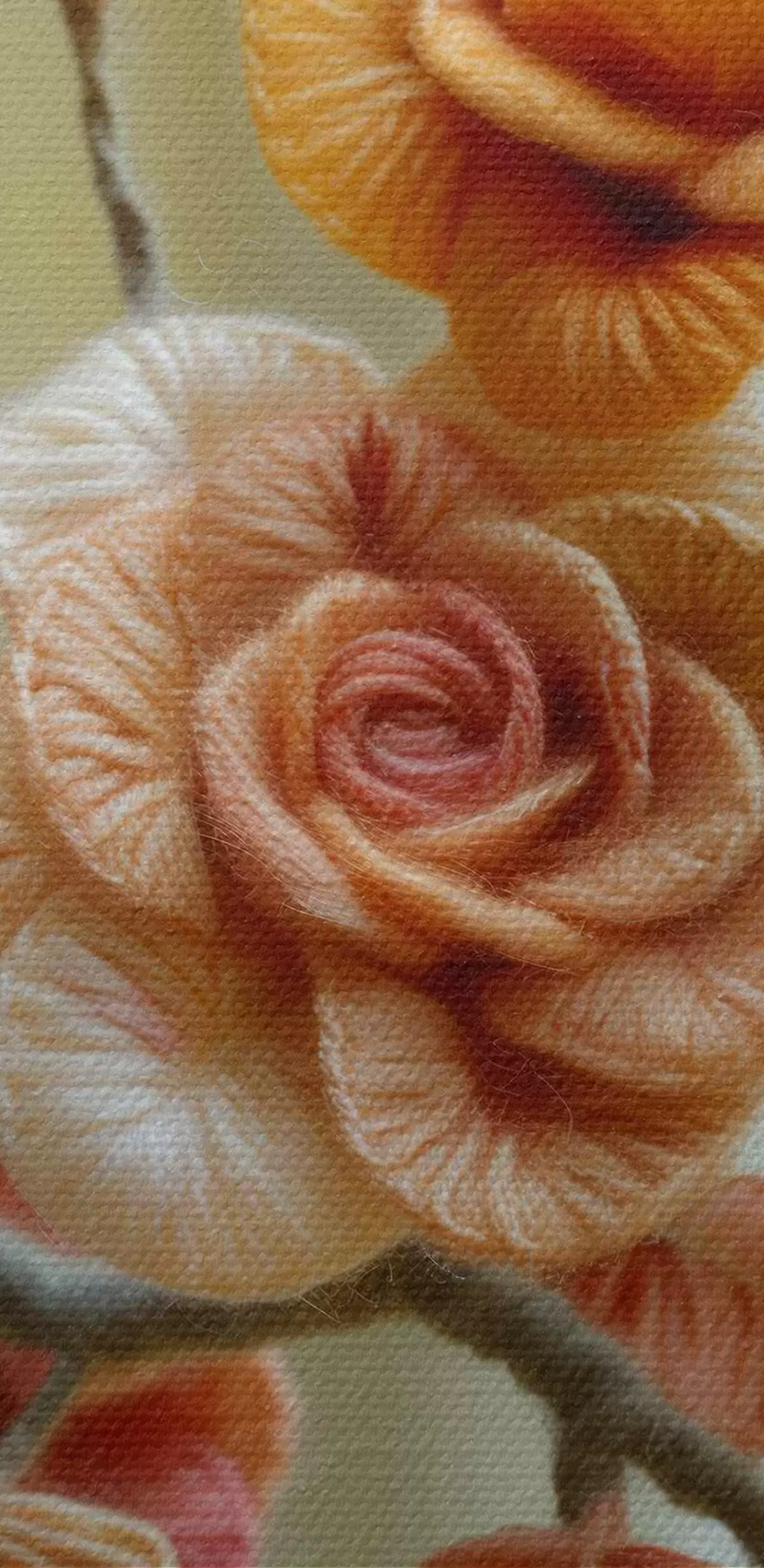 Selle lõuendi peenike niidipunus meenutab professionaalse kunstniku lõuendi pinda.