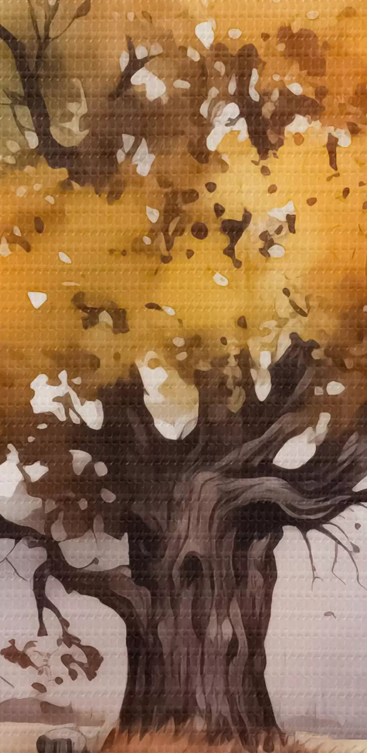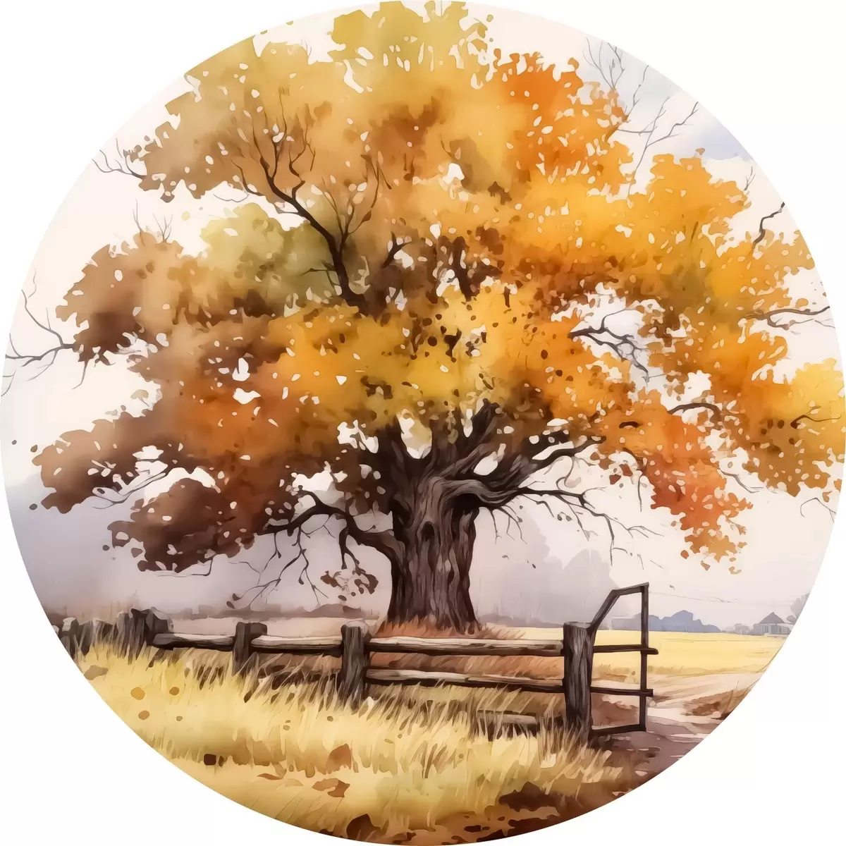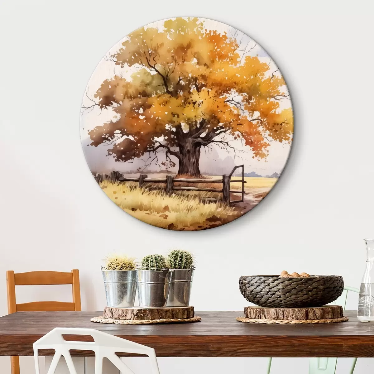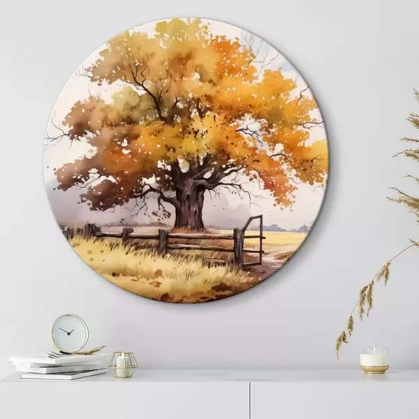 Pilt Puu põllul aia ääres kolletunud lehtedega, sügismaastik Nr r40680