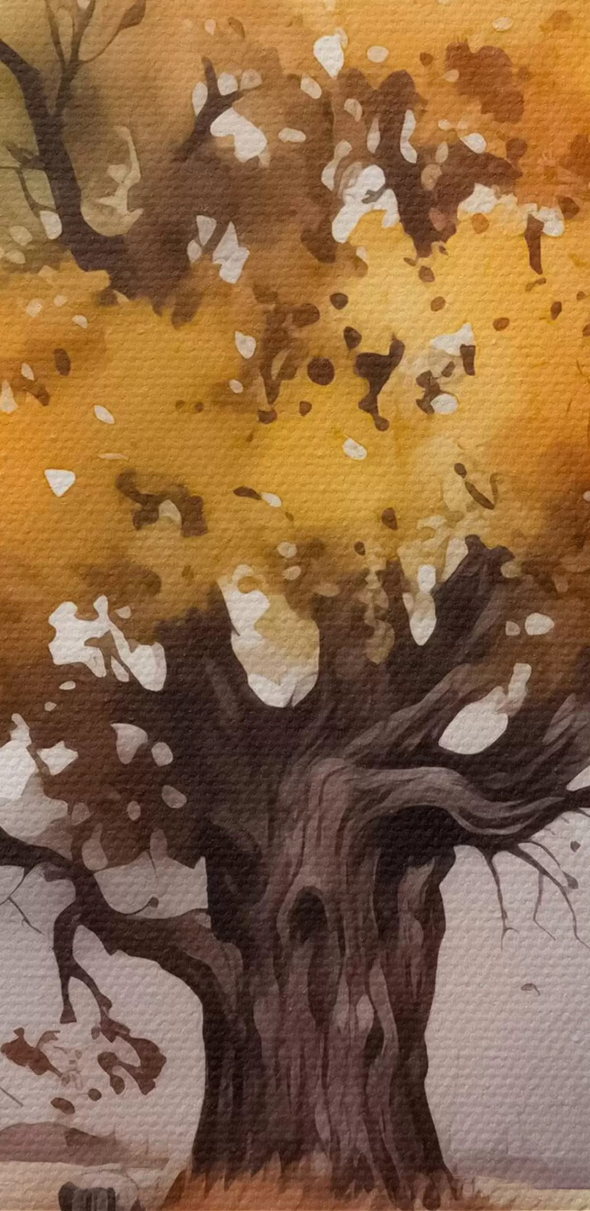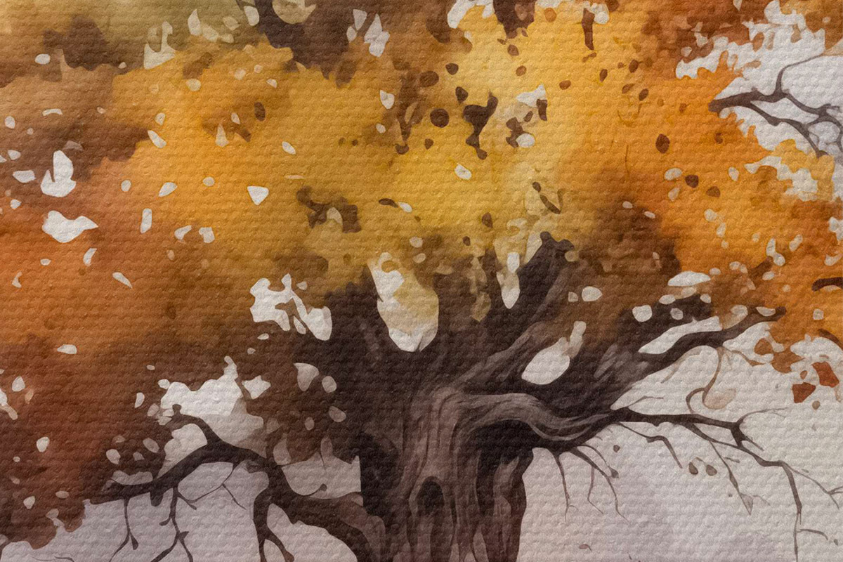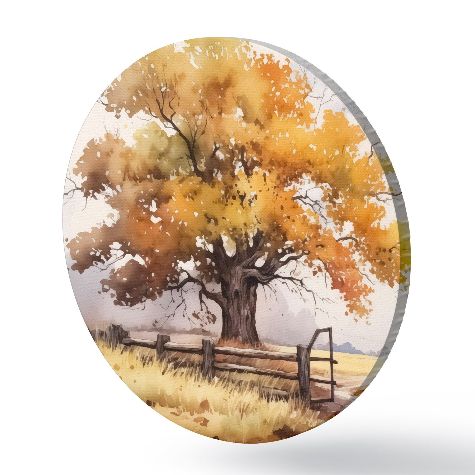 Pilt Puu põllul aia ääres kolletunud lehtedega, sügismaastik Nr r40680
