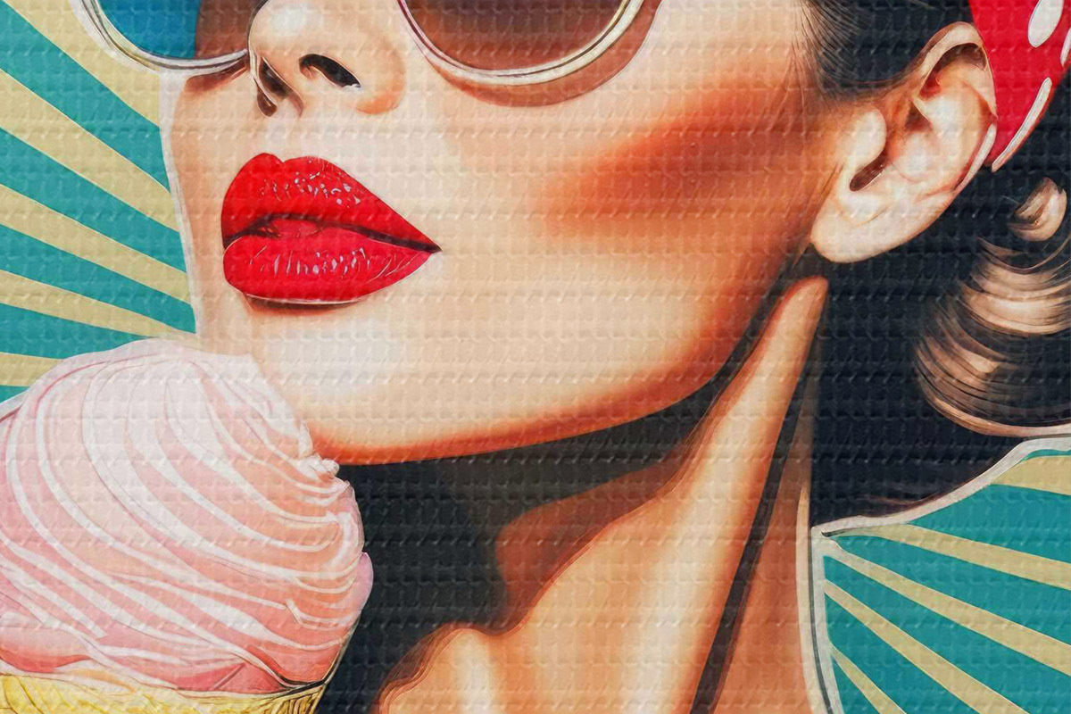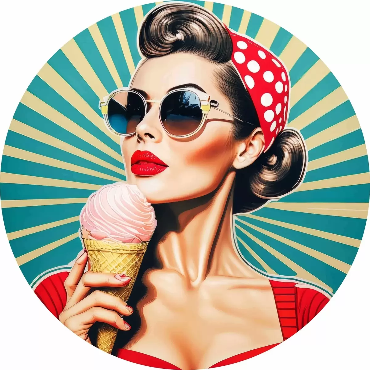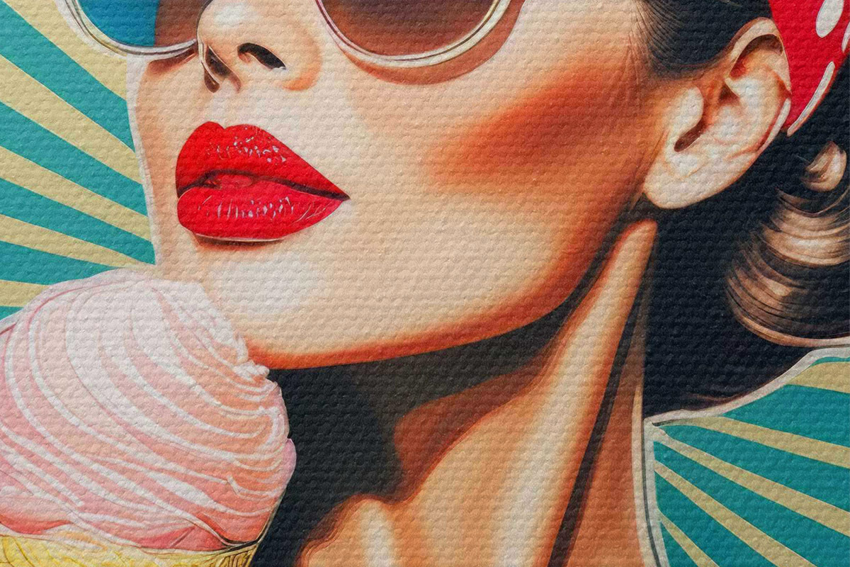 Pilt tüdruk jäätisega, pop art, pin-up, retrohõnguline, retro Nr r40718