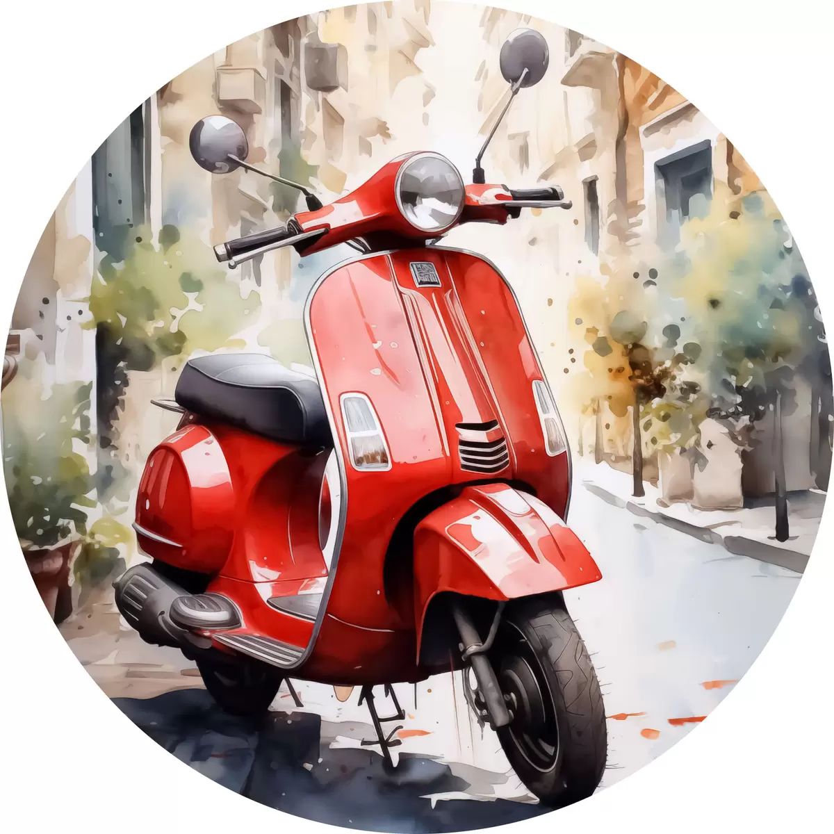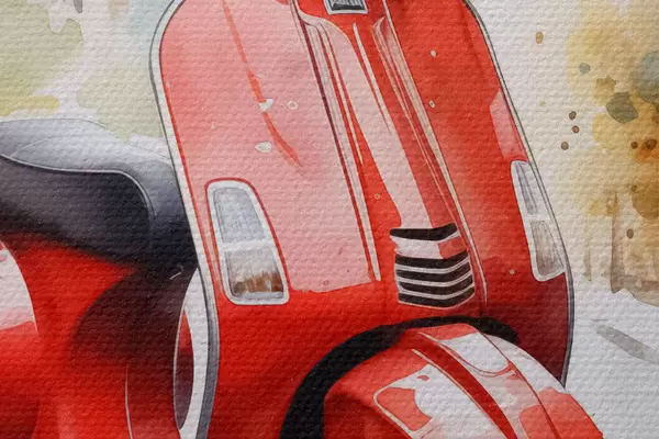 Pilt Punane mootorratas Rooma tänaval akvarellina Nr r40728