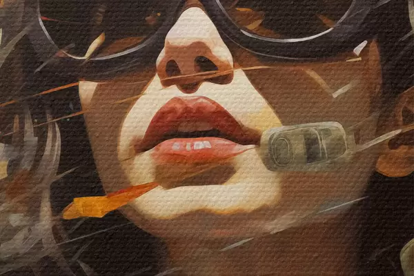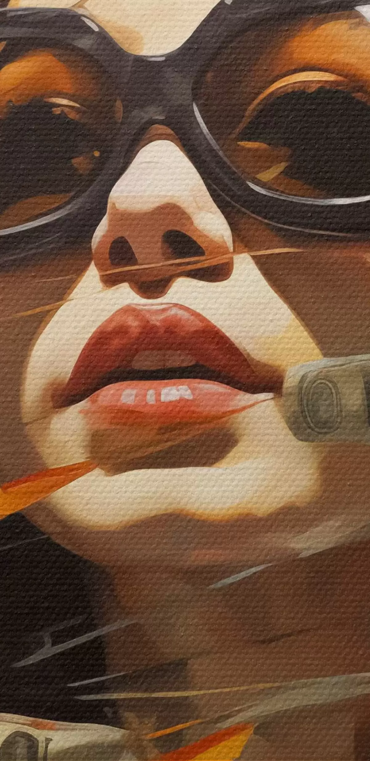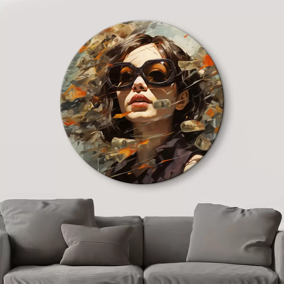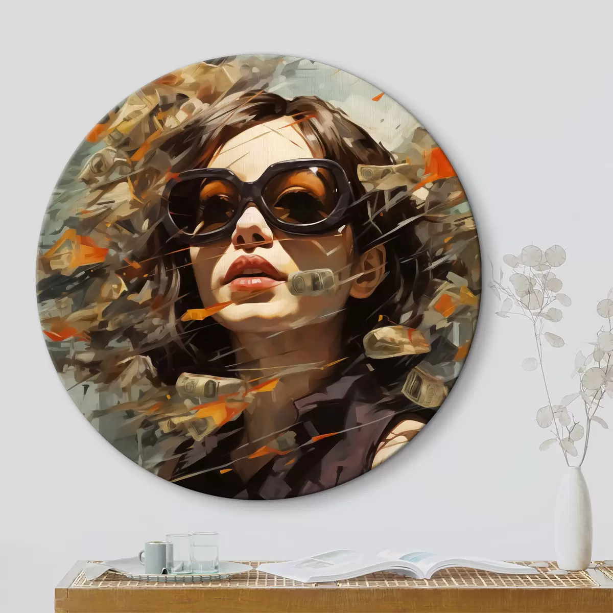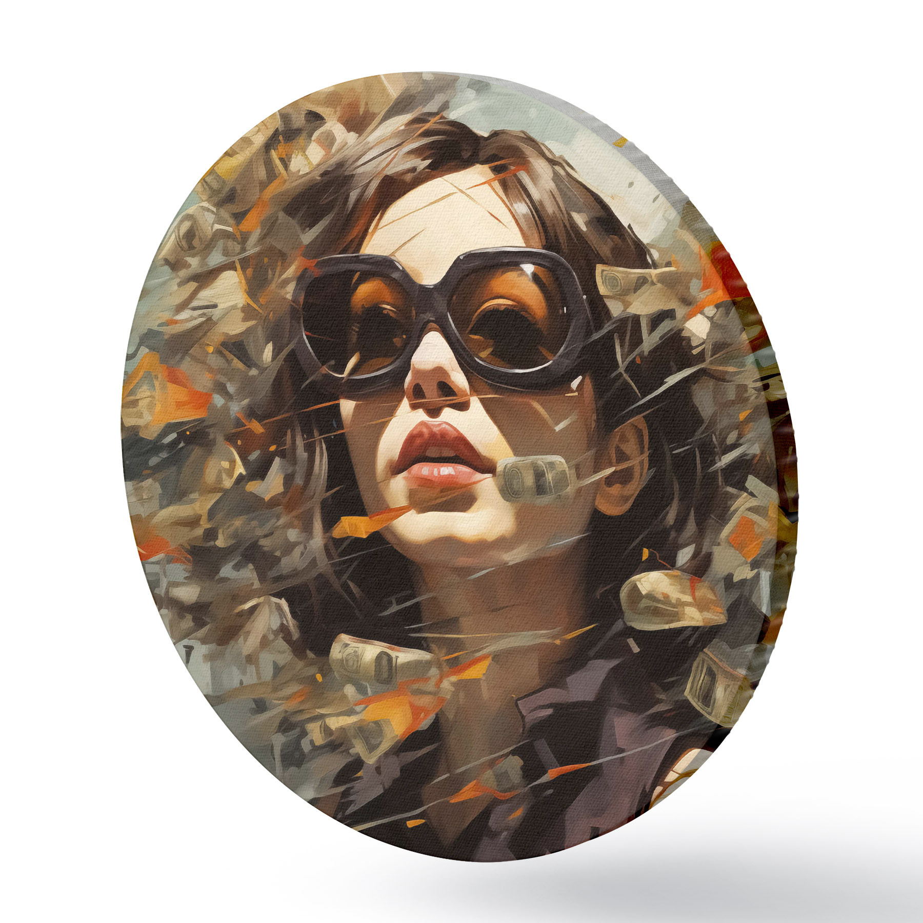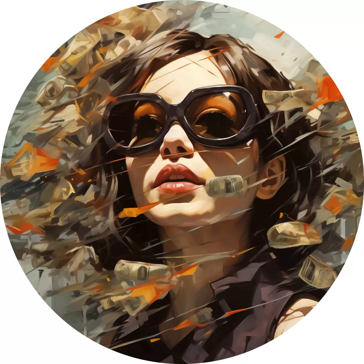 Pilt Tüdruk päikeseprillidega ümbritsetud abstraktne raha Nr r40750