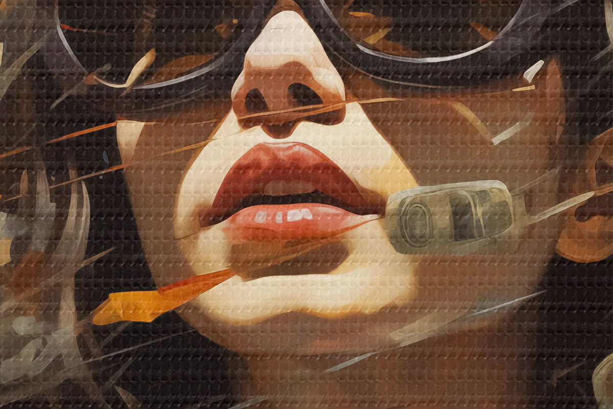 Selle lõuendi peenike niidipunus meenutab professionaalse kunstniku lõuendi pinda.