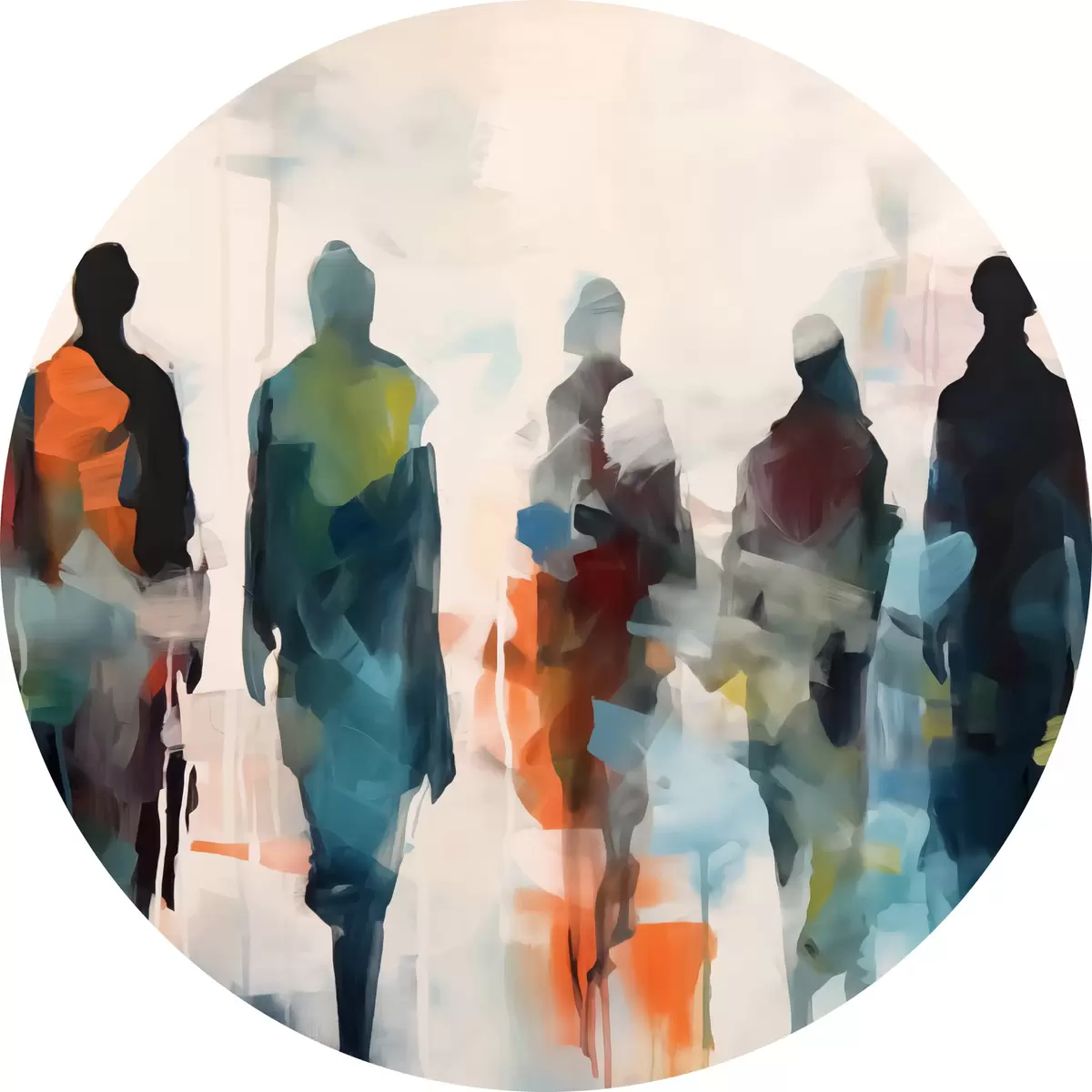 Pilt Abstraktsete inimeste grupi siluetid, pintslitõmmete imitatsioon Nr r40752