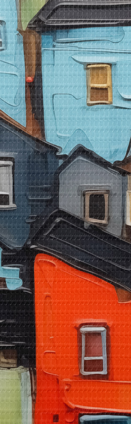Selle lõuendi peenike niidipunus meenutab professionaalse kunstniku lõuendi pinda.