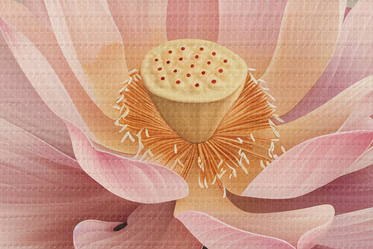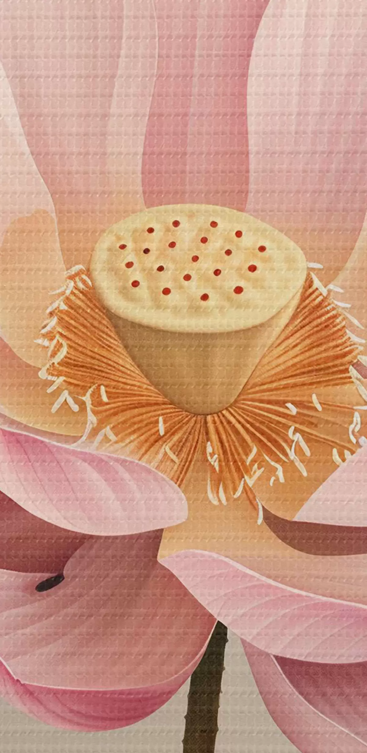 Selle lõuendi peenike niidipunus meenutab professionaalse kunstniku lõuendi pinda.