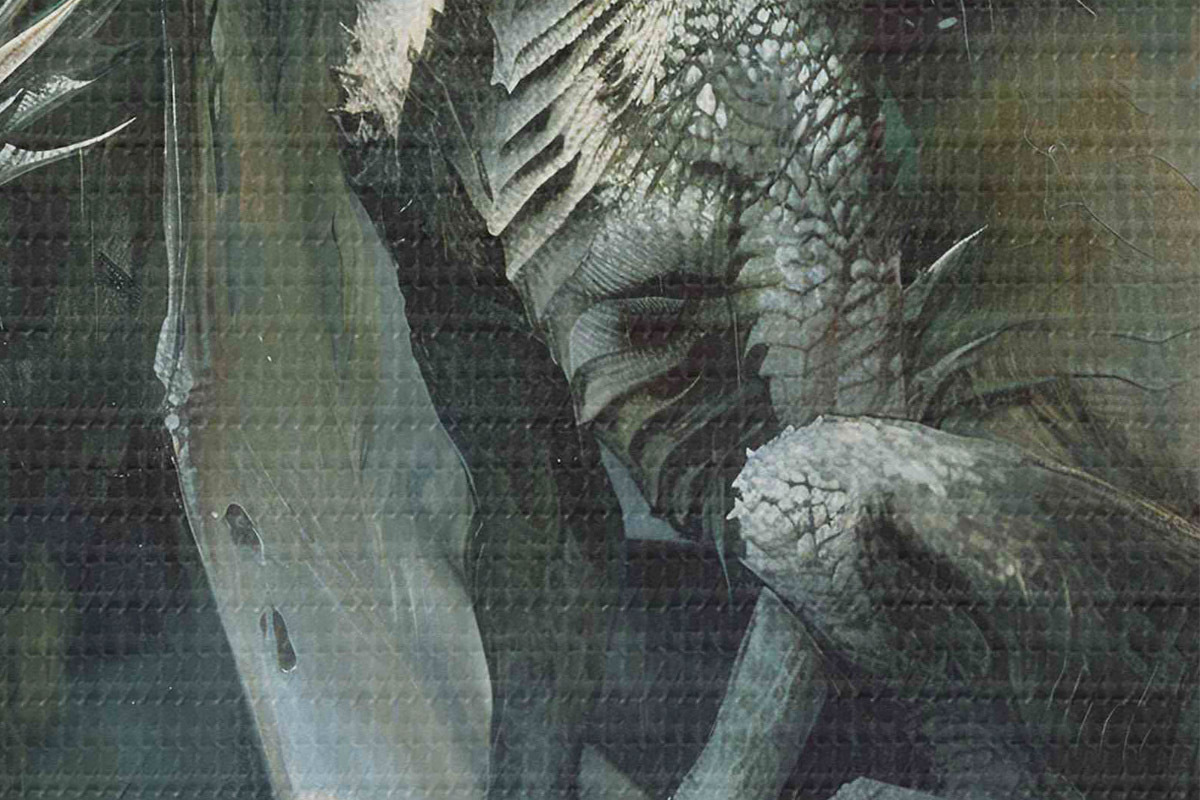 Selle lõuendi peenike niidipunus meenutab professionaalse kunstniku lõuendi pinda.