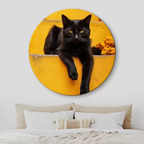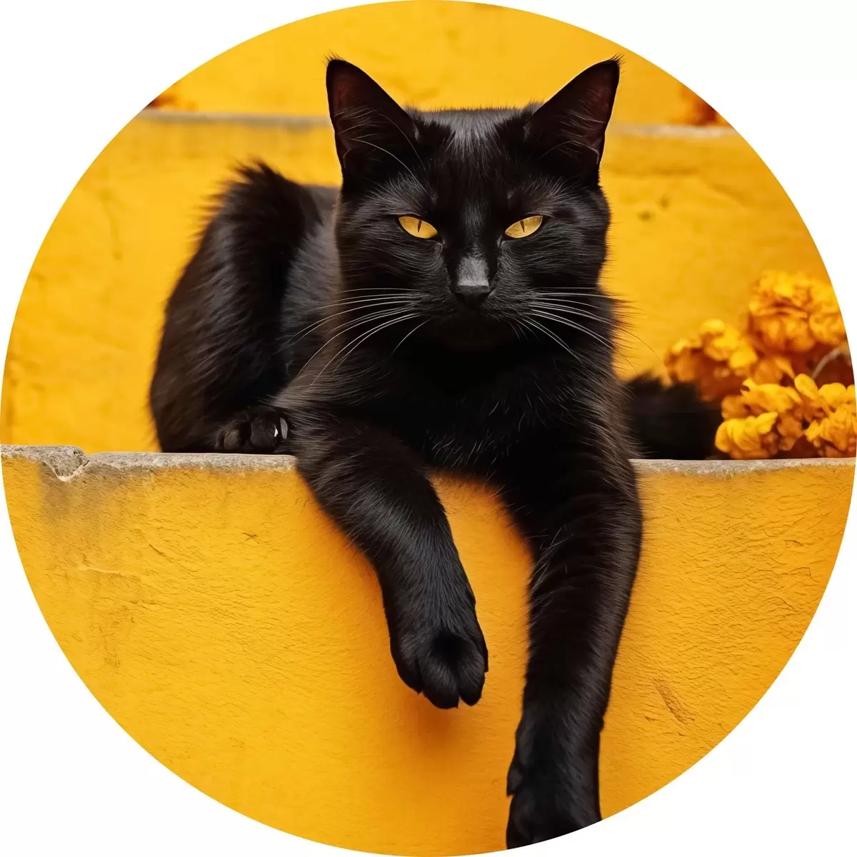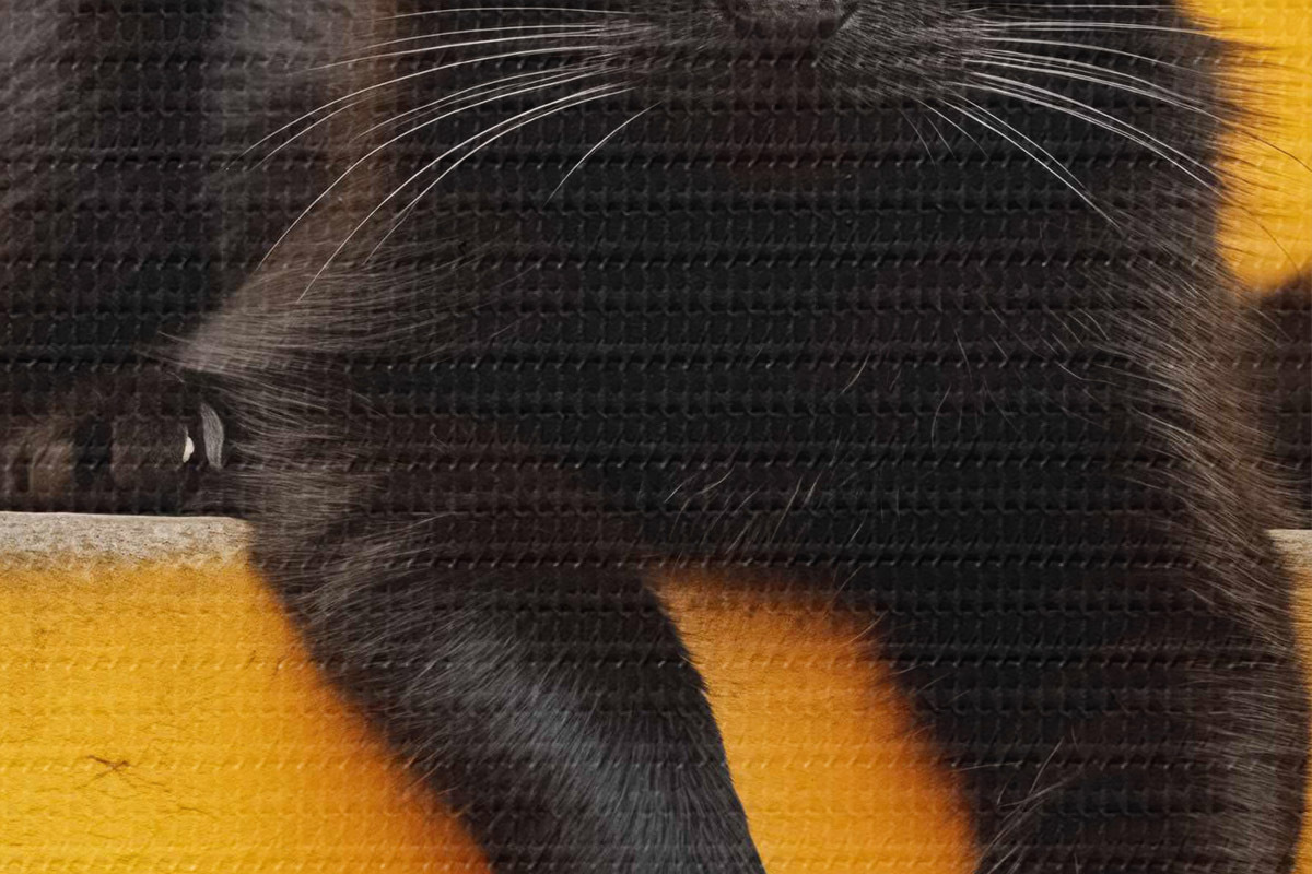 Pilt Must kass lamab kollasel trepil Nr r40798