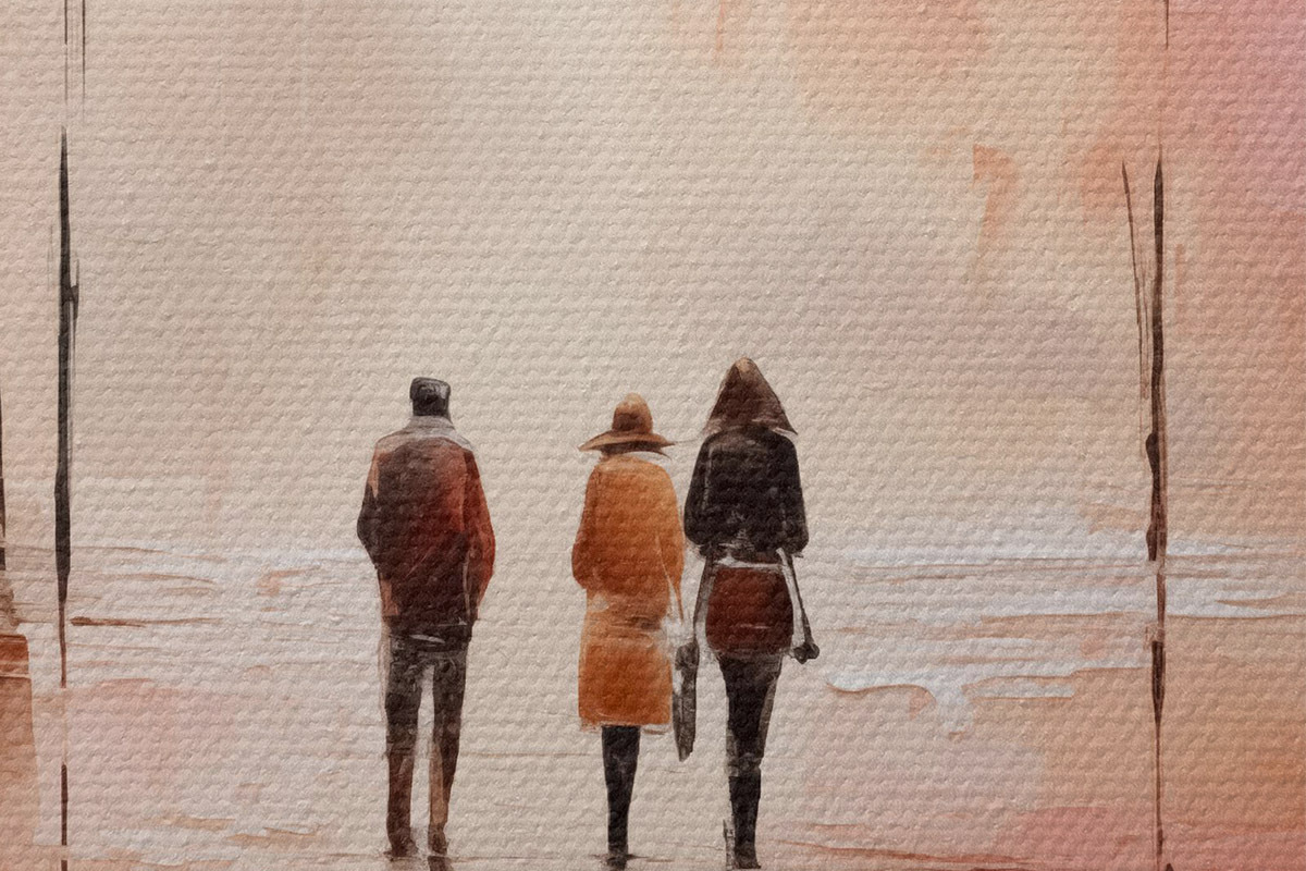 Pilt Inimesed kõndides pargis abstraktsioon, roosa punane värv Nr r40802