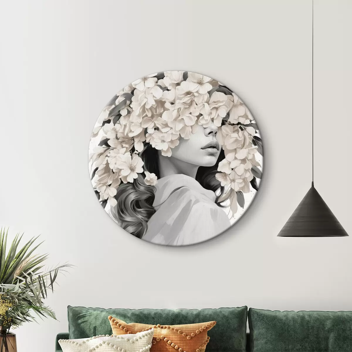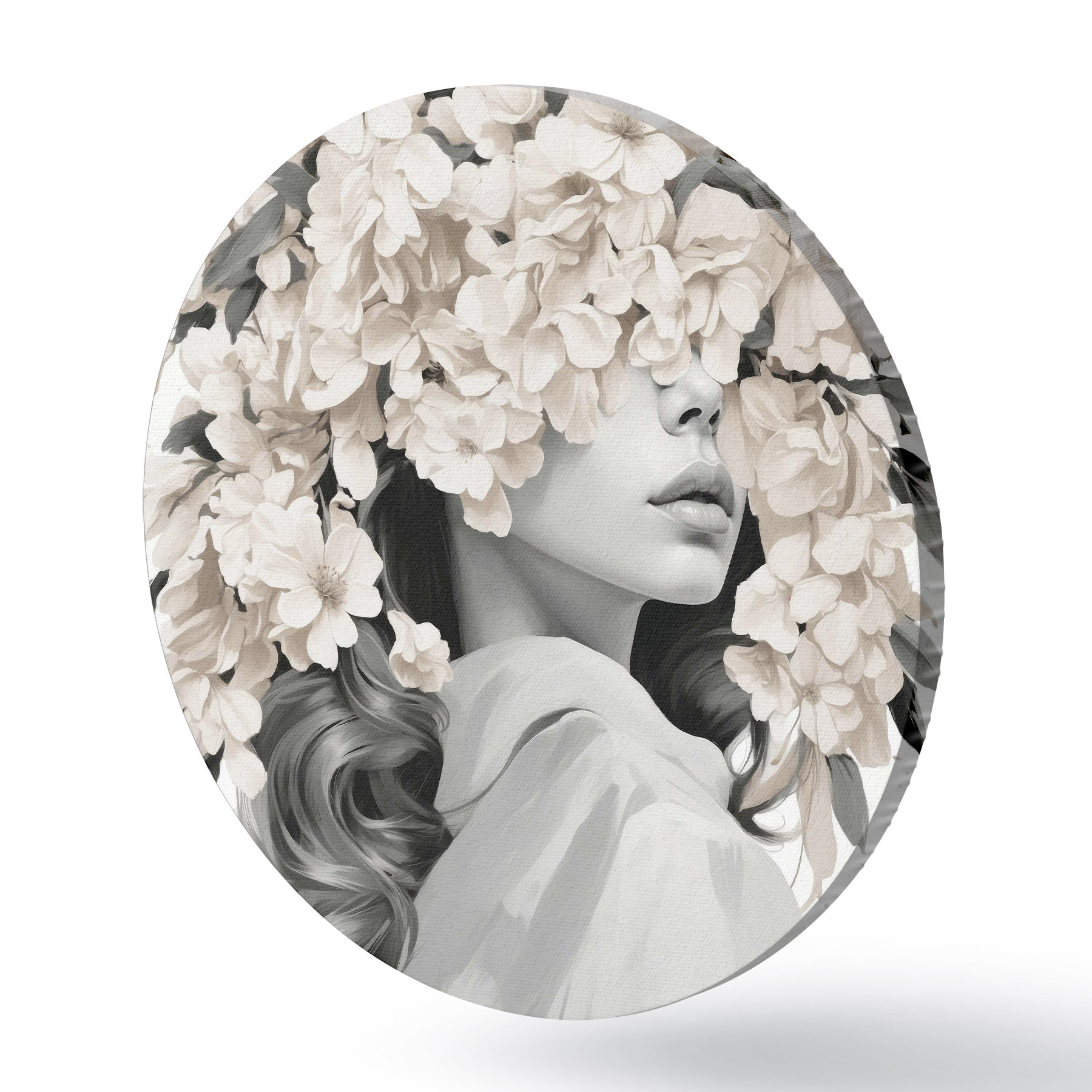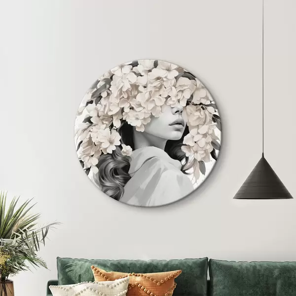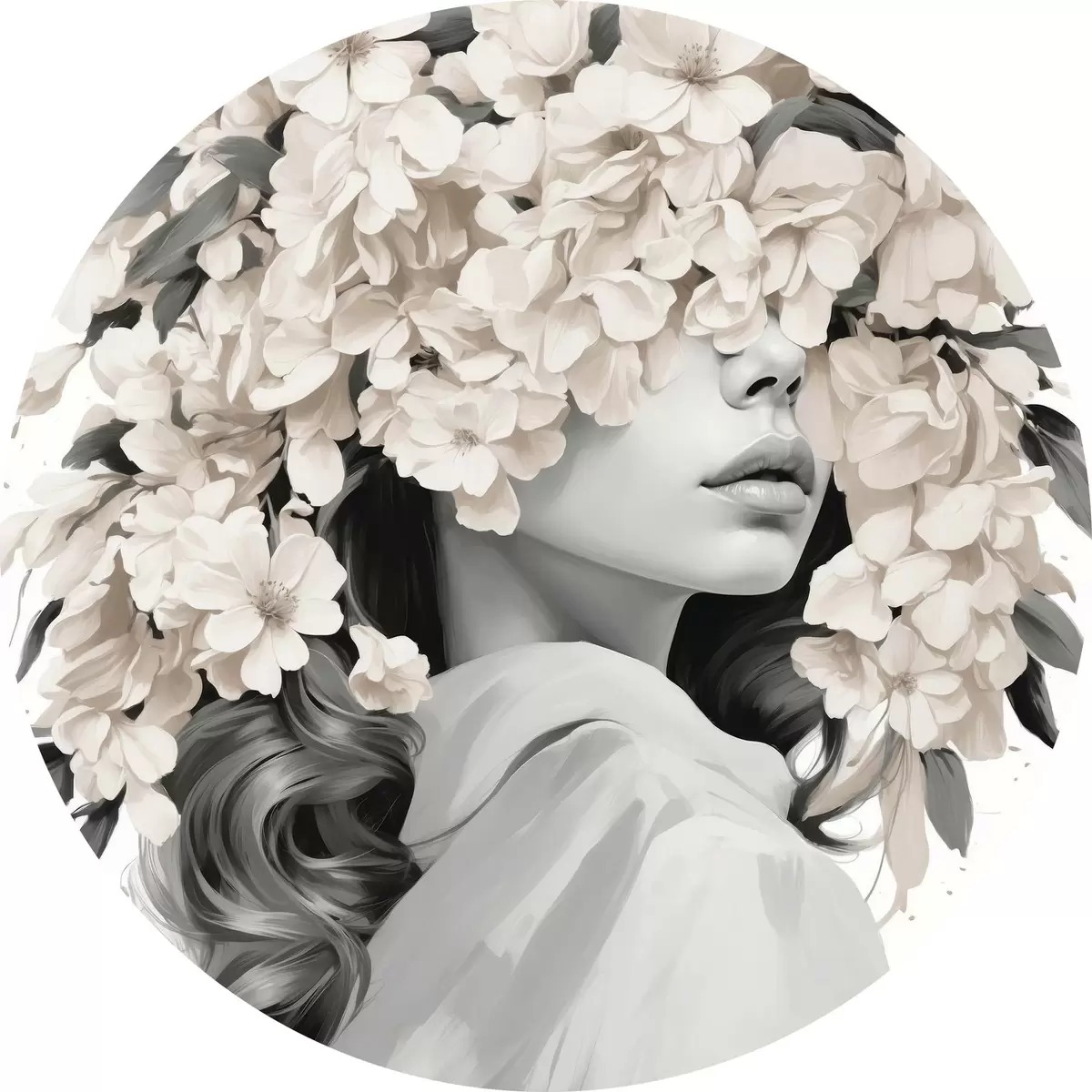 Ümmargused maalid Tüdruk lilledega tema nägu musta ja valge värvi r40849